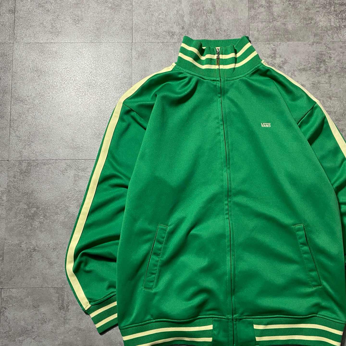 【XL】00s VANSバンズ 刺繍ワンポイント ラインリブ グリーン ジャージ トラックジャケット