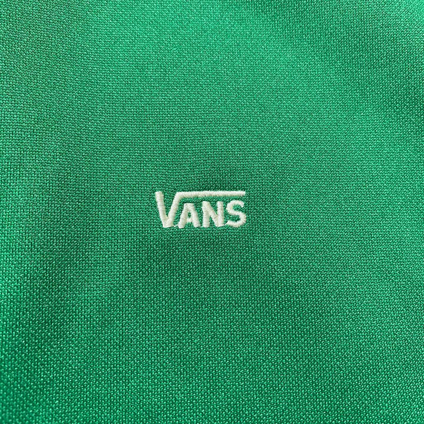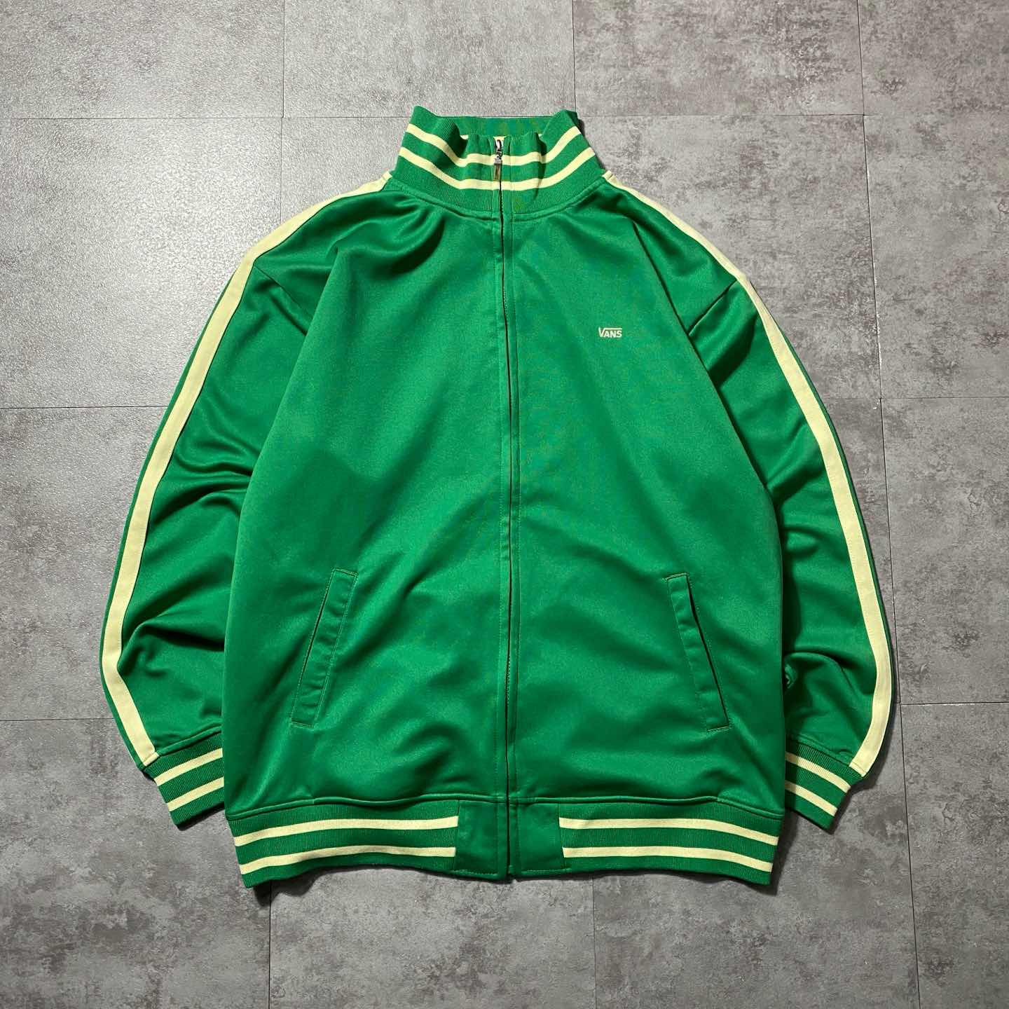 【XL】00s VANSバンズ 刺繍ワンポイント ラインリブ グリーン ジャージ トラックジャケット
