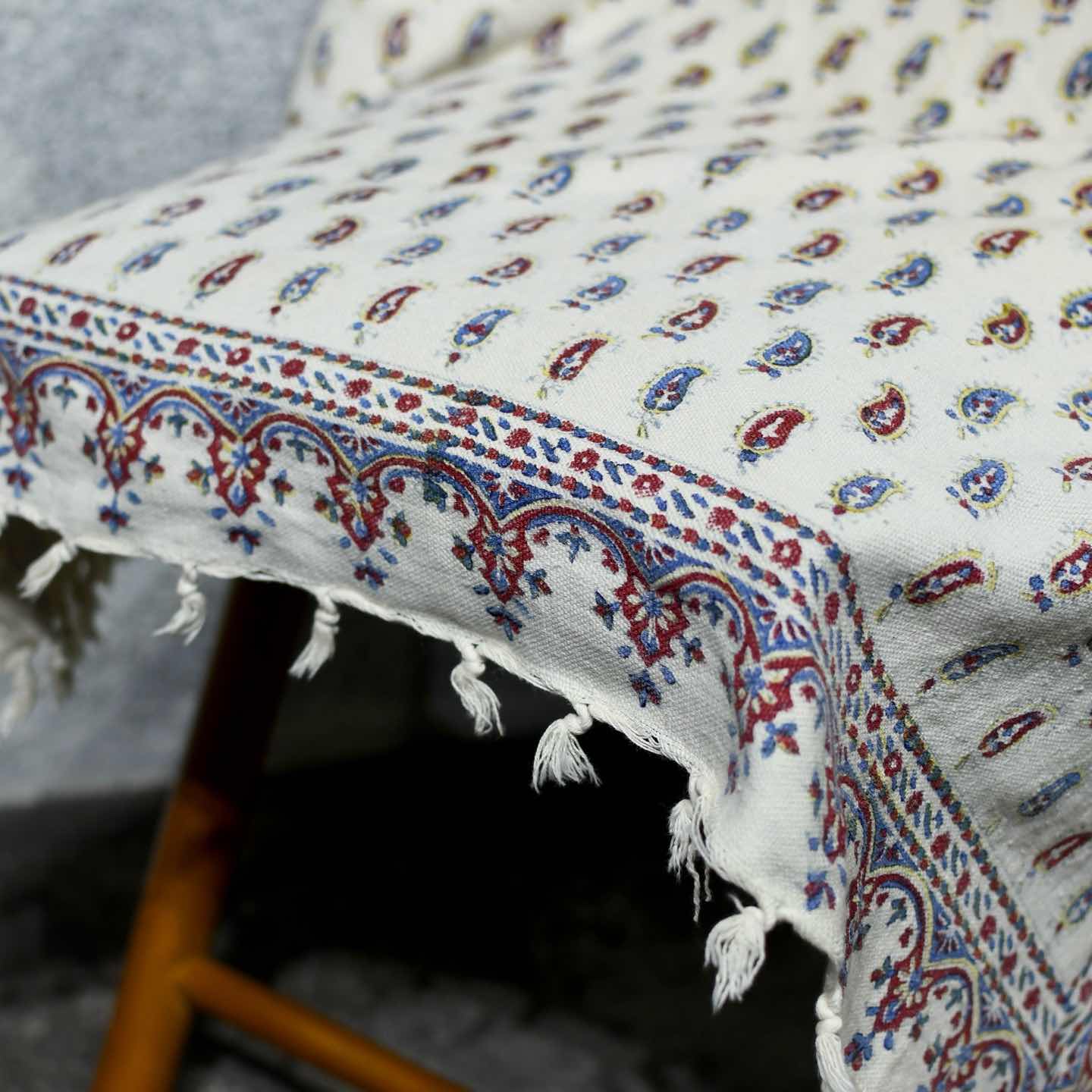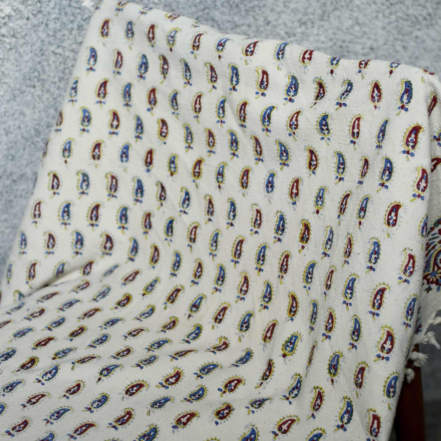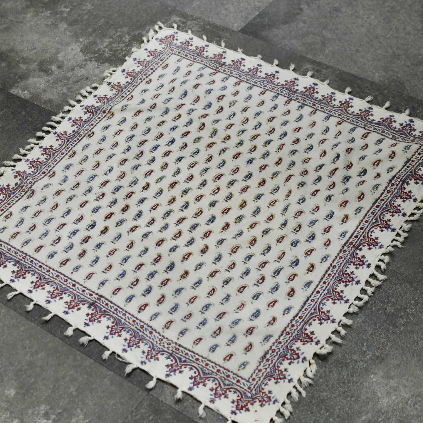 古着 ペイズリー柄 インディアン ラグ 絨毯 フリンジ 生成り アイボリー