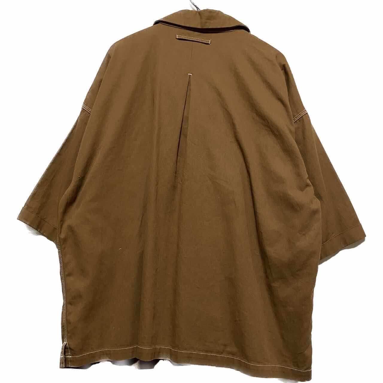 美品90-00s designers shirt リメイク prisoner shirt F 90年から2000年のデザイナーズファーストタイプ ワンサイズしか使えないこだわりが強いデザイナーズシャツを プリズナー シャツにリメイクしました レーザーで、 ロゴ、後は、手書きで アメカジテイストの ロゴいれました、 手加減なしのビックサイズなんで、下にパーカー スウェット 様々な重ね着もできますので、 通年活躍するのは間違いないですし。 プリズナーシャツ は、価格高騰しているのを見て、欲しいけど、買えないという人のためにリメイクしましたので、ぜひこの機会にどうぞ コーディネートは、完全に、ネオルードです!! 【カラー】 着画参照、ブラウン系 参考にして下さい ▷material◁ 上質なコットン 1.2mm 斜織 ▷condition◁ 美品です!! 【サイズ】フリーサイズに設定 モデル170センチ Mがジャストくらいの体型の私が、ビックサイズ!!インナーフリー参考に! 着丈74 身幅70 肩幅64DS 超DS 袖丈46 DSだから、ハンガーかけ採寸