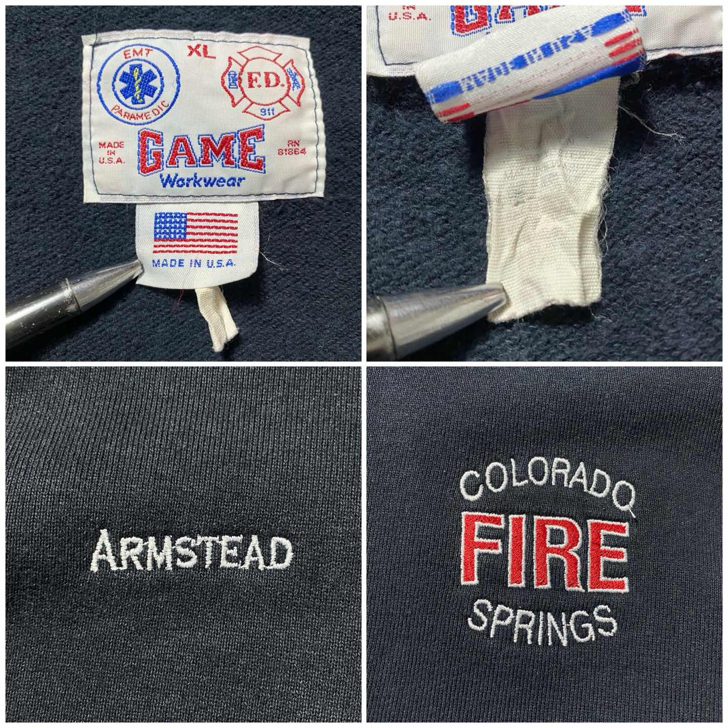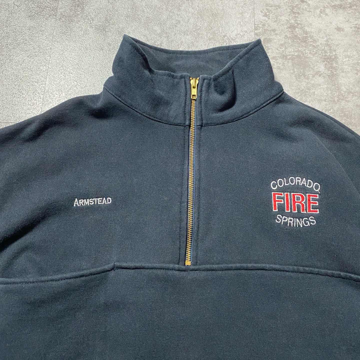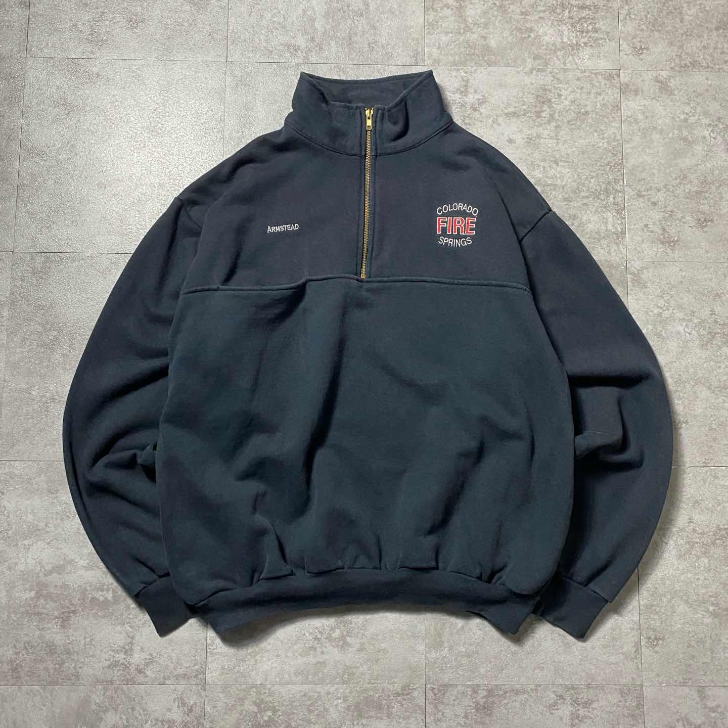 【USA製】90s GAME 刺繍企業ロゴ ヘビーオンス ハーフジップ スウェット トレーナー