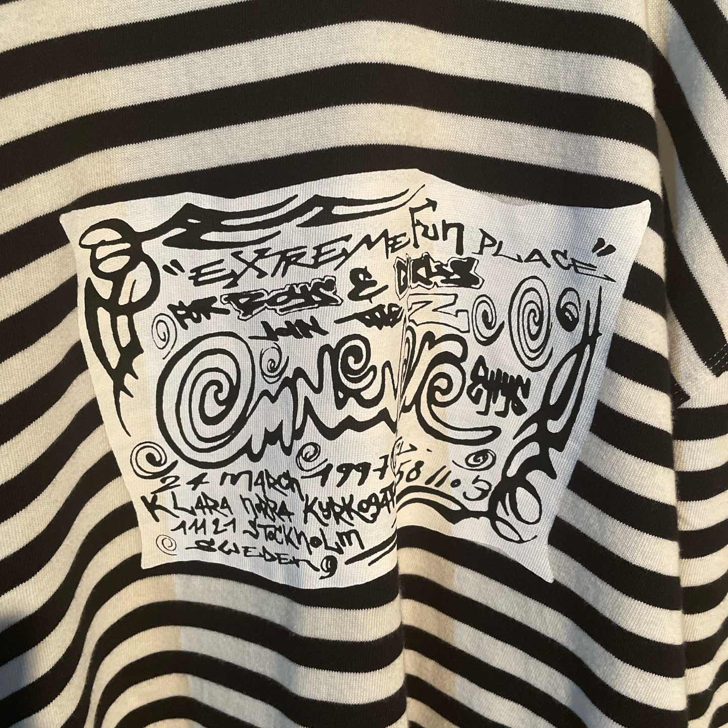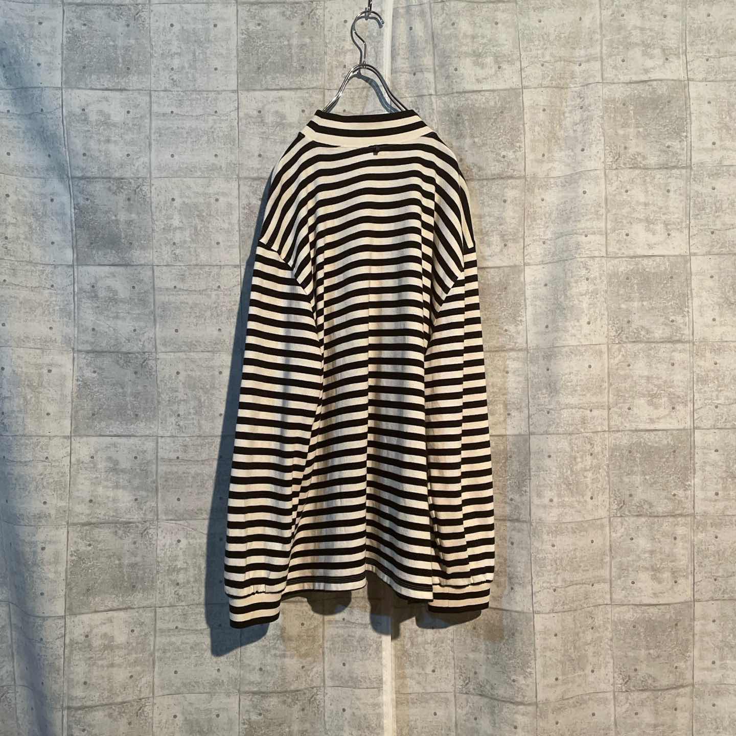 eyeysらしい遊び心と抜け感が詰まったボーダーカットソー。 バックにはハンドライクなグラフィックパッチが施され、 シンプルながらも存在感のある一枚です。 ゆったりとしたオーバーシルエットで、メンズ・レディース問わず着用可能。 ボーダーのピッチも程よく、モノトーン配色で合わせやすいのも魅力です。 デニムやスラックスはもちろん、カーゴパンツと合わせても◎ 古着スタイルやストリート、韓国系コーデにもマッチする万能アイテム。 一枚で雰囲気の出るおすすめのトップスです。