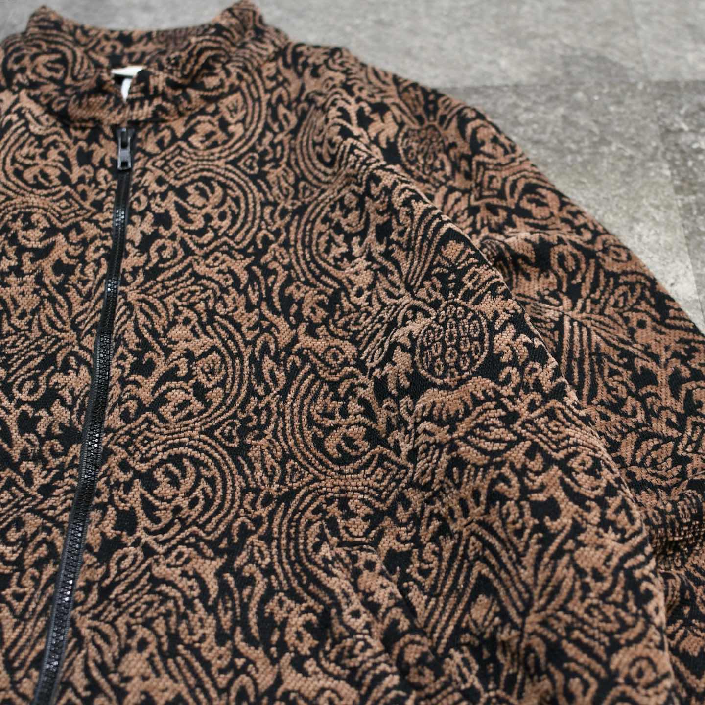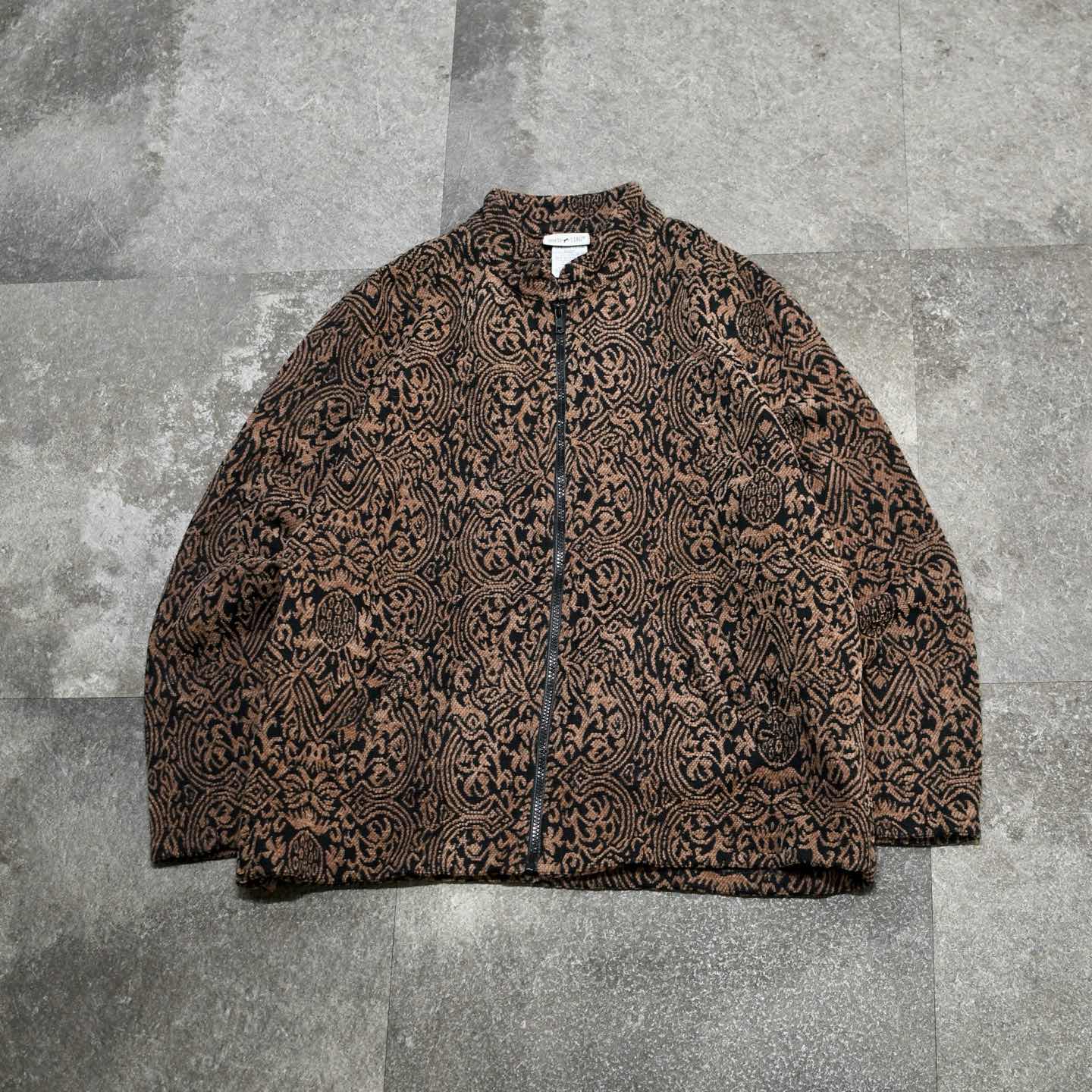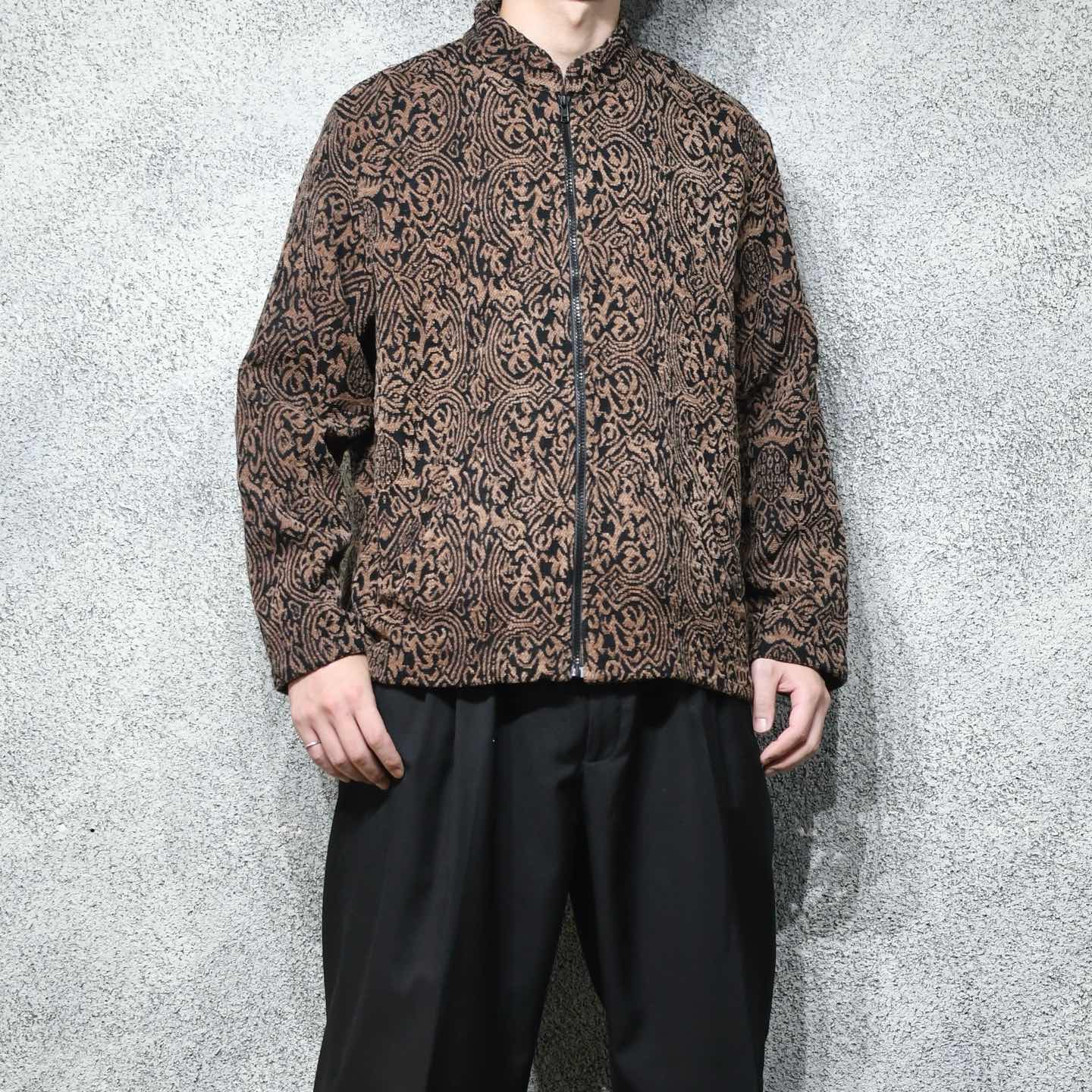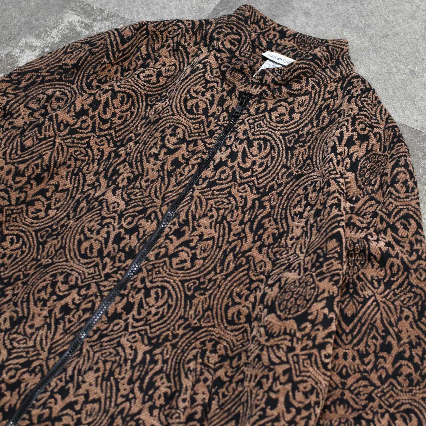 古着 アクリル 総柄 スタンドカラー ジャケット ジップアップ 柄 ブラウン