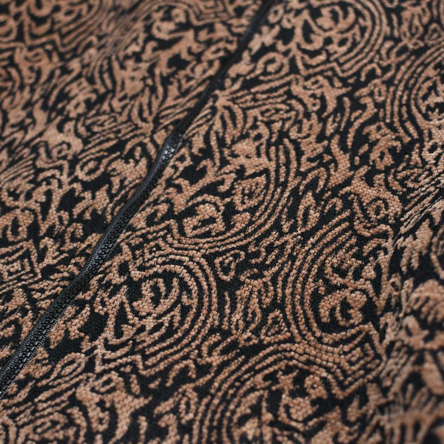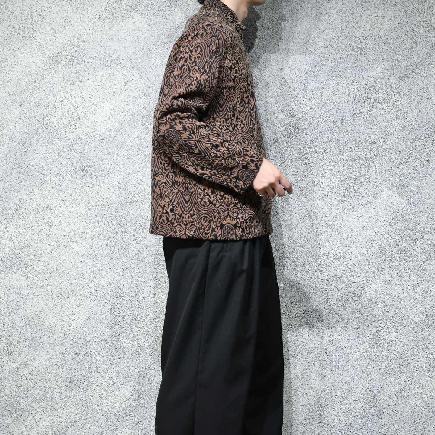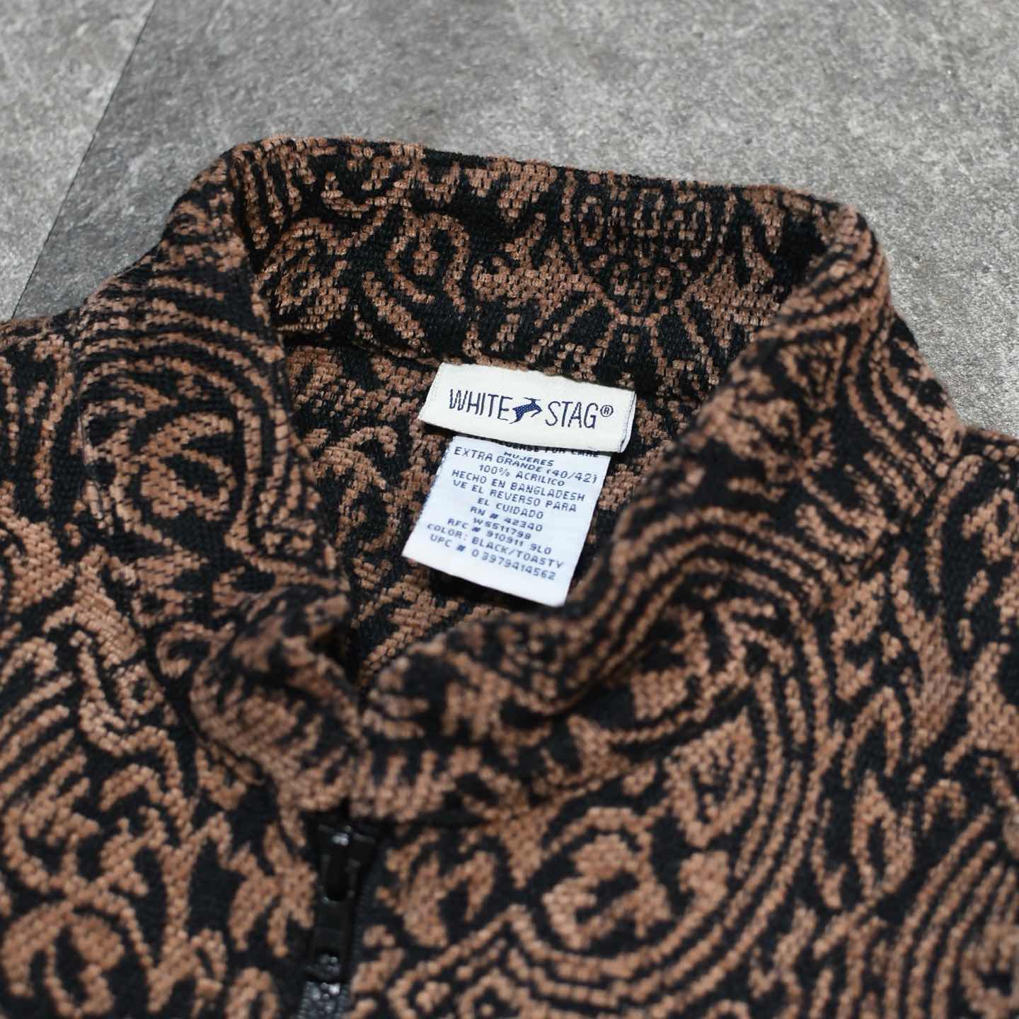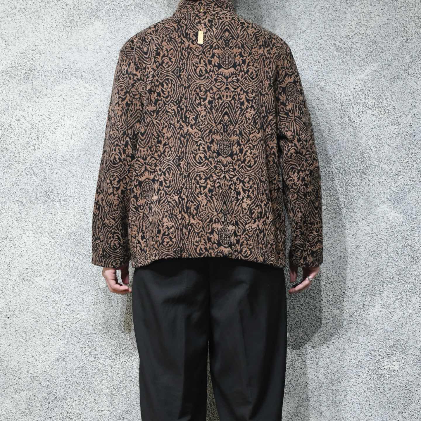 古着 アクリル 総柄 スタンドカラー ジャケット ジップアップ 柄 ブラウン