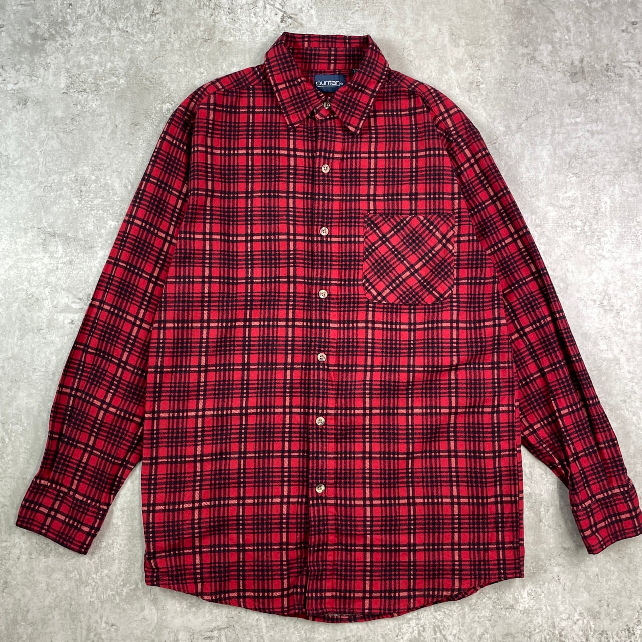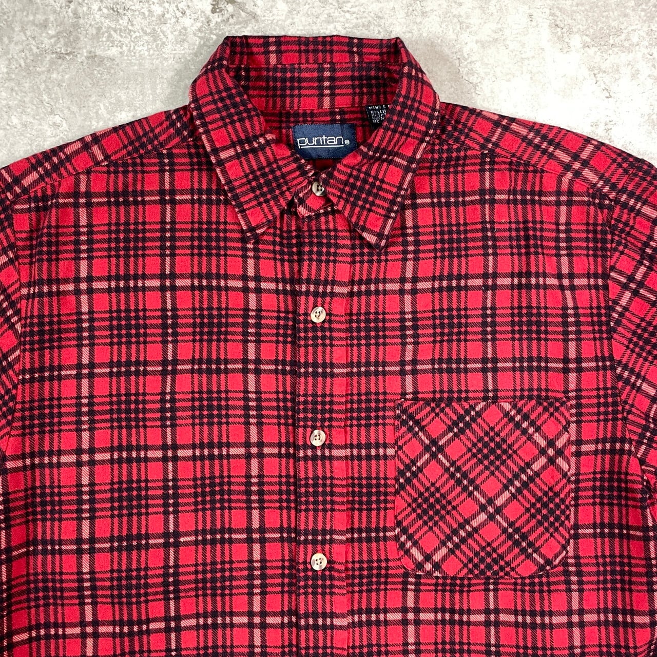 ■90年代 PURITAN ピューリタン チェック 長袖 プリントネルシャツ メンズM相当 古着 90s VINTAGE ヴィンテージ アメカジ ブラック 赤 黒【長袖シャツ】/レッド 【ブランド】PURITAN ピューリタン 【サイズ】表記 SMALL(実寸メンズM相当) ※計測値をご確認ください。 着丈…78 身幅…53 肩幅…46 袖丈…59 【生産国】バングラデッシュ製 【素材】コットン100% 【状態】多少の使用感は御座いますが、目立ったダメージや汚れは御座いません。 画像にてご確認ください。 【c251012009】 ※古着は洗濯、検品などのケアを行っております。(新品・デッドストックは洗濯していません。) ※モニターの発色により実物と異なる場合がございます。予めご了承ください。 ※ 海外直輸入USED品になります。