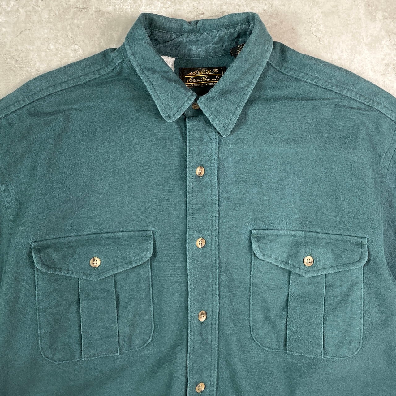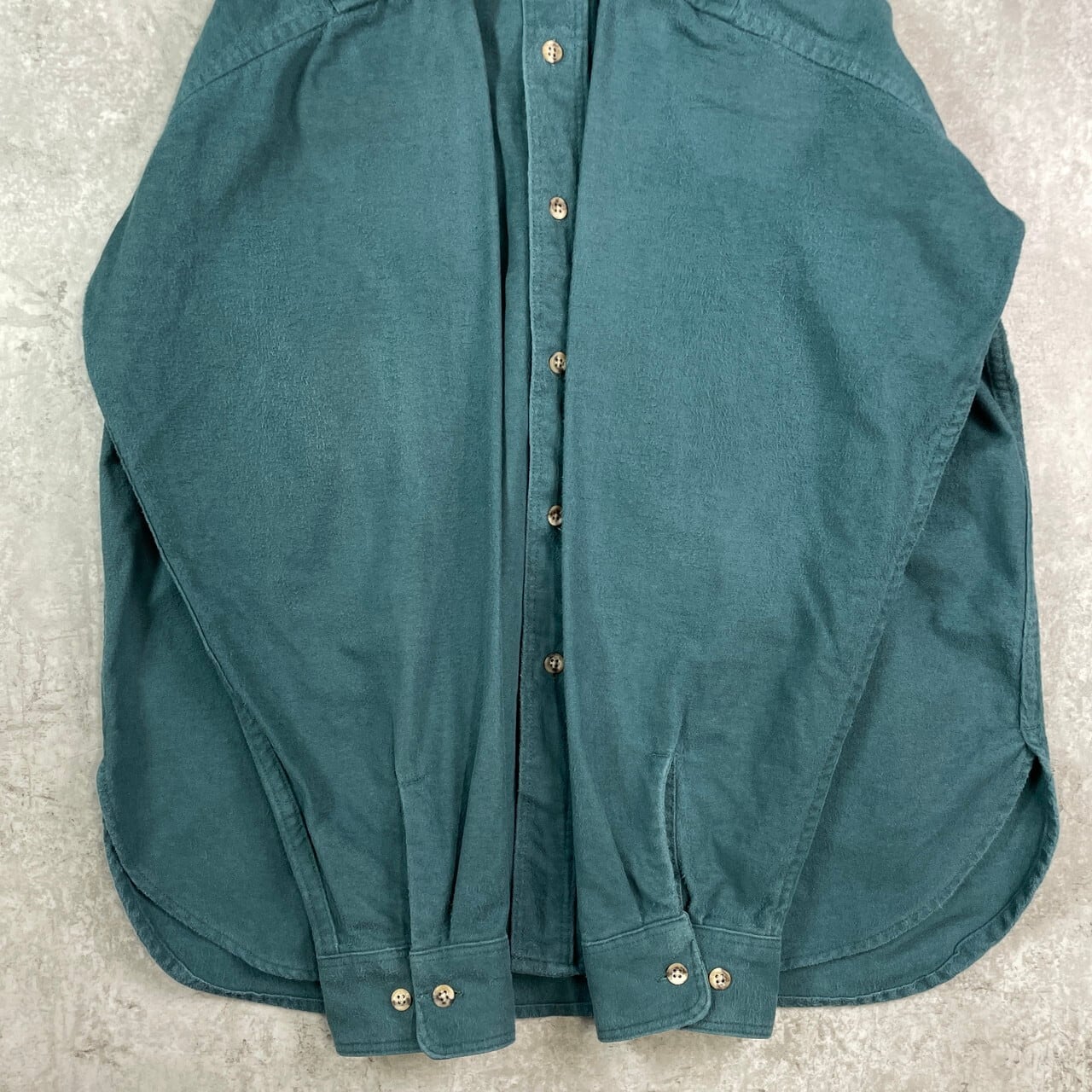 ■80〜90年代 USA製 Eddie Bauer エディーバウアー シャモアクロス 長袖シャツ メンズXL相当 古着 90s VINTAGE ヴィンテージ 緑【長袖シャツ】/グリーン 【ブランド】Eddie Bauer エディーバウアー 【サイズ】表記 LARGE(着用感メンズXL相当) ※計測値をご確認ください。 着丈…82 身幅…63 肩幅…55 袖丈…63 【生産国】USA製 【素材】コットン100% 【状態】多少の使用感は御座いますが、目立ったダメージや汚れは御座いません。 画像にてご確認ください。 【c251011005】 ※古着は洗濯、検品などのケアを行っております。(新品・デッドストックは洗濯していません。) ※モニターの発色により実物と異なる場合がございます。予めご了承ください。 ※ 海外直輸入USED品になります。
