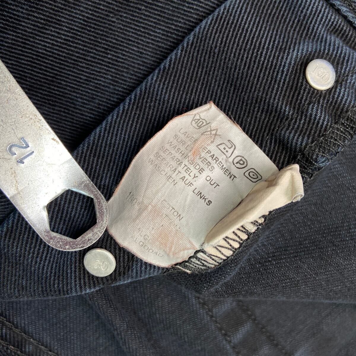 ■TiSSAiA ブラックデニムパンツ テーパード 後染め メンズW36 古着 アメカジ ボタンフライ ジーンズ 黒【デニムパンツ】/ブラック 【ブランド】Wrangler ラングラー 【サイズ】表記 36×36 ※計測値をご確認ください。 ウエスト(平置き×2)…92 ワタリ幅…33.5 股上...29 股下…73 裾幅…20.5 【生産国】表記不明 【素材】コットン100% 【状態】全体的に色あせや擦れがございます。 画像にてご確認ください。 【c251008110】 ※古着は洗濯、検品などのケアを行っております。(新品・デッドストックは洗濯していません。) ※モニターの発色により実物と異なる場合がございます。予めご了承ください。 ※ 海外直輸入USED品になります。