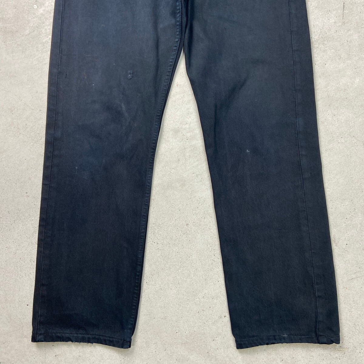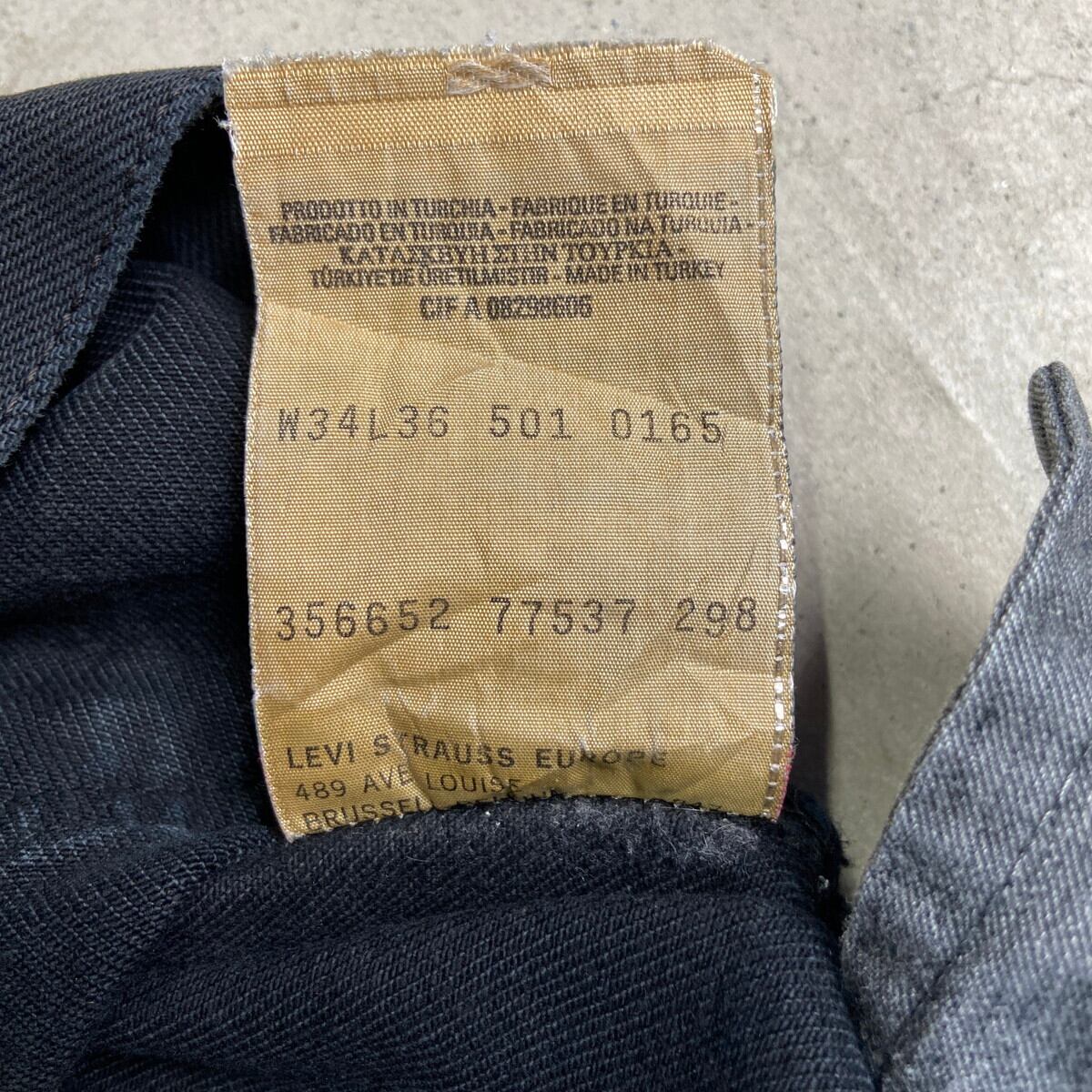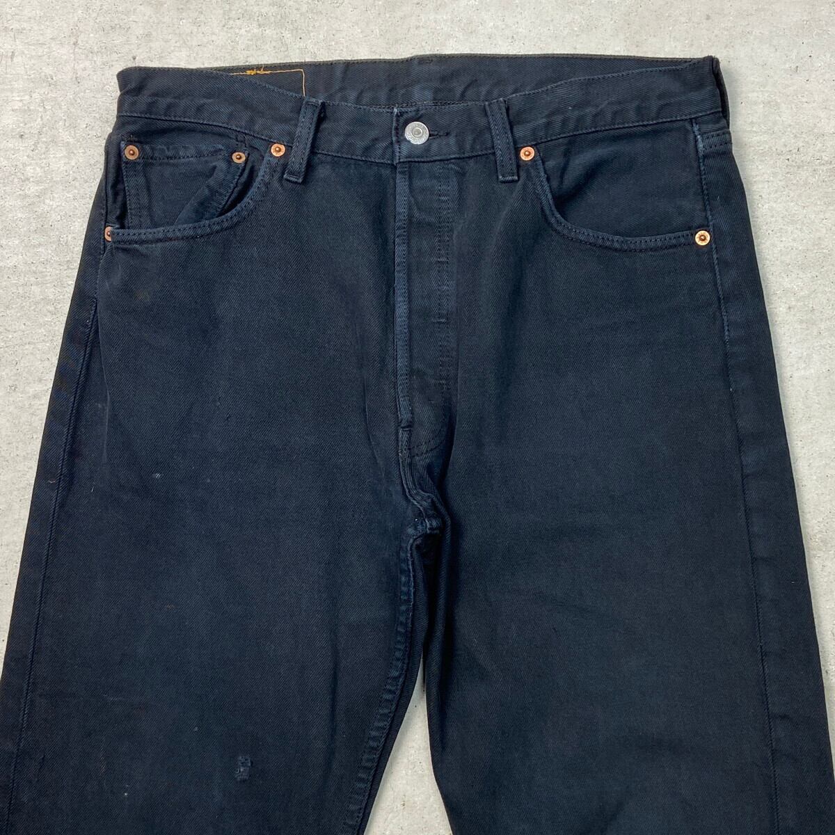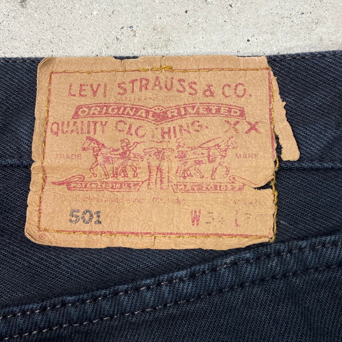 ■90年代 チュニジア製 Levi's ユーロリーバイス 501 ブラックデニムパンツ ストレート メンズW32相当 古着 90s アメカジ VINTAGE ジーンズ 後染め 黒色 【デニムパンツ】/ブラック 【ブランド】Levi's リーバイス ボタン裏刻印:247 【サイズ】表記 W34 L30(実寸W32 L30相当) ※裾上げされております。 ※計測値をご確認ください。 ウエスト(平置き×2)…82 ワタリ幅…31.5 股上…30 股下…76.5 裾幅…21 【生産国】チュニジア製 【素材】コットン100% 【状態】フロントに小さな汚れやダメージがございます。 画像にてご確認ください。 【c251008102】 ※古着は洗濯、検品などのケアを行っております。(新品・デッドストックは洗濯していません。) ※モニターの発色により実物と異なる場合がございます。予めご了承ください。 ※ 海外直輸入USED品になります。