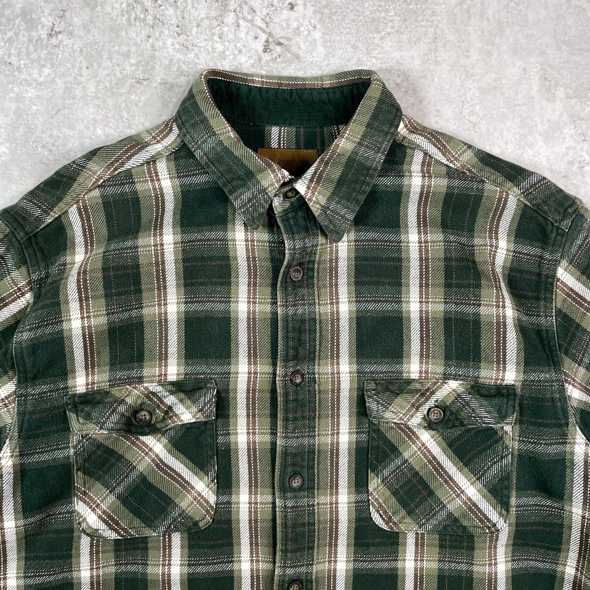 ■90年代 ST. JOHN'S BAY セントジョンズベイ チェックシャツ ヘビーフランネルシャツ メンズL 古着 90s VINTAGE ヴィンテージ アメカジ ダブルポケット ブラウン グリーン ホワイト【長袖シャツ】/マルチカラー 【ブランド】ST. JOHN'S BAY 【サイズ】表記 L ※計測値をご確認ください。 着丈…73.5 身幅…60.5 肩幅…52 袖丈…57.5 【生産国】バングラデシュ製 【素材】コットン100% 【状態】使用感はありますが、目立った汚れやダメージはございません。 画像にてご確認ください。 【c251007114】 ※古着は洗濯、検品などのケアを行っております。(新品・デッドストックは洗濯していません。) ※モニターの発色により実物と異なる場合がございます。予めご了承ください。 ※ 海外直輸入USED品になります。