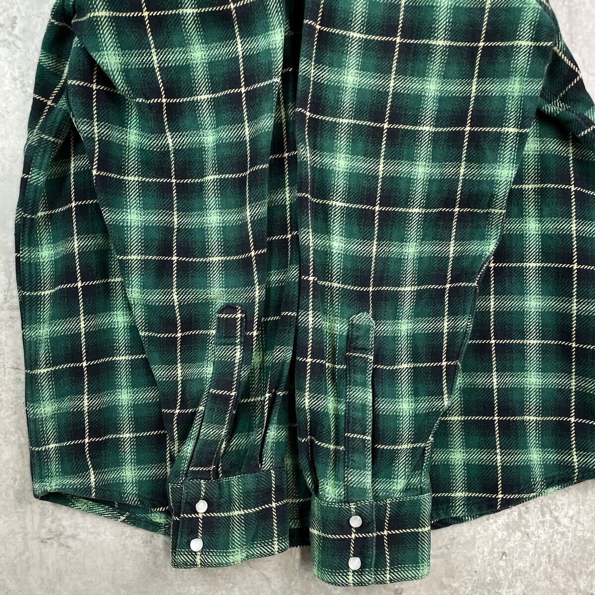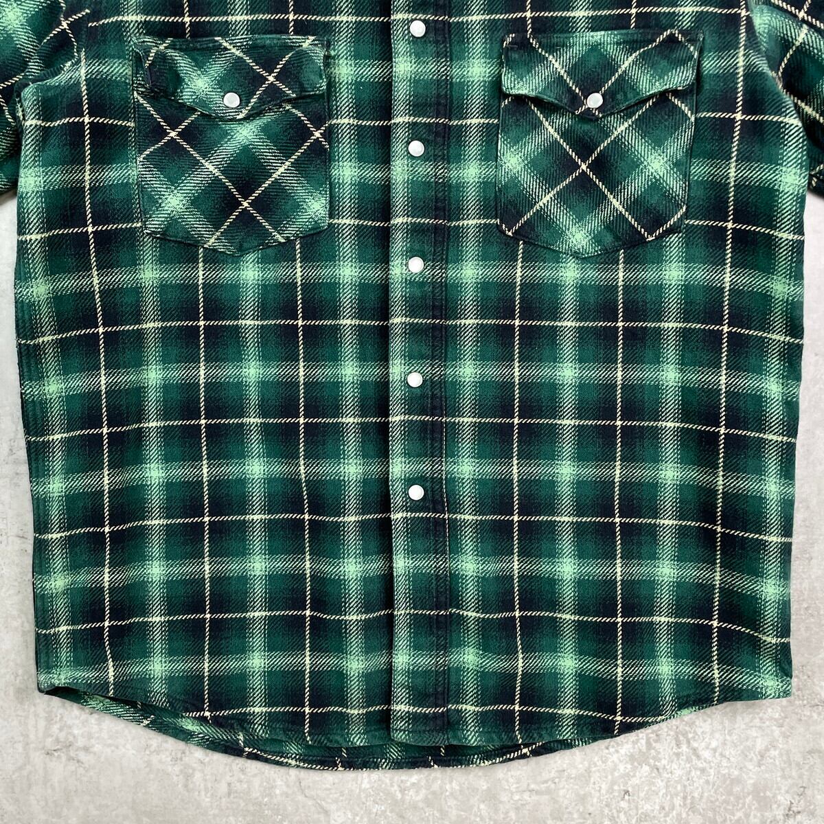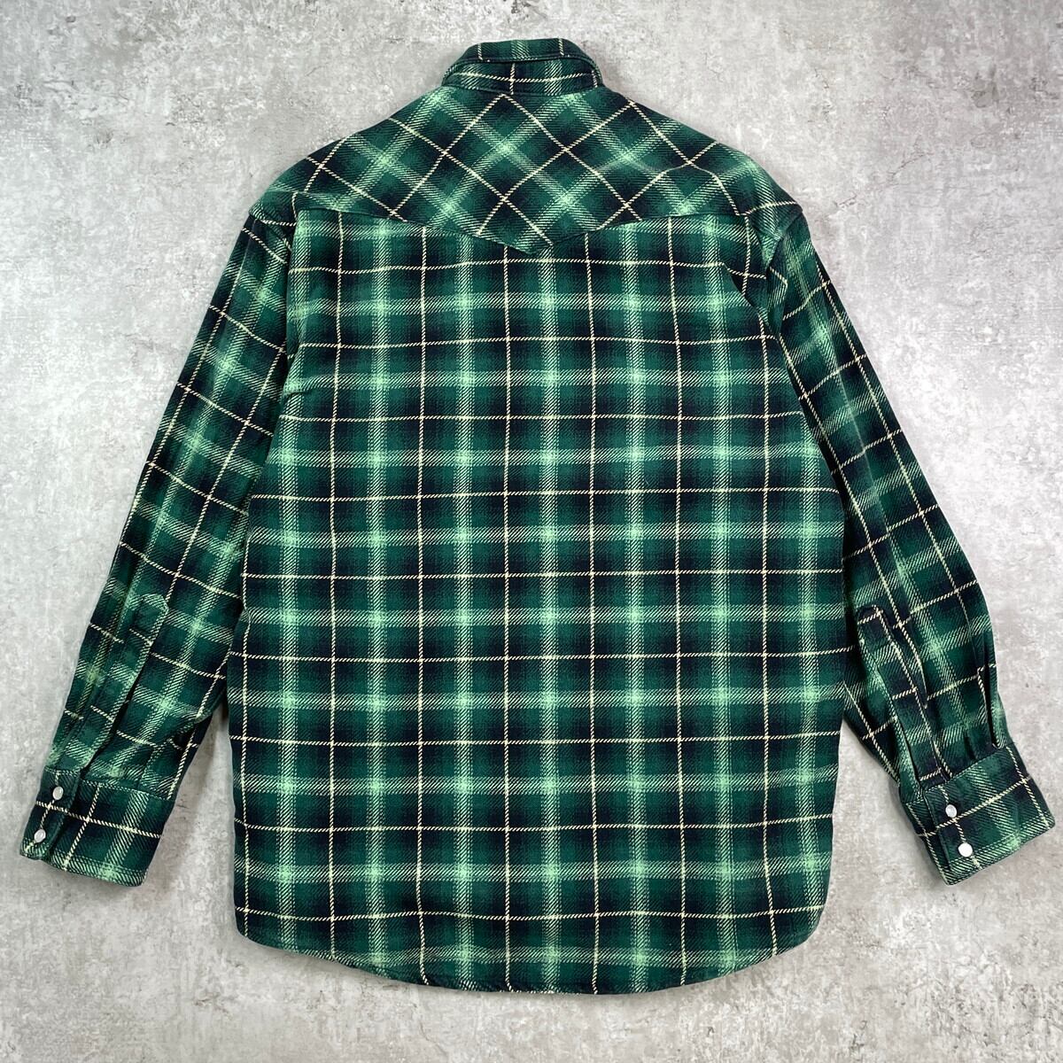 ■90年代 FIELD N' FOREST チェック ウエスタン ヘビーフランネルシャツ メンズM 古着 90s VINTAGE ヴィンテージ アメカジ ダブルポケット スナップボタン ブラック ライムグリーン ベージュ【長袖シャツ】/グリーン 【ブランド】 FIELD N' FOREST 【サイズ】表記 M ※計測値をご確認ください。 着丈…78 身幅…56.5 肩幅…50 袖丈…56 【生産国】中国製 【素材】コットン100% 【状態】使用感はありますが、目立った汚れやダメージはございません。。 画像にてご確認ください。 【c251007110】 ※古着は洗濯、検品などのケアを行っております。(新品・デッドストックは洗濯していません。) ※モニターの発色により実物と異なる場合がございます。予めご了承ください。 ※ 海外直輸入USED品になります。