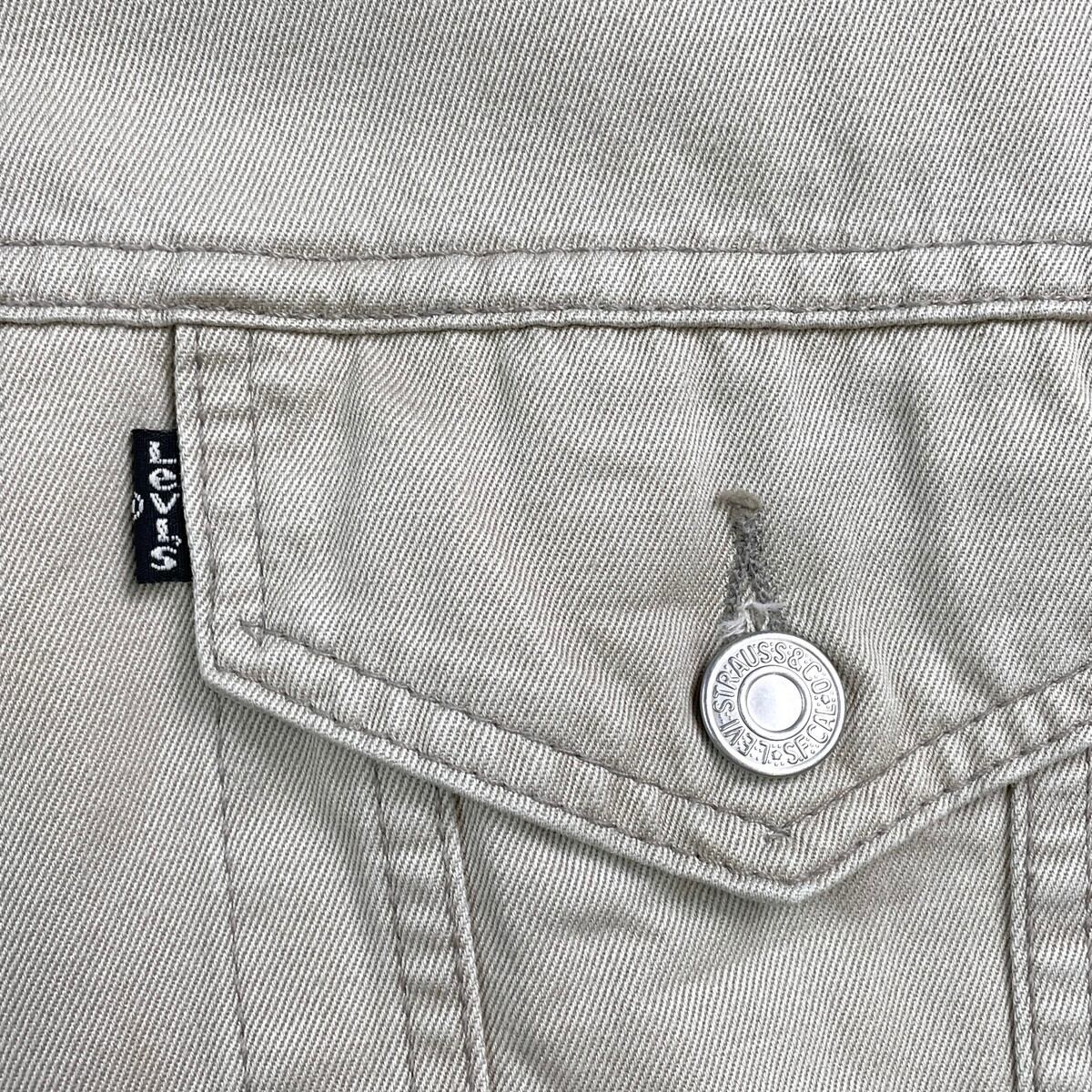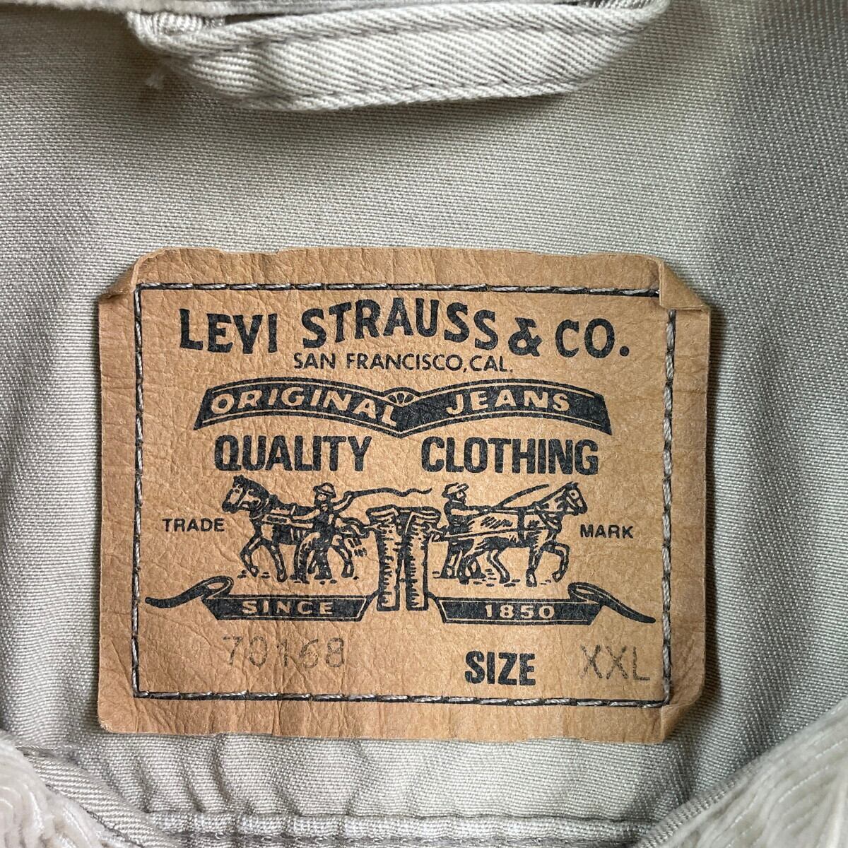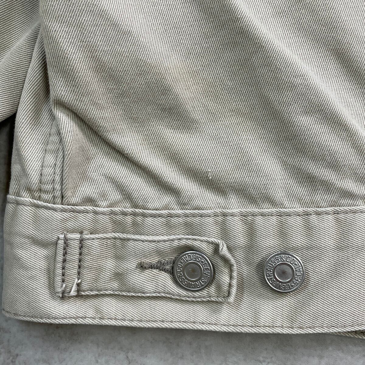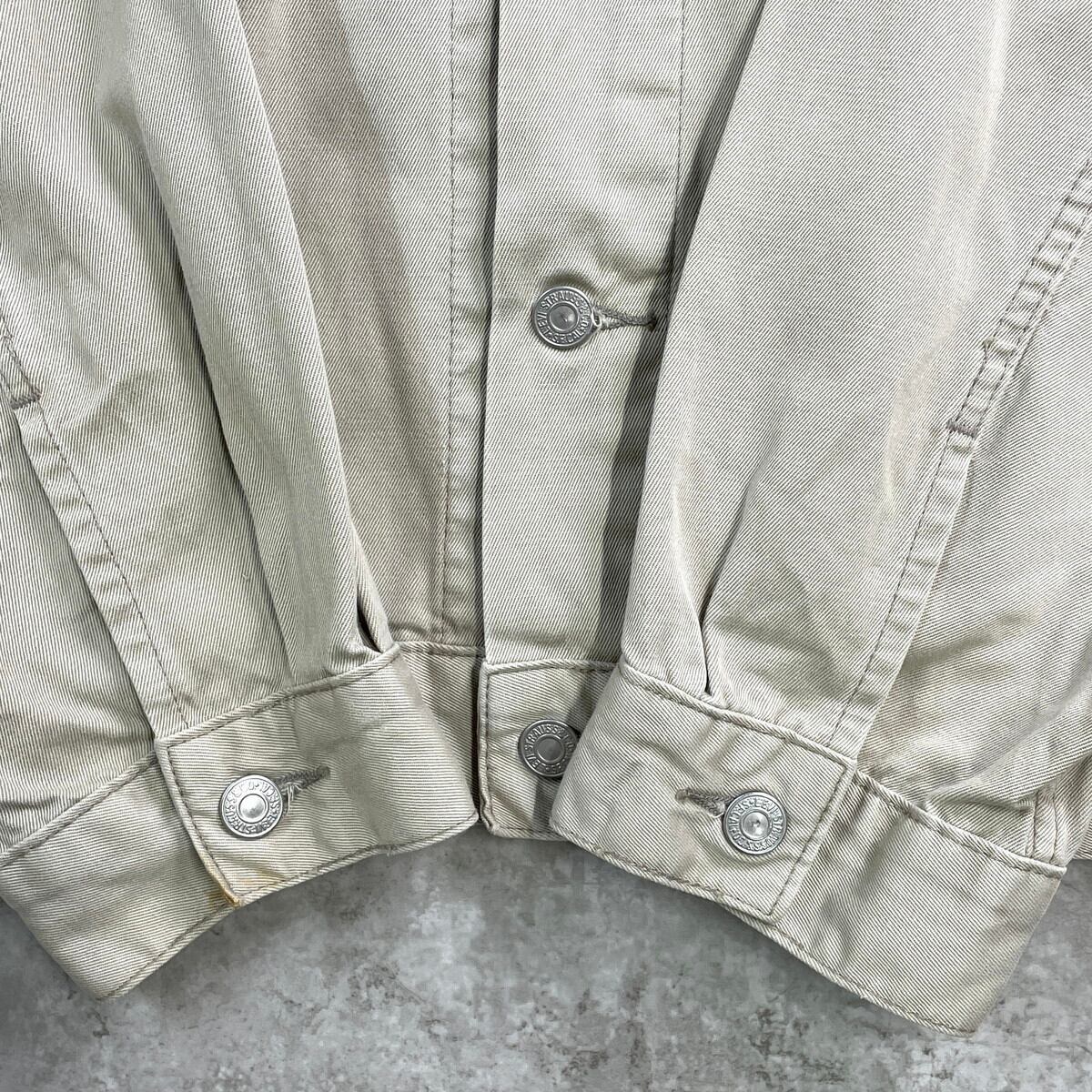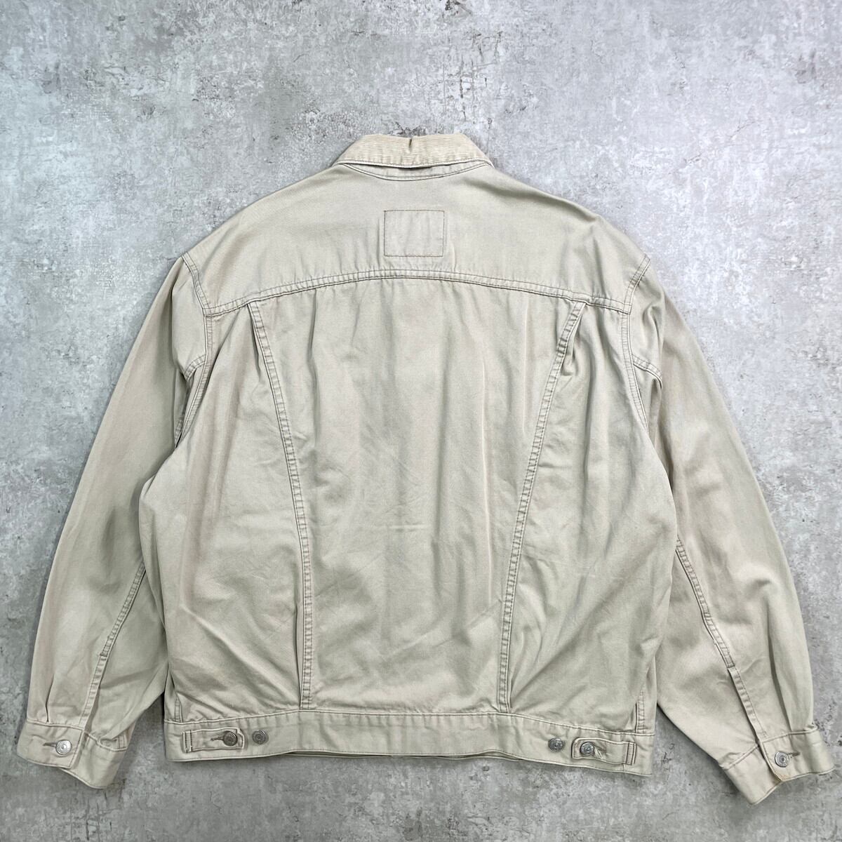 ■90年代 チュニジア製 Levi's ユーロリーバイス 70168 コットンツイル トラッカージャケット メンズ2XL 古着 90s VINTAGE ヴィンテージ コーデュロイ襟【コットンジャケット】/ベージュ 【ブランド】Levi's リーバイス 【サイズ】表記 XXL ※計測値をご確認ください。 着丈…70.5 身幅…75.5 肩幅…57.5 袖丈…63.5 【生産国】チュニジア製 【素材】コットン100% 【状態】袖口や裾付近に小さなシミ汚れがございます。 その他ダメージはありません。 画像にてご確認ください。 【c251007101】 ※古着は洗濯、検品などのケアを行っております。(新品・デッドストックは洗濯していません。) ※モニターの発色により実物と異なる場合がございます。予めご了承ください。 ※ 海外直輸入USED品になります。