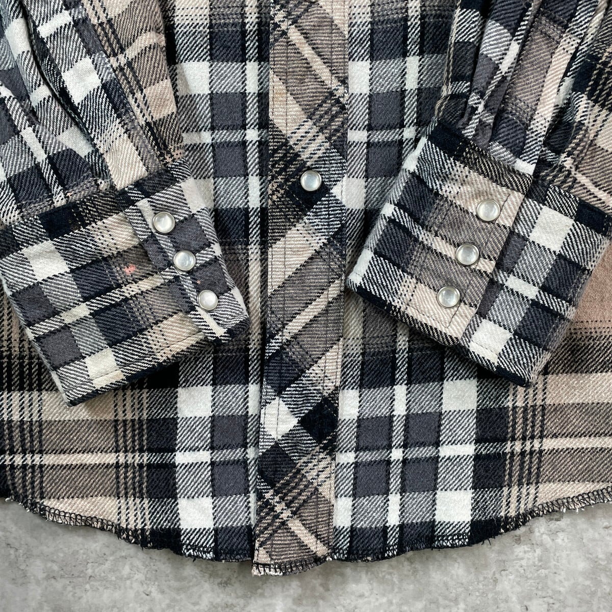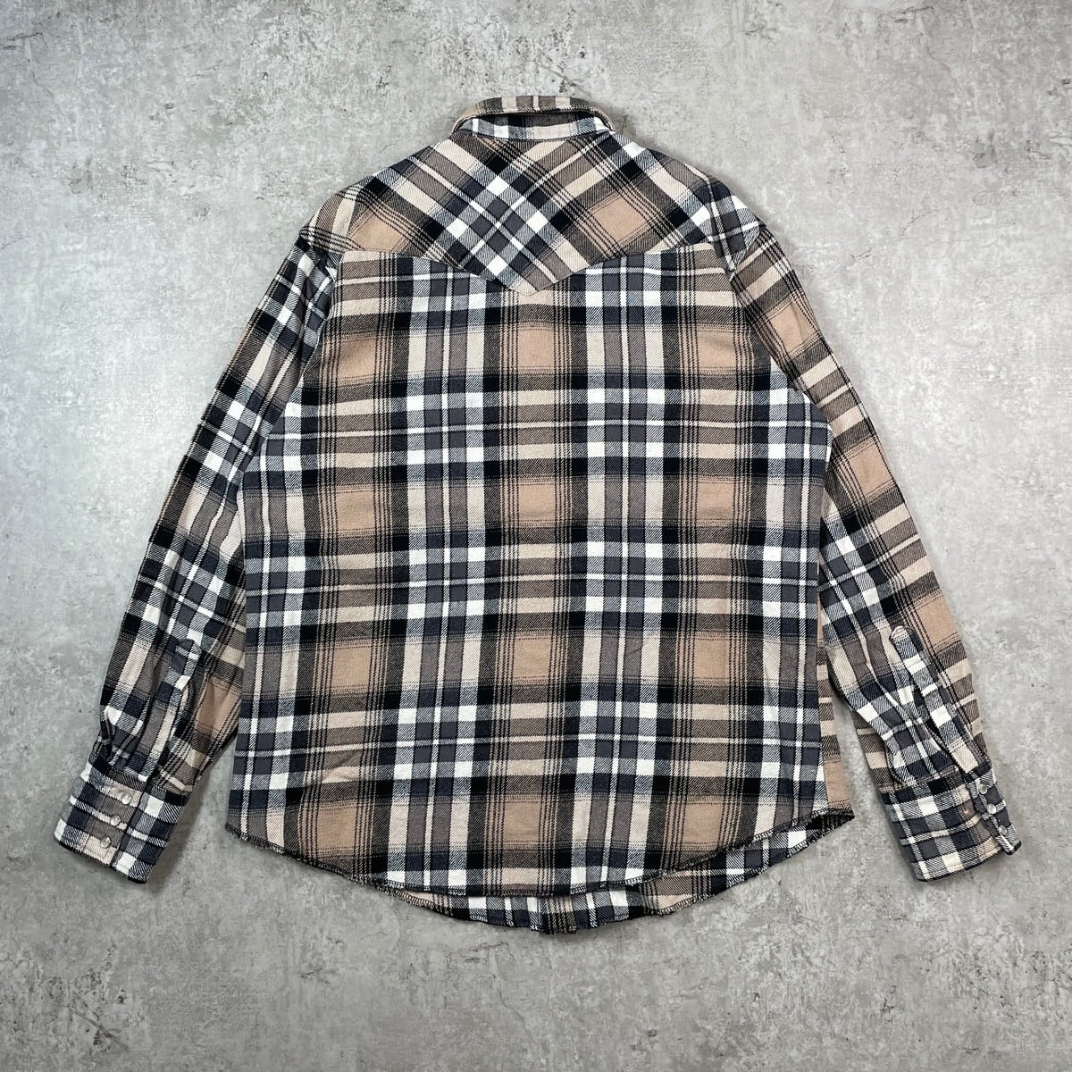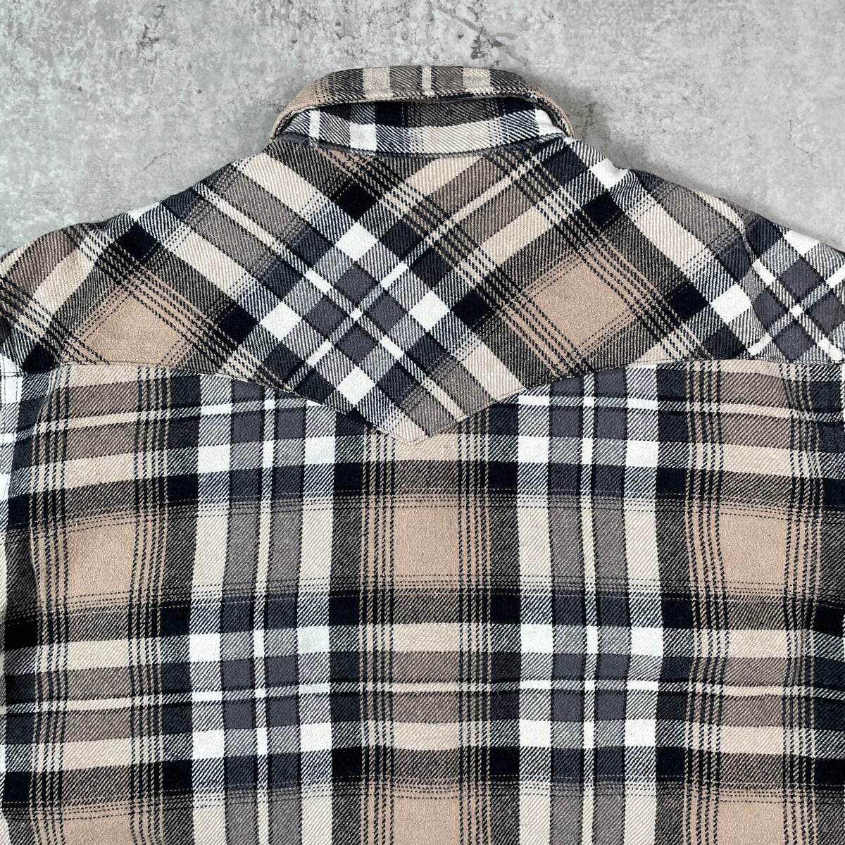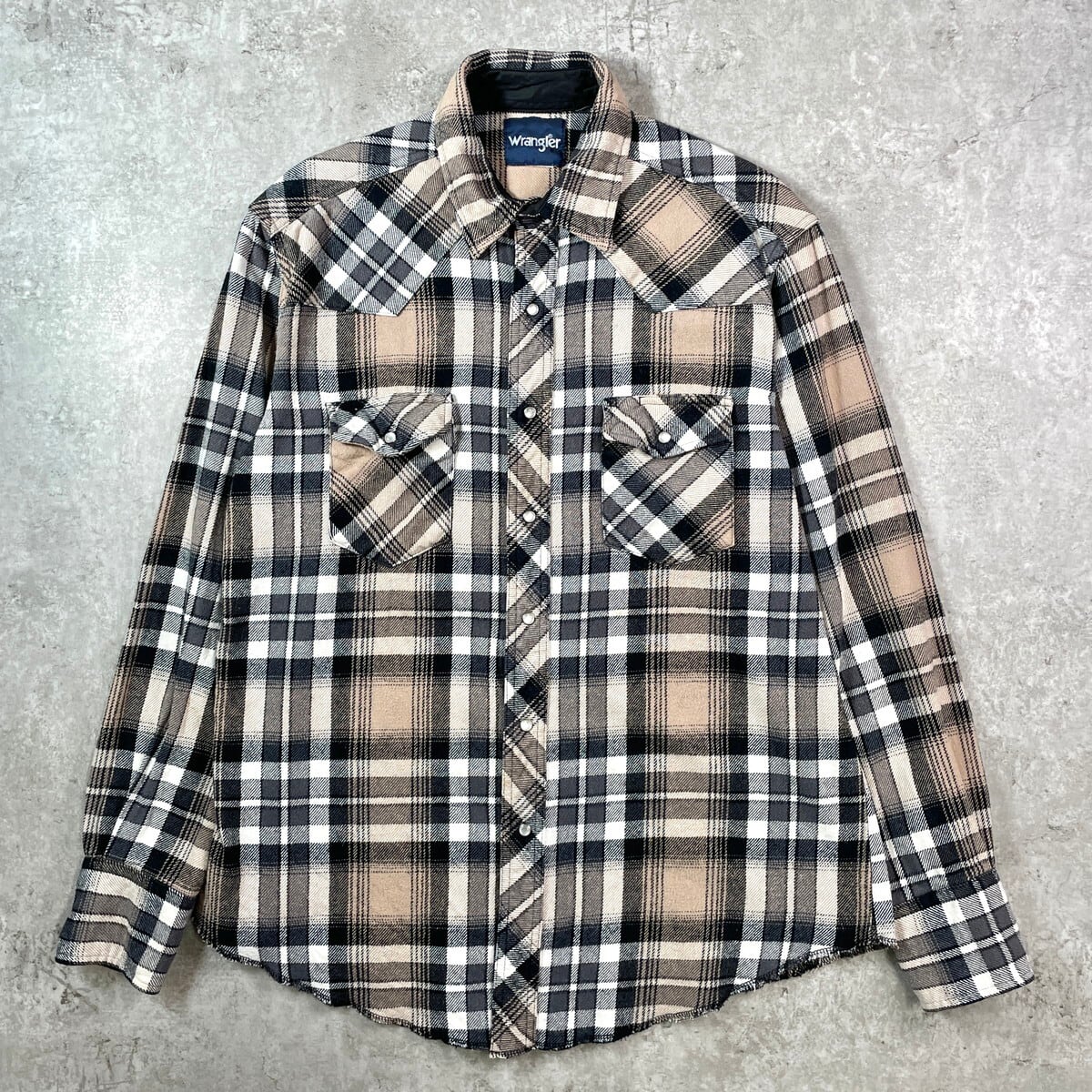 ■Wrangler ラングラー チェック ウエスタン ヘビーネルシャツ メンズL 古着 アメカジ ダブルポケット ベージュ ホワイト ブラック グレー【長袖シャツ】/マルチカラー 【ブランド】Wrangler ラングラー 【サイズ】表記 L ※計測値をご確認ください。 着丈…74 身幅…61 肩幅…47.5 袖丈…63 【生産国】バングラデッシュ製 【素材】コットン100% 【状態】全体的に若干の色褪せや毛羽立ちがございます。 右袖口に変色した箇所があります。 画像にてご確認ください。 【c251001110】 ※古着は洗濯、検品などのケアを行っております。(新品・デッドストックは洗濯していません。) ※モニターの発色により実物と異なる場合がございます。予めご了承ください。 ※ 海外直輸入USED品になります。