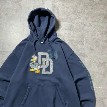 00s ディズニー ドナルドダック ワッペンロゴ アームプリント パーカー