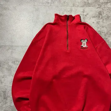 【USA製】90s Old Disney ミニー刺繍ロゴ ハーフジップスウェット