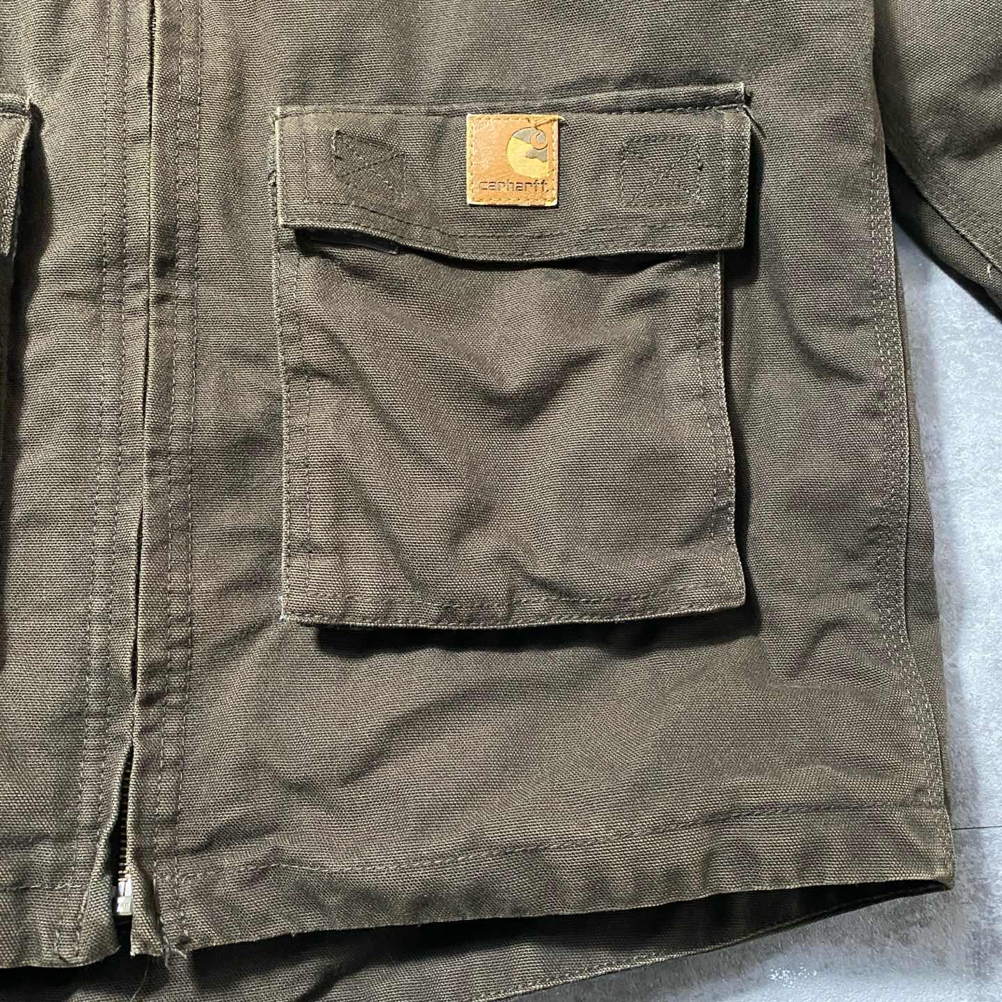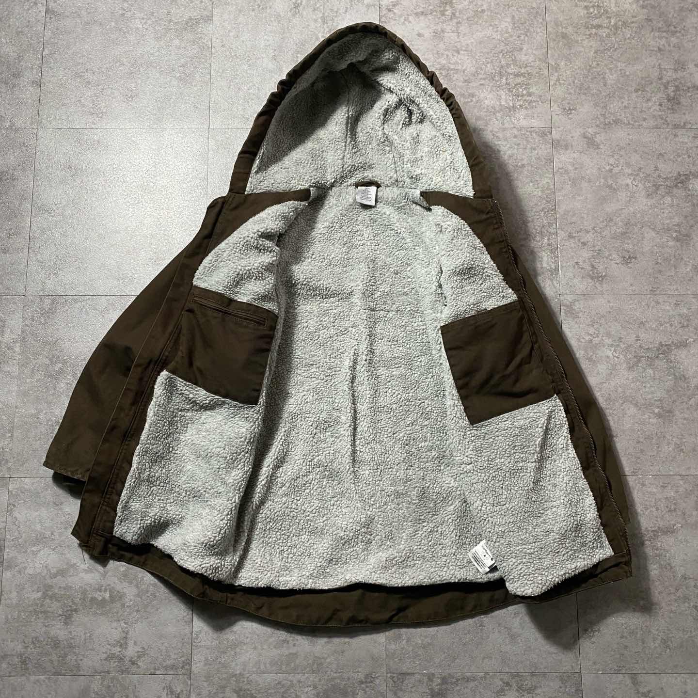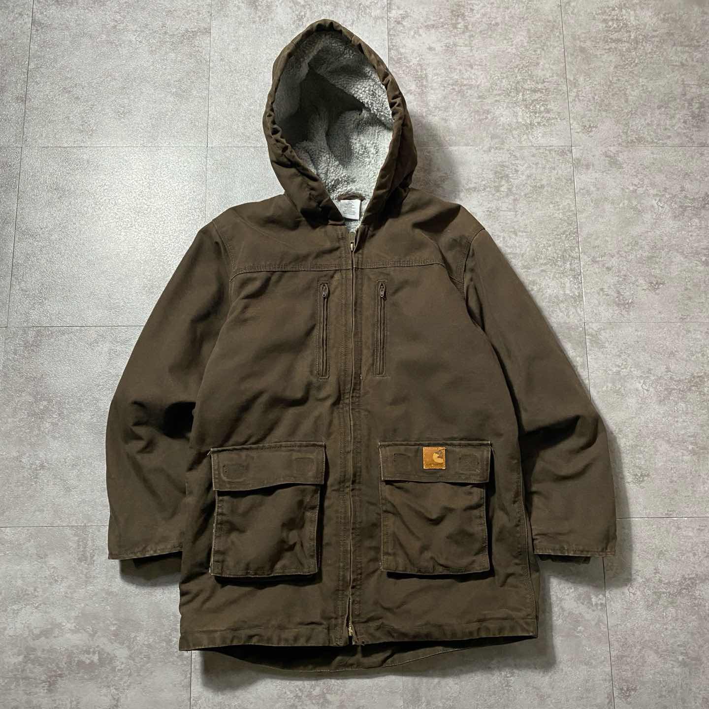 carhartt カーハート 内ボア キッズL レザーパッチ ブラウン ダックジャケット パーカー