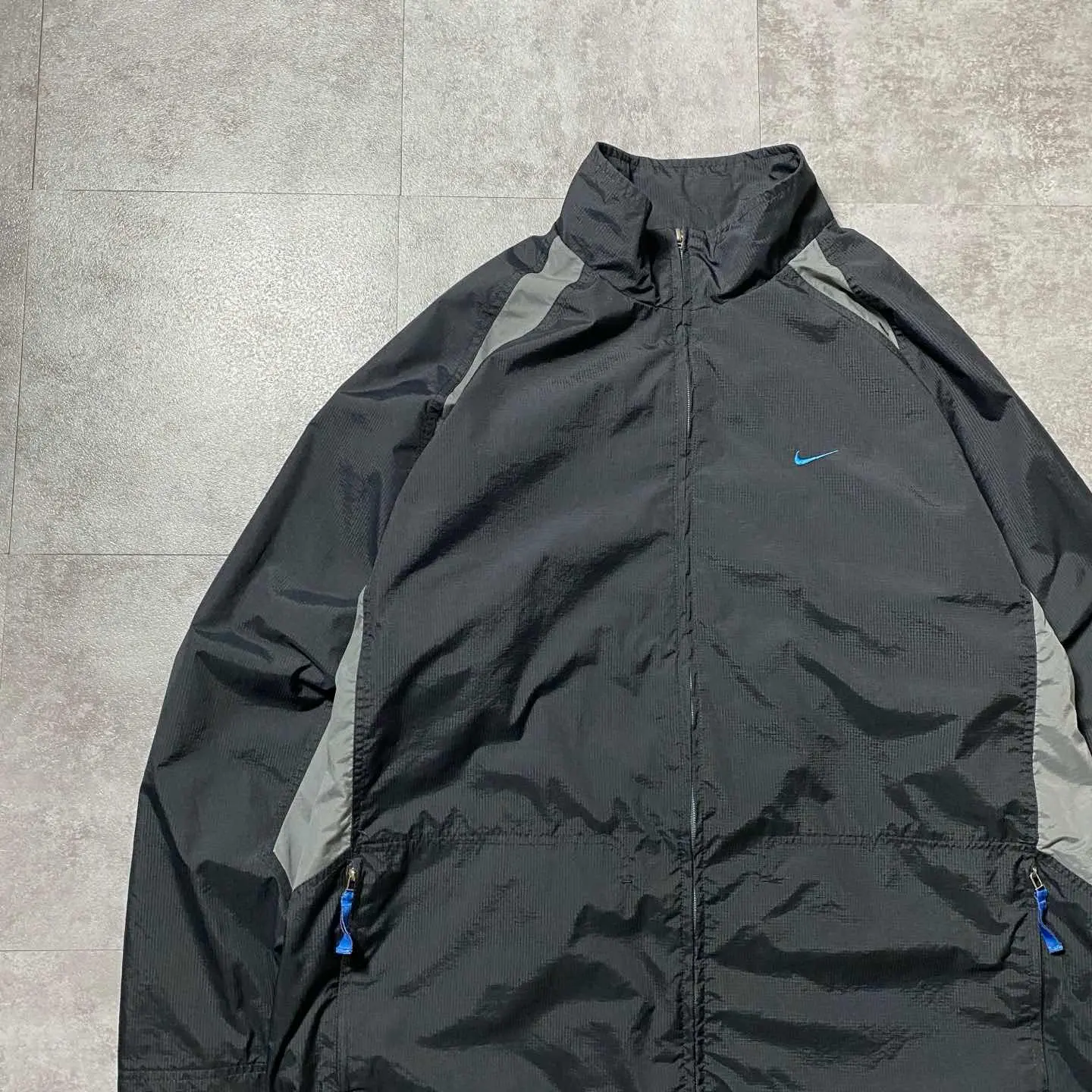 【XL】90s NIKE スウォッシュ 刺繍ロゴ フード ナイロンジャケット