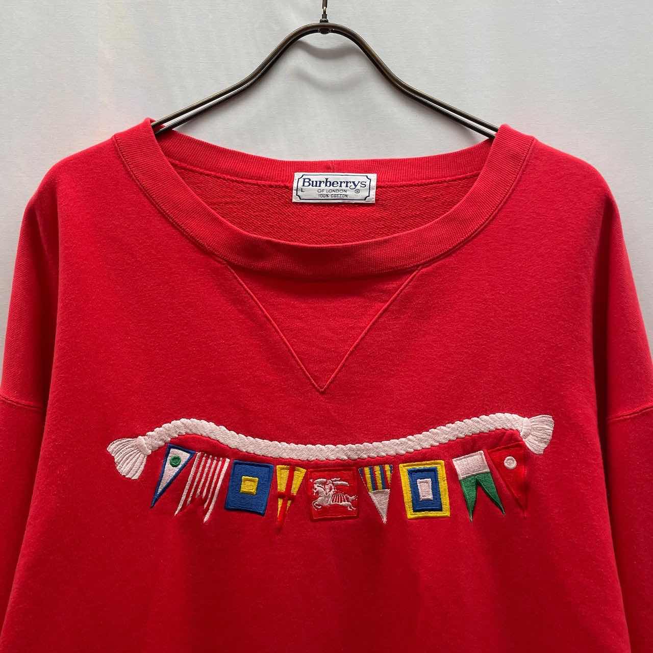 90s burberrys sweat shirt バーバリー スウェット/トレーナー burberry 赤 刺繍