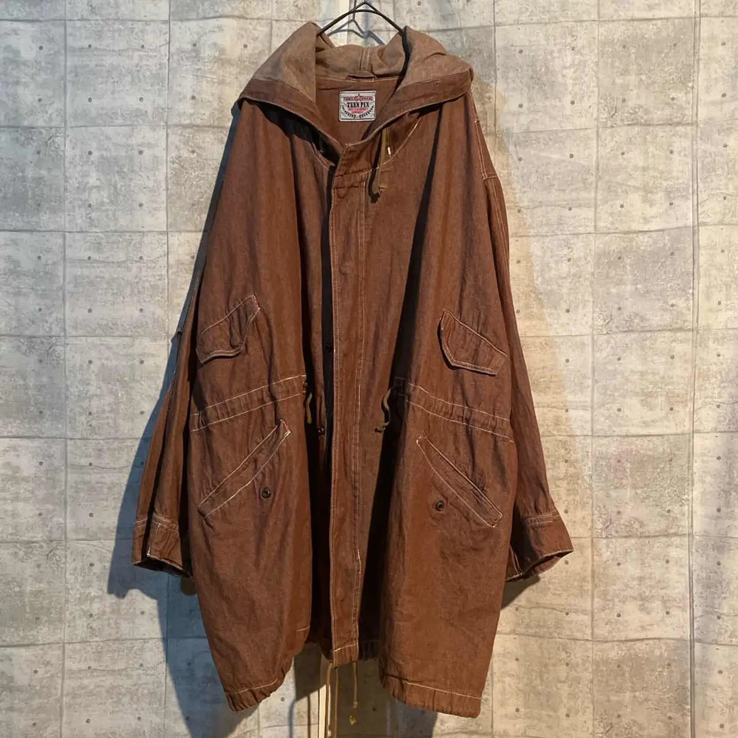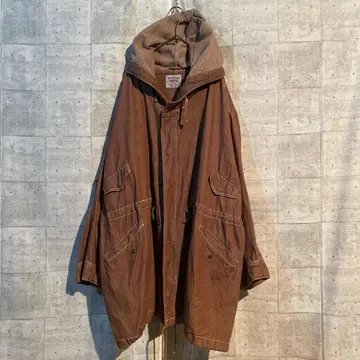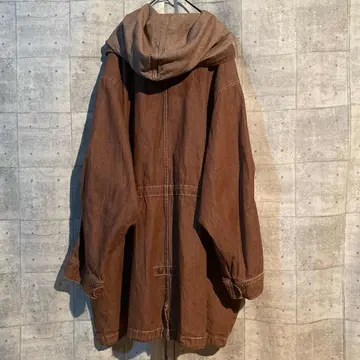 【商品説明】 vintage フード付きモッズコート。 しっかりとした厚みのあるコットン生地に、 経年による色落ちと風合いが絶妙にマッチした一着です。 オーバーサイズのシルエットで、ざっくり羽織るだけで雰囲気が完成。 深みのあるブラウンボディに、白ステッチのアクセントが効いており、 ワーク・ミリタリー・アウトドアの要素が絶妙に融合したヴィンテージらしい仕上がりです。 背面のゆるい落ち感、広めの袖口、 ウエストと裾のドローコードによってシルエットを自在に調整可能。 スウェットやニットの上から羽織ってもバランスが崩れず、 古着コーデのメインアウターとして抜群の存在感を放ちます。 #vintage#used#fashion#coat#outer #古着#ビンテージ#モッズコート
