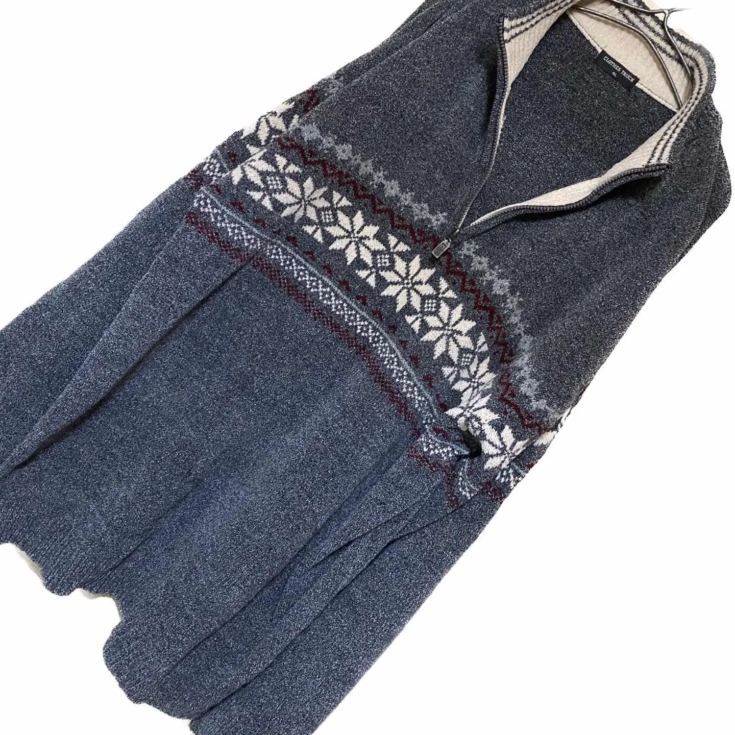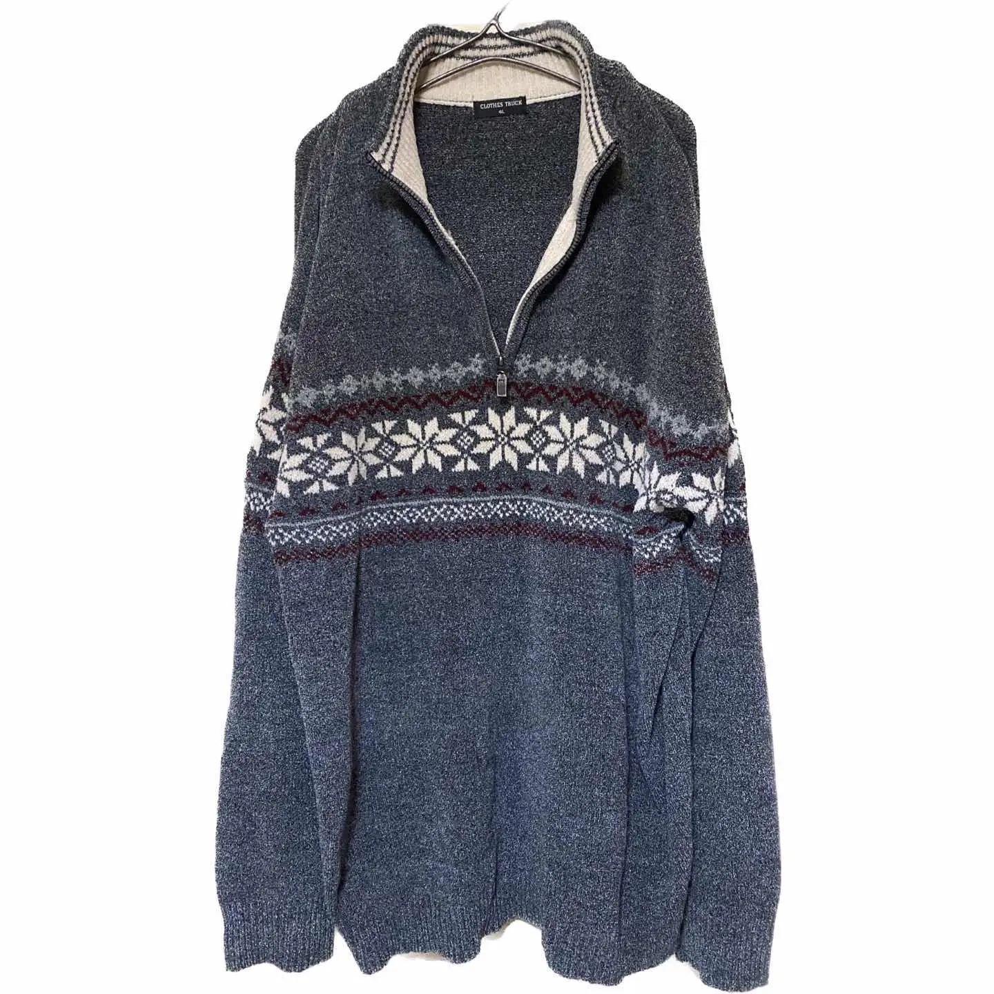 90s 新品同様 ミックスニット ノルディック 霜降り ハーフジップ セーター4L スペシャルヴィンテージですね 新品同様のミックスニット、メラン、ジと言われる技法を 施した半端ない。ボディに Settleインスリープ、さらに 惜しみなく織り込まれた ノルディック柄がかっこよすぎる チクチクしないし、洗濯機丸投げ。オッケーの機能性と デザイン性 さらにオススメポイント言うと 2way になります、 理由は簡単です ハーフジップですよね? しかも激レアなディープハーフジップです。 着用画像見たらわかると思いますが、独特の脱力感が また僕はあまり好きじゃないのでやらないとゆーか、半端なく似合わないんで、やりませんが、 ハイネックでもいいですね。好きじゃないんで着用画像は省きます ハイネック決め似合う方は、コートのインナーに使ってもかっこよく、大人っぽく決まりますね 独特のゆったりな、リラックス感のあるサイズは、それだけでこなれ感が出ます それがさらに新品同様だったら迷う必要はないと思います。ご判断を早めに ▷color◁ 画像通り ※ブラウザで異なる場合ありますがかなり実物近づけてます。 ▷size◁ 平置き片面採寸【㎝表記】 表記size 4L よってキングサイズ 着丈/80 身幅/68 肩幅/70 袖丈 /64 DSは袖はハンガー採寸 ※多少の誤差は理解下さい モデル170センチ 普通体型 【参考例TシャツMがジャストくらい】 私が着てかなりゆるだぼ、 【素材】 モールニットにmelange 【状態】 美品、新品同様 #モールニット #90svintage #ノルディッグセータ #ハーフジップ #オーバーサイズ #メランジ