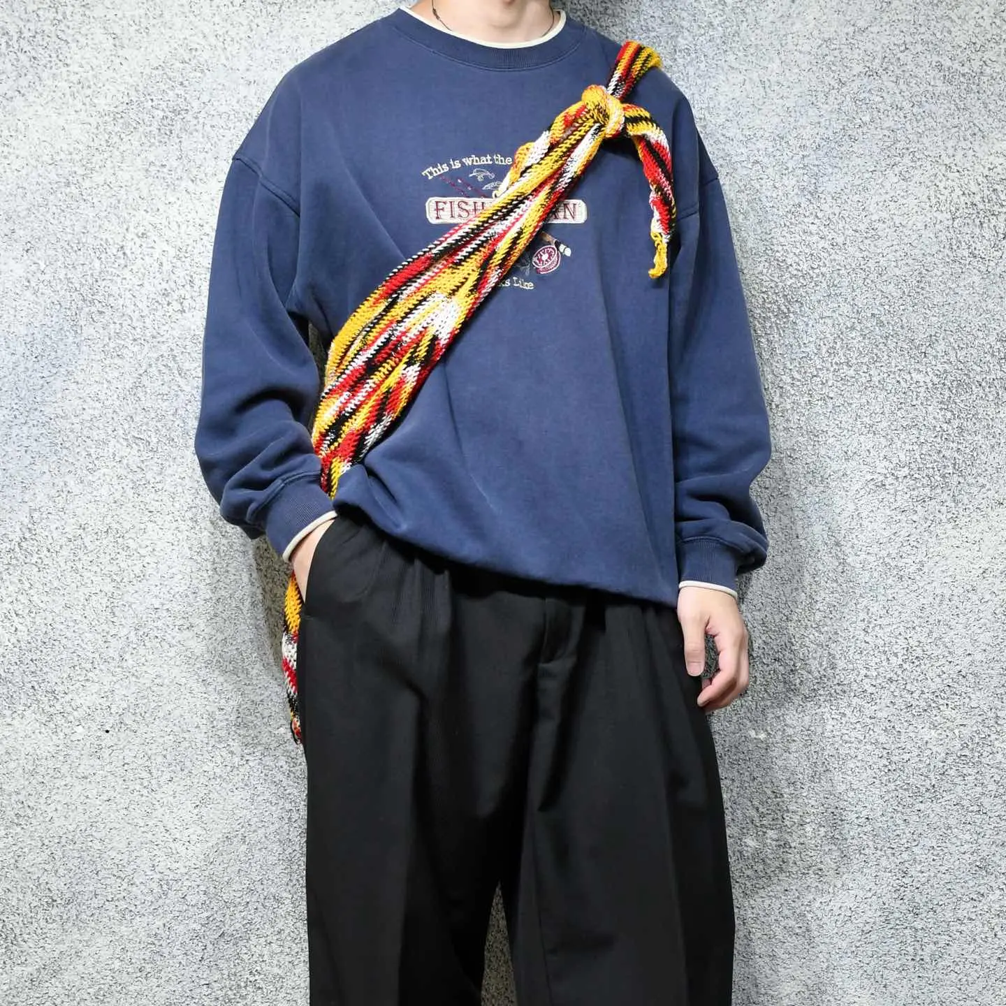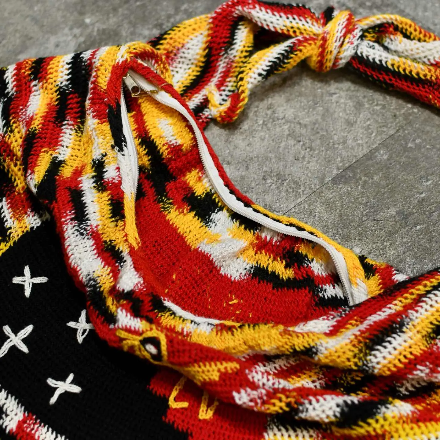 サイズ 縦37cm 横約82cm ベルト~約73cm パプアニューギニアの国旗に似ていますが、 南十字星も極楽鳥もどこか違和感のあるデザイン。 恐らくハンドメイドですが、その色使いや 抜けたデザインに惹かれました。 ベルトの部分は結んで長さを調節でき、 好みの長さに出来るのも◎ 大容量バッグというよりか、 シャツをたすき掛けするような感覚で コーデの主役にもなるバッグとしておすすめです。 ※撮影状況により、実物と多少色が異なる場合が ございます。 ※古着を取り扱っているため、気付かない汚れ等がある場合がございます。 予めご了承ください。 ※サイズは着用感で選んでおり、 表記サイズではございません。 表記サイズは説明欄の最初に記載しております。 古着 オーバーサイズ old vintage ヴィンテージ used 80's 90's アメリカ古着 ユーロ古着 POLO RALPH LAUREN Eddie Bauer OLD GAP LANDS' END ランズエンド LLBean エルエルビーン オールドギャップ エディーバウアー ラルフローレン ブルックスブラザーズ Brooks Brothers 赤黒 黄色 イエロー レッド ブラック 肩掛け ショルダーバッグ などがお好きな方 #vintage #オーバーサイズ #old #used #90s #80s #古着 #ヴィンテージ #アメリカ古着 #ユーロ古着 #LLBean #エルエルビーン #EddieBauer #エディーバウアー #oldgap #オールドギャップ #LANDSEND #ランズエンド #NAUTICA #ノーティカ #ラルフローレン #POLORALPHLAUREN #ブルックスブラザーズ #BrooksBrothers #スーベニア #バッグ #ショルダーバッグ #ニットバッグ #肩掛け #ハンドメイド