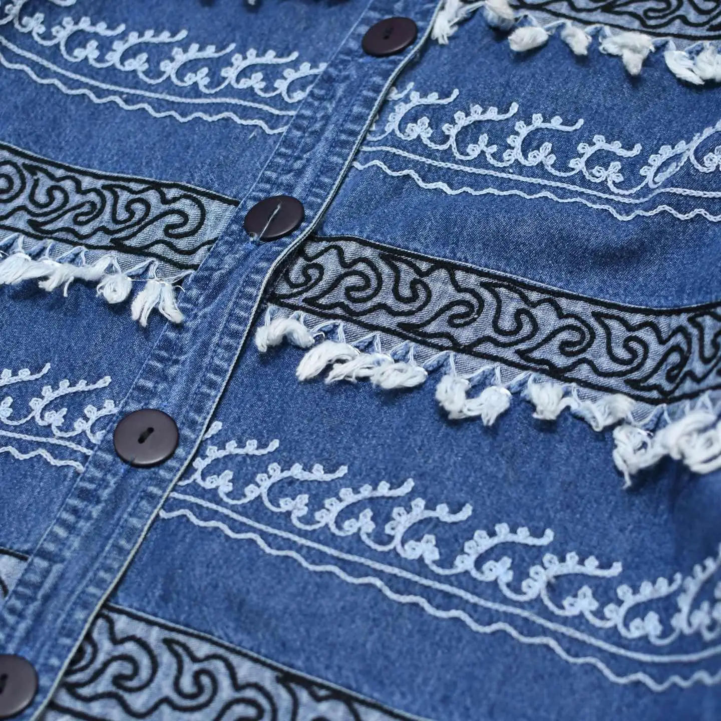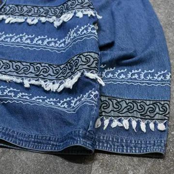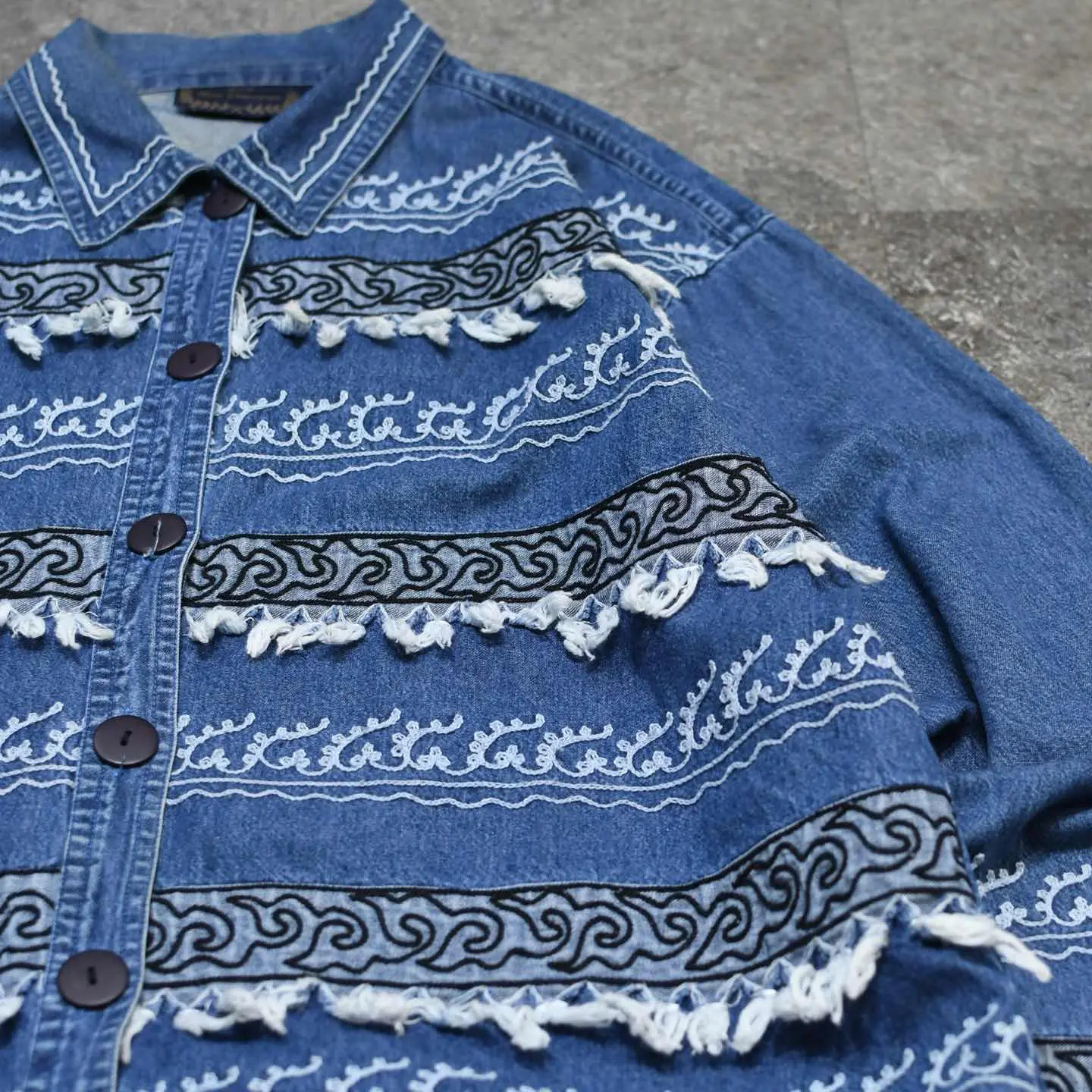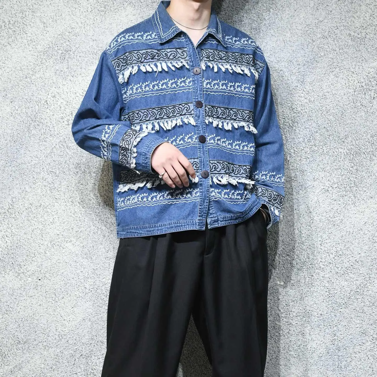 SIZE:XL 着丈66cm 肩幅55cm 身幅62cm 袖丈58cm fabric/cotton 着用画像 177cm/64kg デニムジャケットの多くはやはり、 カジュアルなものが多いですし、キレイめな スタイリングにも落とし込みやすい デニムジャケットって無いなと感じました。 そんな中でこちら。 刺繍とフリンジ、贅沢なデザインをデニムに 施した逸品です。 スラックスなどとの相性はもちろん、 カジュアルなパンツと合わせて、 ほんの少しだけ個性を足してあげるような スタイリングにも。 コートなど、ヘビーアウターの中から 顔を覗かせても可愛くなりそうです。 ※襟元に汚れあり。 ※撮影状況により、実物と多少色が異なる場合が ございます。 ※古着を取り扱っているため、気づかない汚れや ほつれ等がある場合がございます。 ※サイズは着用感で選んでおり、 表記サイズは説明欄の最初に記載しております。 オーバーサイズ old vintage ヴィンテージ used 80's 90's アメリカ古着 ユーロ古着 POLO RALPH LAUREN Eddie Bauer OLD GAP LANDS' END ランズエンド LLBean エルエルビーン オールドギャップ エディーバウアー ラルフローレン ブルックスブラザーズ Brooks Brothers 青 ブルー などがお好きな方 #vintage #オーバーサイズ #old #used #90s #80s #古着 #ヴィンテージ #アメリカ古着 #ユーロ古着 #LLBean #エルエルビーン #EddieBauer #エディーバウアー #oldgap #オールドギャップ #LANDSEND #ランズエンド #NAUTICA #ノーティカ #ラルフローレン #POLORALPHLAUREN #ブルックスブラザーズ #BrooksBrothers #デニムジャケット #ジャケット