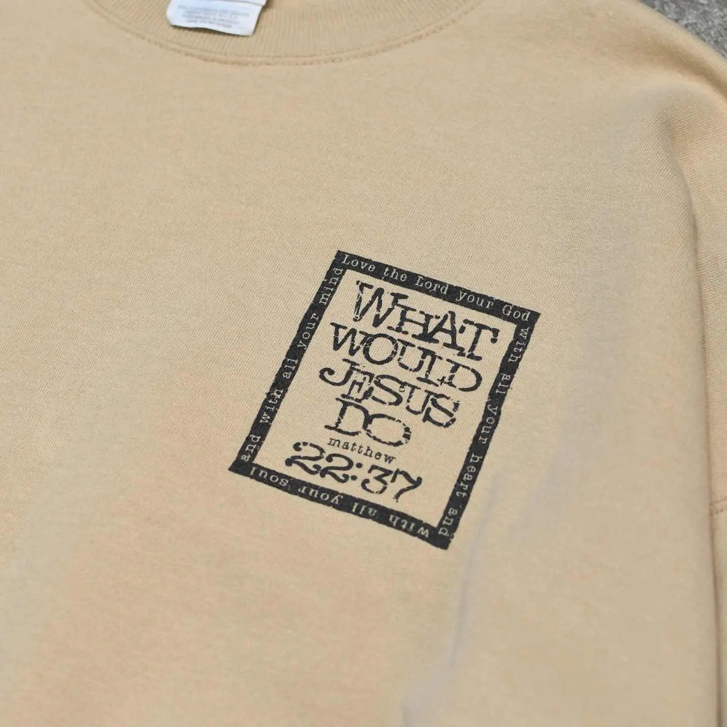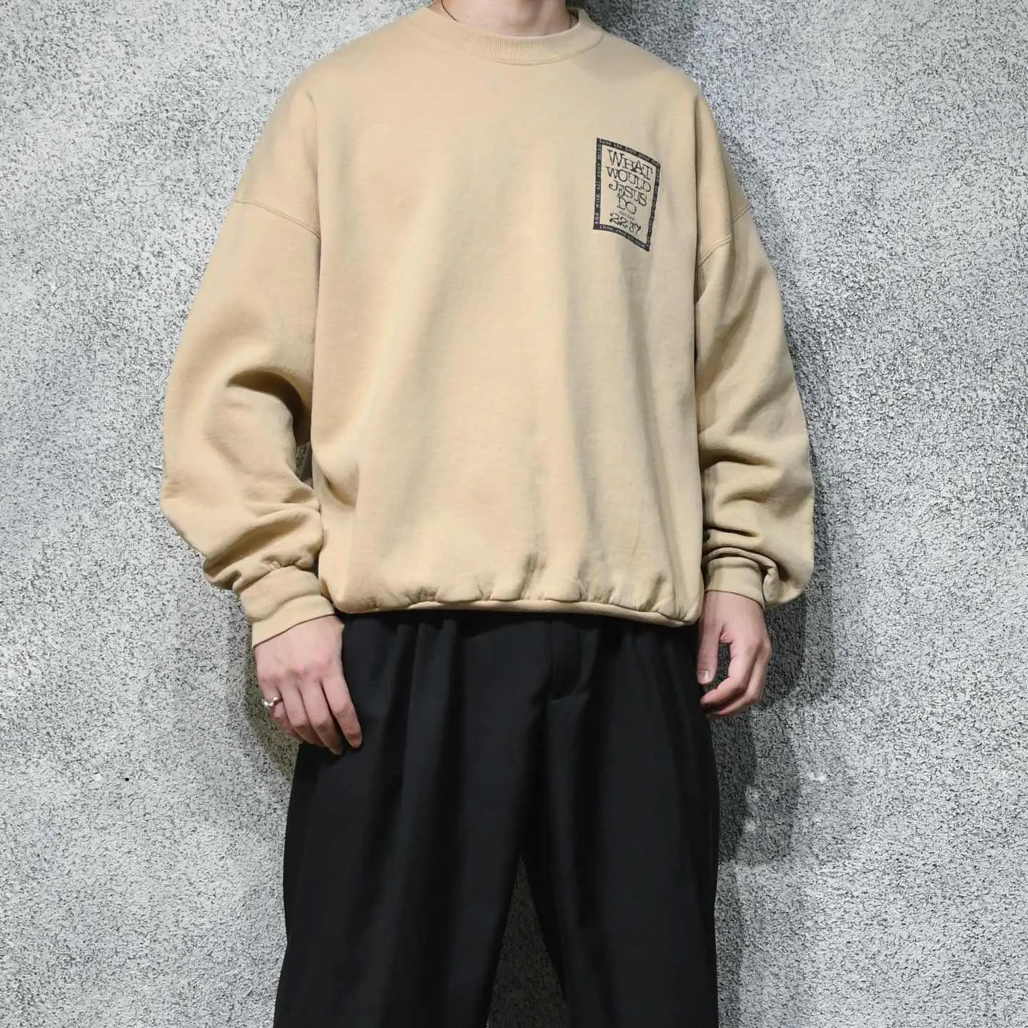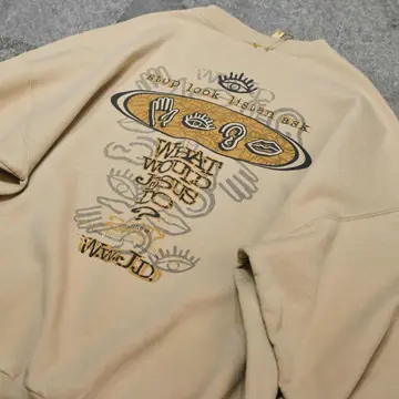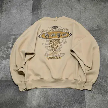 SIZE:XXL 着丈69cm 肩幅74cm 身幅71cm 袖丈59cm fabric/cotton・poly 着用画像 177cm/64kg WWJD(WHAT WOULD JESUS DO?) キリスト教のキリスト教の団体が、 布教のために作ったスウェット。 またWWJD系のプリントは、90年代には 信者だけでなくファッションとして 一般層にも浸透していたようです。 古着らしいバックボーンのあるスウェットですし、 何よりバックプリントのデザインに惹かれました。 ...そういえばベージュボディのスウェットって 手元に無いなと。 そんな意味でもおすすめです。 ※撮影状況により、実物と多少色が異なる場合が ございます。 ※古着を取り扱っているため、気づかない汚れや ほつれ等がある場合がございます。 予めご了承ください。 ※サイズは着用感で選んでおり、 表記サイズは説明欄の最初に記載しております。 オーバーサイズ old vintage ヴィンテージ used 80's 90's POLO RALPH LAUREN Eddie Bauer OLD GAP LANDS' END ランズエンド LLBean エルエルビーン オールドギャップ エディーバウアー ラルフローレン ブルックスブラザーズ Brooks Brothers ベージュ バックプリント などがお好きな方 #vintage #オーバーサイズ #old #used #90s #80s #古着 #ヴィンテージ #LLBean #エルエルビーン #EddieBauer #エディーバウアー #oldgap #オールドギャップ #LANDSEND #ランズエンド #ラルフローレン #POLORALPHLAUREN #ブルックスブラザーズ #BrooksBrothers #スウェット #トレーナー #プリントスウェット #両面プリント #バックプリント