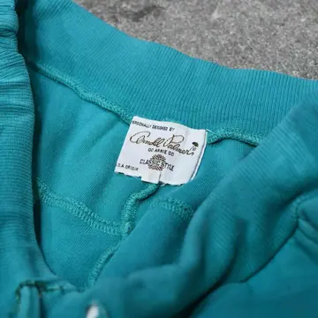 SIZE:2 ウエスト~118cm(ドローコード付き) 総丈104cm 股下77cm わたり36cm 裾幅~28cm(ドローコード付き) fabric/質感よりcotton・poly made in USA 着用画像 177cm/64kg 1960年代に始まった。ゴルフウェアを中心に 手掛けるアメリカのブランド”Arnold Palmer” スウェット生地、裏地のパイル生地、そしてリブ。 その3つの生地を上手く切り替えた インサイドアウトスウェットパンツ。 またスウェパンに求めるワイドさも兼ね備えた ワイドストレートのシルエット。 雑に穿いてウェードさせても、スタイリングの 抜けとして上品なコーデに落とし込んでも◎ ファストファッションからブランドまで、 多くのスウェパンが展開される中、 個人的に思うのは、”この個体を選ぶ理由”を しっかり持ち合わせた一本だと感じました。 ※裾上げ等のレングス直しにつきましては、 購入前に、必ずご連絡お願い致します。 ※撮影状況により、実物と多少色が異なる 場合がございます。 ※古着を取り扱っているため、気づかない汚れや ほつれがある場合がございます。 ※サイズは着用感で選んでおり、 表記サイズは説明欄の最初に記載しております。 old vintage ヴィンテージ used 80's 90's POLO RALPH LAUREN Eddie Bauer OLD GAP LANDS' END ランズエンド LLBean ラルフローレン ブルックスブラザーズ Brooks Brothers 水色 ライトブルー などがお好きな方 #vintage #old #used #90s #80s #古着 #ヴィンテージ #LLBean #EddieBauer #oldgap #ラルフローレン #POLORALPHLAUREN #BrooksBrothers #スウェットパンツ #ワイドパンツ #ArnoldPalmer