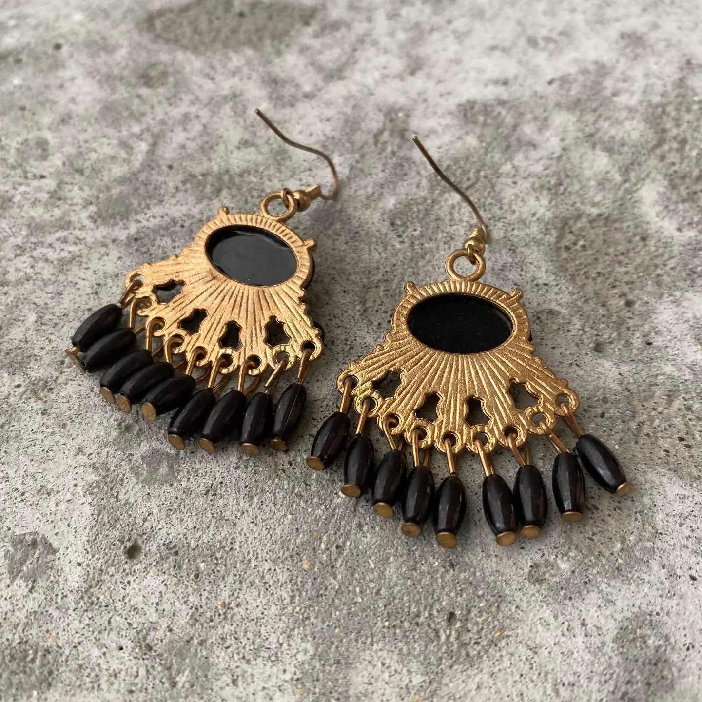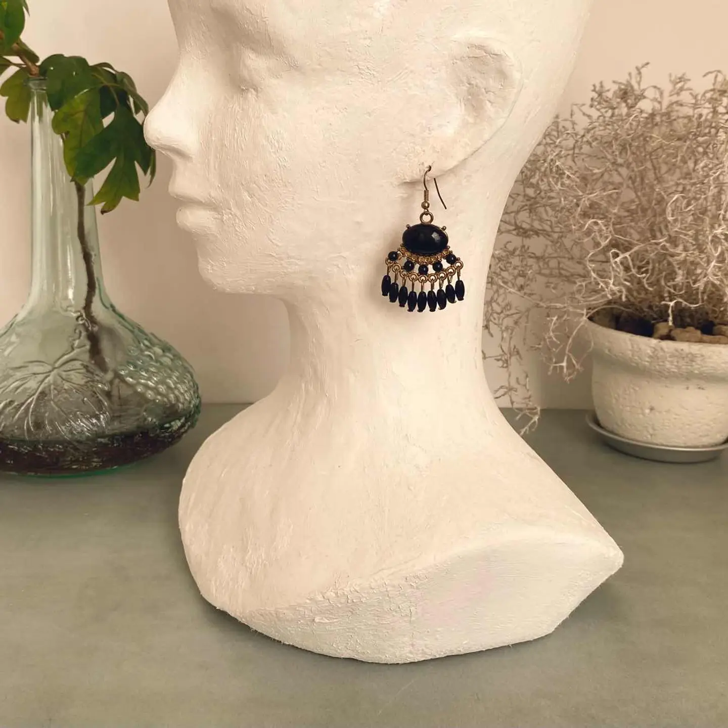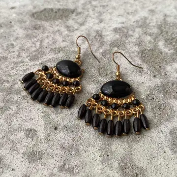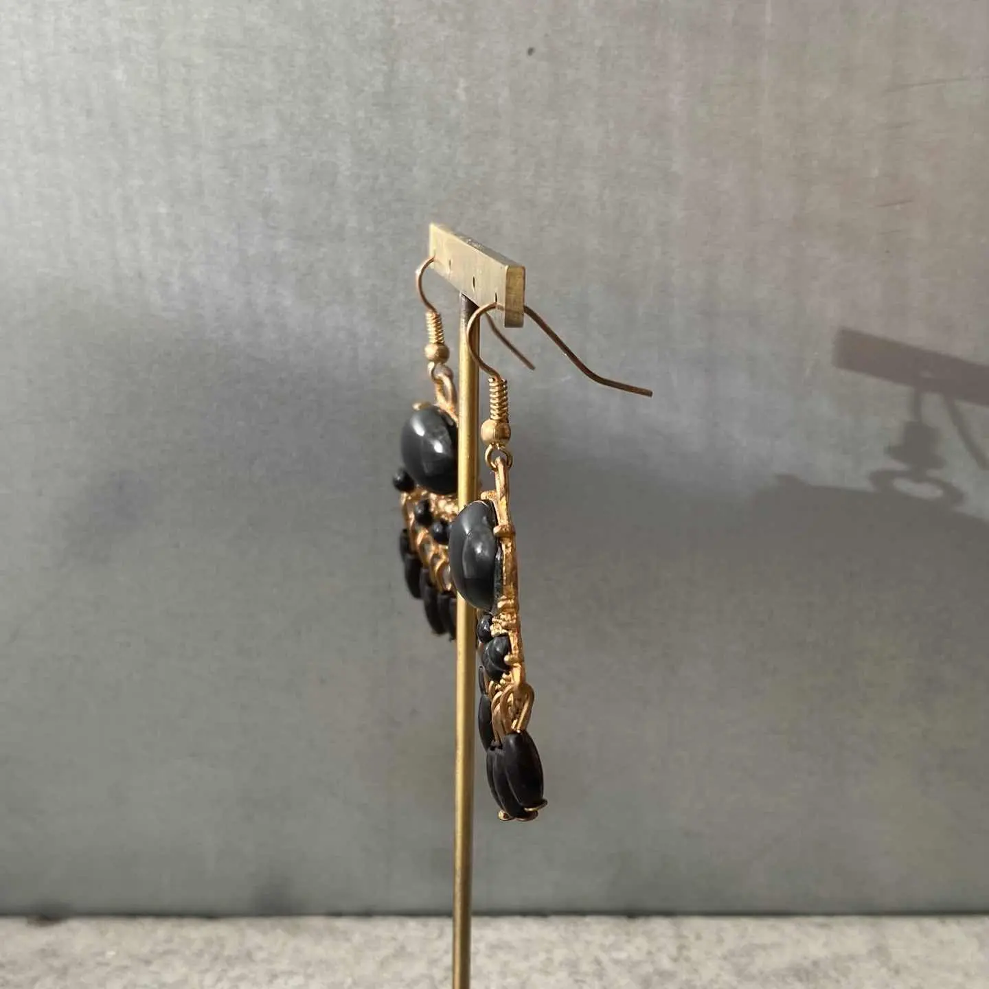 ブラックビーズのフリンジが揺らめくUSAヴィンテージピアス。軽やかな着け心地でスタイリングにお洒落な雰囲気をプラスしてくれます。 □Materials メタル(ゴールドメッキ)、プラスチックストーン □Size 約H5.5×W3.1㎝ 10g □Condition【B】 変色によるメタルのトーンダウンやビーズには目立たない程度のスレがみられます。(元々の作りですが、ストーンが石座よりズレた状態で接着されている箇所がございます)中古品であることをご理解のうえお買い求めください。ご購入前に必ずショッピングガイドのご確認をお願いいたします。 【S】未使用 【A】未使用に近い 【B】やや使用感あり 【C】使用感あり Item No.3415