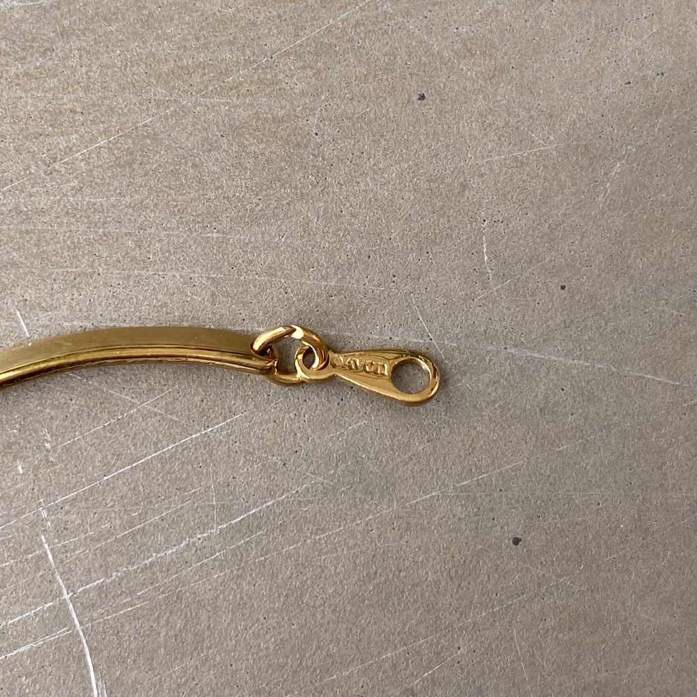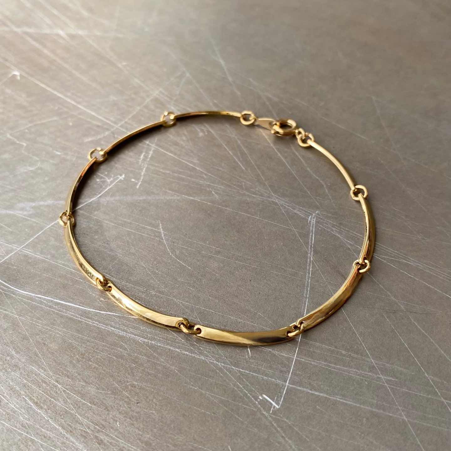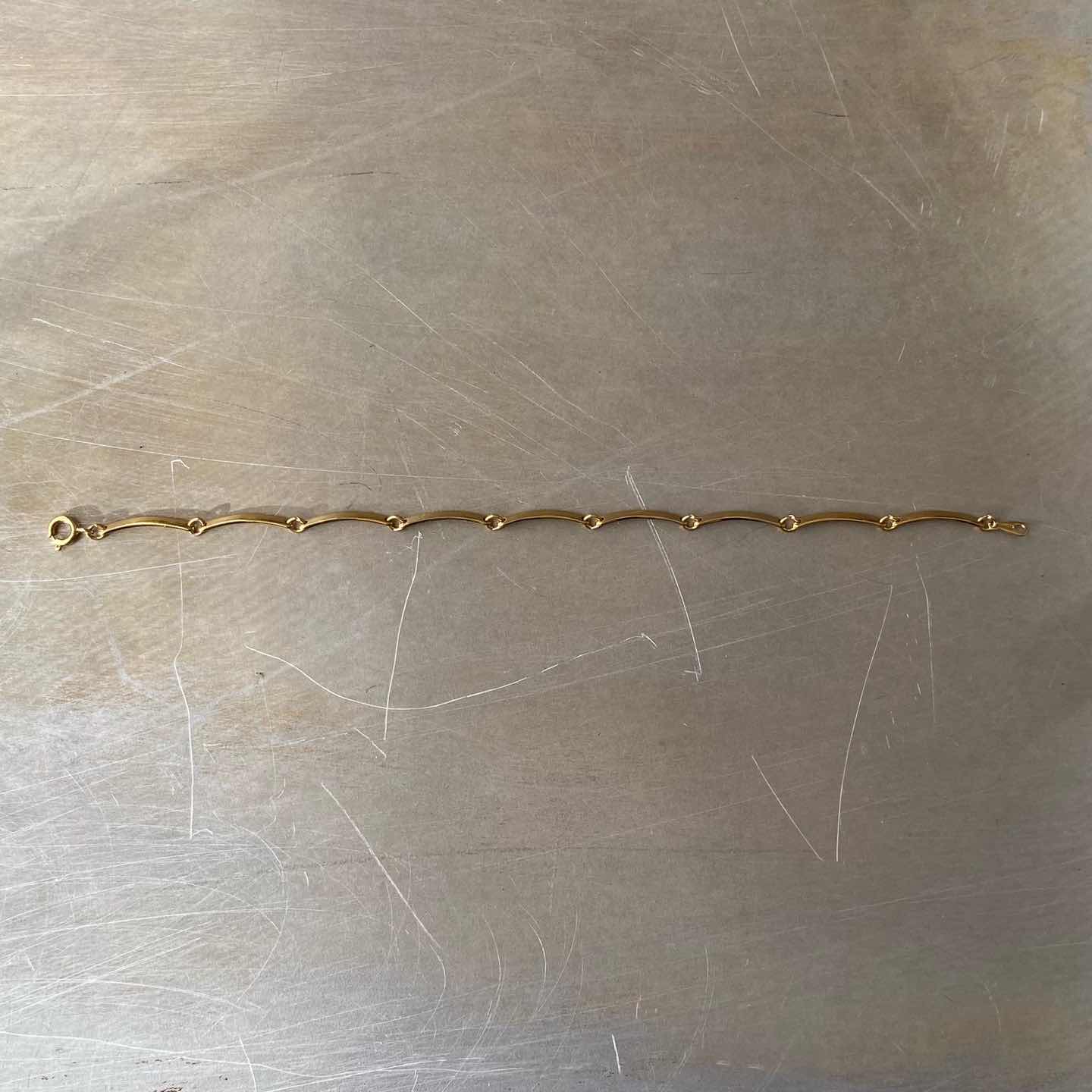 1886年にNYで香水会社として創業し、1971年よりコスチュームジュエリーの制作を始めたブランド「AVON」のUSAヴィンテージブレスレット。柔らかな曲線が魅力的なチェーン。シンプルで身につけやすくデイリーユースにもおすすめのアイテムです。 □Materials メタル(ゴールドメッキ) □Size 全長 約19.3㎝ 幅 約2.5㎜ 3g □Brand AVON(エイボン) 刻印入り □Condition【B】 目立たない程度の細かなスレはみられますが全体的に目立ったダメージの無い良好な状態です。中古品であることをご理解のうえお買い求めください。ご購入前に必ずショッピングガイドのご確認をお願いいたします。 【S】未使用 【A】未使用に近い 【B】やや使用感あり 【C】使用感あり Item No.3412