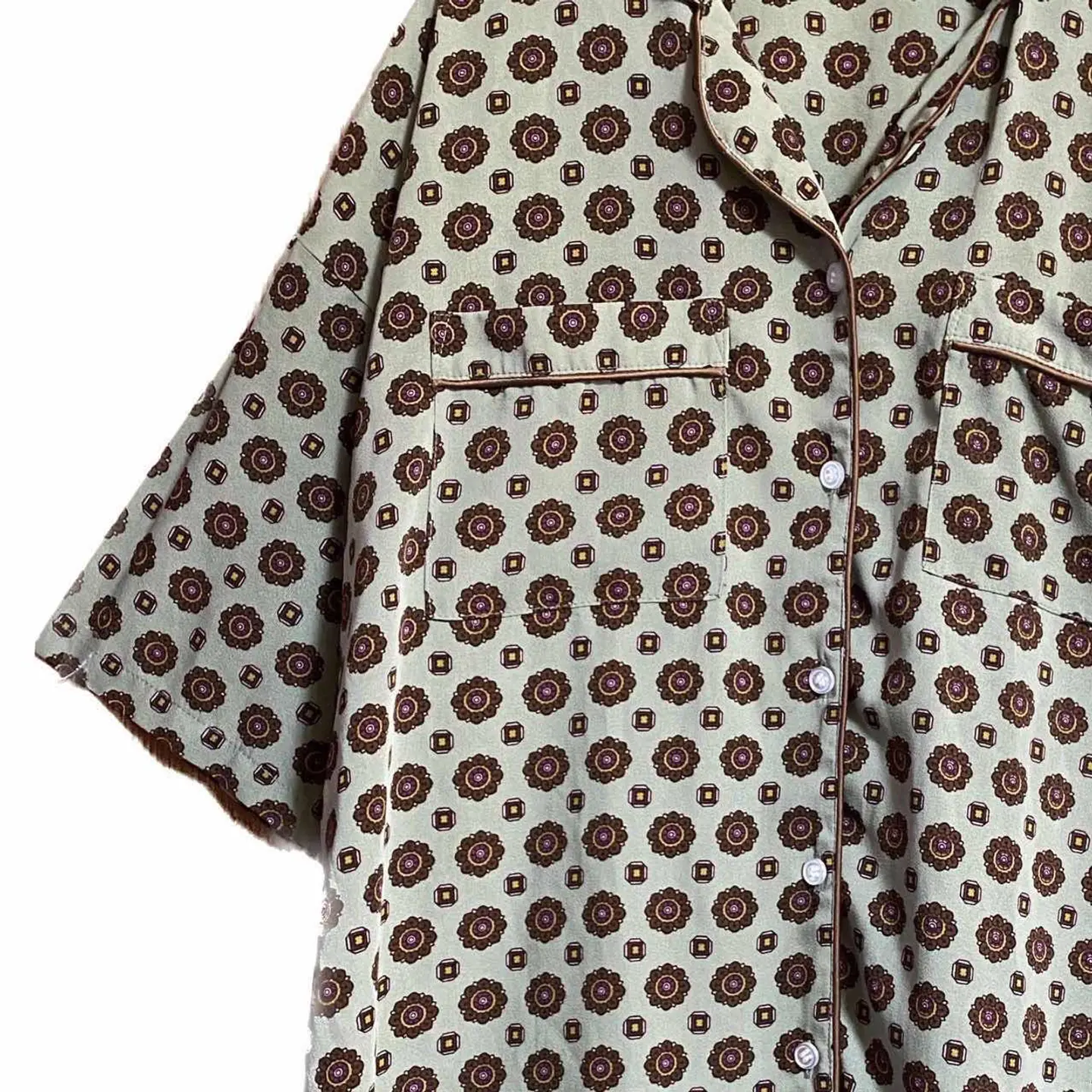 80年 美品ROYAL geometry レアカラー S/SシャツXL 80年代からできる半端ない作り ROYAL geometry 王族柄を、惜しみなく幾何学に施した柄、 80年の独特の身幅が着用して、やっぱり安心感があります さらに作りまでしっかりして 胸に2つポケットがあり 急ぎの時でも収納も便利ですし 1番びっくりしたのはOriginal COLORらしいです。 しかも新品同様 ラストテストサンプルですね。 私見ですが、よくTシャツとか半袖シャツは 季節が違ったら、使えないとか、勘違いされてる方いますが、??ん?です、 逆です 暑い時期だったら、それ1枚でもいいんですよ 寒い時だったらじゃあどうします??インナーに仕込んだ一気に高級感とセンスが出ます 柄シャツの魅力はそこですね せっかくこんなかっこいいシャツ、なんでガンガン試してみて欲しいです コーデ使用 #70s18カムロックボトムstylistTK 【カラー】 メテオレアカラーオリジナルらしいです!!写真参照 ▷size◁ 平置き片面採寸【㎝表記】 表記size 身幅60は、JPでは、XLになりますので XLとしときます、 着丈68 身幅60 肩幅60boxbs 袖丈35↓ ※多少の誤差はご容赦下さい 【着用画像データ】 身長170㎝ Mだと、ジャストくらいの体型の私が、ゆるだぼ、 ▷material◁ vintageポリ、1mm厚、タフかシワ知らず、テクスト系だから、肌張り付かない ▷condition◁ 美品 Special Stockなんで、新品同様 ※入念にチェックは、しておりますが、vintage/usedの特性ご理解下さい #総柄シャツ #ジオメトリーシャツ #個性派古着 #ヴィンテージ #ワコマリア #幾何学柄 #美品