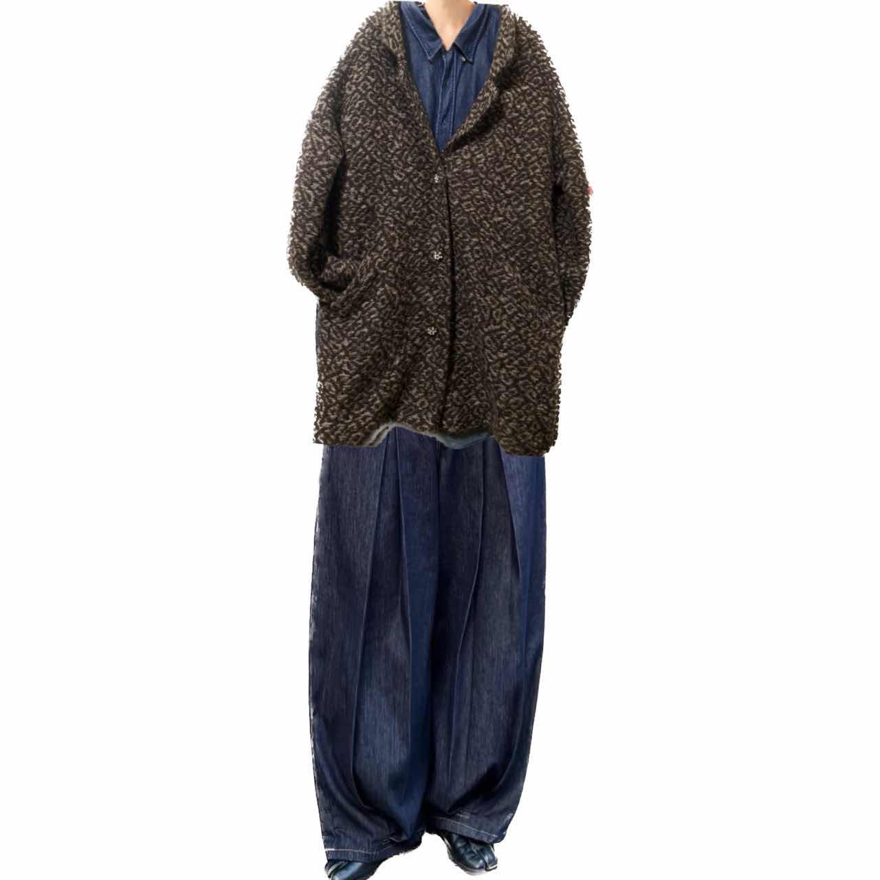 90-00s 美品モヘア3DレオパードコートジャケットXL