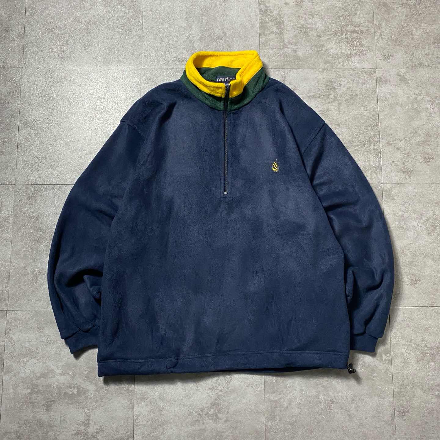 90s nautica ノーティカ 刺繍ワンポイント ハーフジップ ネイビー フリーススウェット