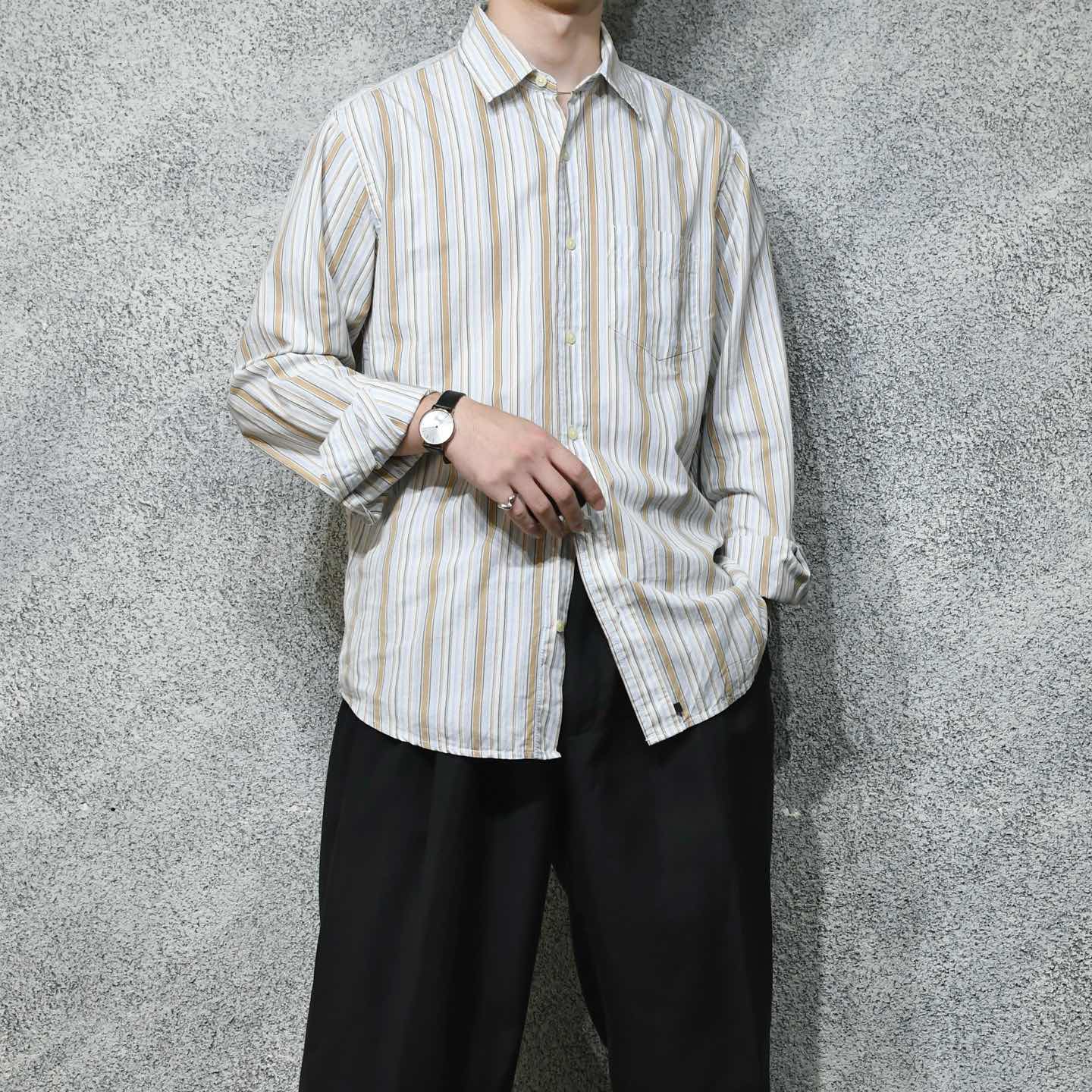 SIZE:M 着丈77cm 肩幅49cm 身幅60cm 袖丈64cm fabric/cotton 着用画像 177cm/64kg 実寸XL程度でしょうか、M表記でも程よく ゆったりとしたサイズ感で身に纏える、 GAPのrelaxedシリーズ。 フォーマルな印象を持ちながらも、 ハリ感が少なく肌に馴染むシャツ。 やや着崩してコーデに落とし込んでも良いですし、 テーラードなんかのインナーにしても纏まる、 そんなシャツです。 茶、グレーのマルチストライプに 水色のラインがアクセント◎ ※撮影状況により、実物と多少色が異なる場合が ございます。 ※古着を取り扱っているため、気づかない汚れや ほつれ等がある場合がございます。 予めご了承ください。 ※サイズは着用感で選んでおり、 表記サイズではございません。 表記サイズは説明欄の最初に記載しております。 古着 オーバーサイズ old vintage ヴィンテージ used 80's 90's アメリカ古着 ユーロ古着 POLO RALPH LAUREN Eddie Bauer OLD GAP LANDS' END ランズエンド LLBean エルエルビーン オールドギャップ エディーバウアー ラルフローレン ブルックスブラザーズ Brooks Brothers ホワイト 白 ドレスシャツ ストライプ柄 などがお好きな方 #vintage #オーバーサイズ #old #used #90s #80s #古着 #ヴィンテージ #アメリカ古着 #ユーロ古着 #LLBean #エルエルビーン #EddieBauer #エディーバウアー #oldgap #オールドギャップ #LANDSEND #ランズエンド #NAUTICA #ノーティカ #ラルフローレン #POLORALPHLAUREN #ブルックスブラザーズ #BrooksBrothers #ドレスシャツ #長袖シャツ #シャツ #ストライプシャツ #マルチストライプ #ストライプ柄