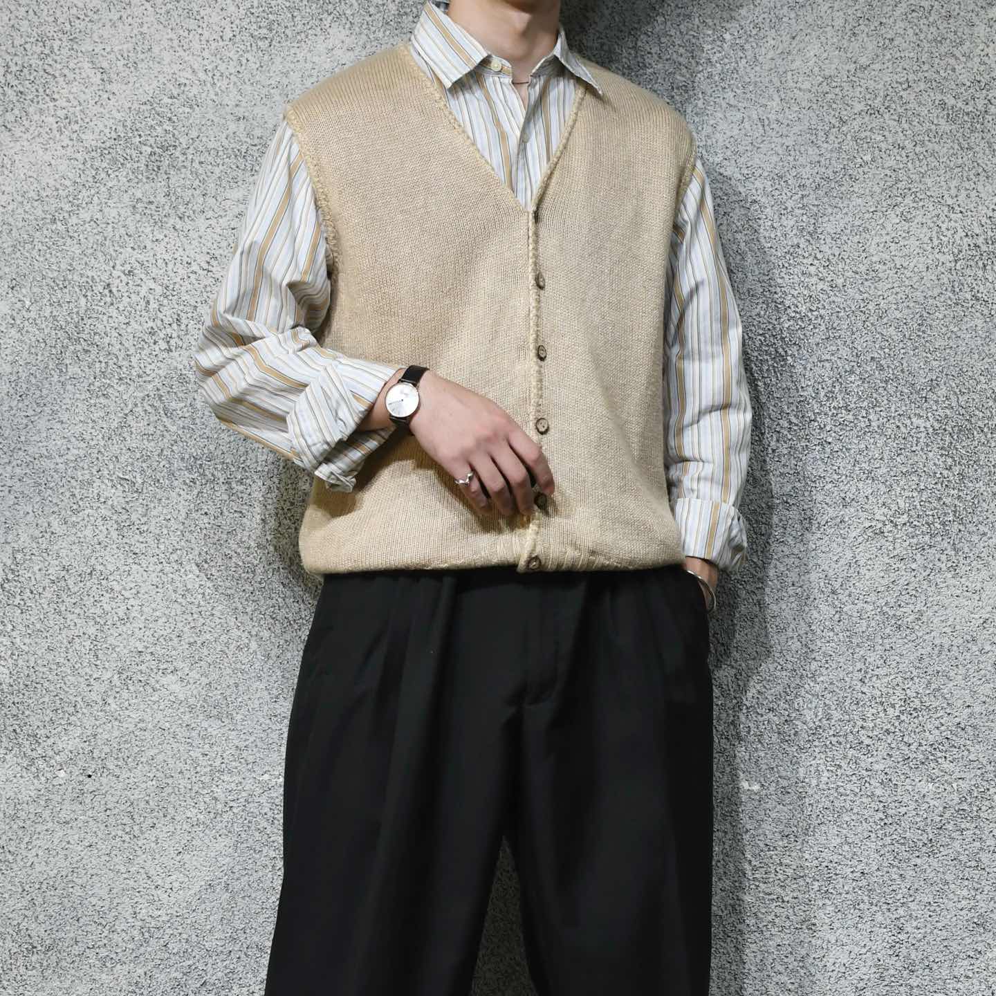 古着 カーキ グレー スラックス タックパンツ ワイドパンツ