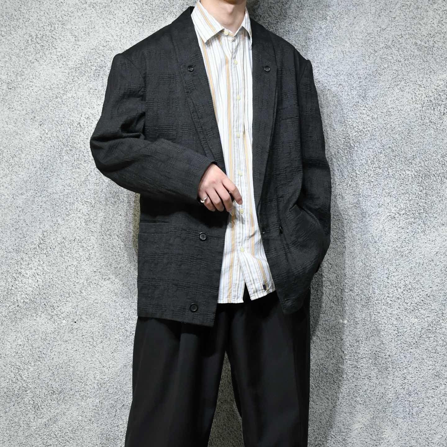 SIZE:54 着丈83cm 肩幅56cm 身幅67cm 袖丈60cm fabric/poly・viscose 着用画像 177cm/64kg フレンチファブリックを用いた テーラードジャケット。 凹凸があり、ジャガード織りが成された生地は 光沢があるにも拘らず、いやらしさがなく 上品な佇まい。 一般的なテーラードジャケットよりも タウンユースに、尚且つラペルやダブルの フロントから遊び心まで感じられる逸品です。 かちっと着ても、ゆるっと着ても様になる アイテムです。 ※撮影状況により、実物と多少色が異なる場合が ございます。 ※古着を取り扱っているため、気づかない汚れや ほつれ等がある場合がございます。 予めご了承ください。 ※サイズは着用感で選んでおり、 表記サイズではございません。 表記サイズは説明欄の最初に記載しております。 古着 オーバーサイズ old vintage ヴィンテージ used 80's 90's アメリカ古着 ユーロ古着 POLO RALPH LAUREN Eddie Bauer OLD GAP LANDS' END ランズエンド LLBean エルエルビーン オールドギャップ エディーバウアー ラルフローレン ブルックスブラザーズ Brooks Brothers ブラック 黒 羽織り などがお好きな方 #vintage #オーバーサイズ #old #used #90s #80s #古着 #ヴィンテージ #アメリカ古着 #ユーロ古着 #LLBean #エルエルビーン #EddieBauer #エディーバウアー #oldgap #オールドギャップ #LANDSEND #ランズエンド #NAUTICA #ノーティカ #ラルフローレン #POLORALPHLAUREN #ブルックスブラザーズ #BrooksBrothers #テーラードジャケット #ジャケット #ジャガード織り #デザイン