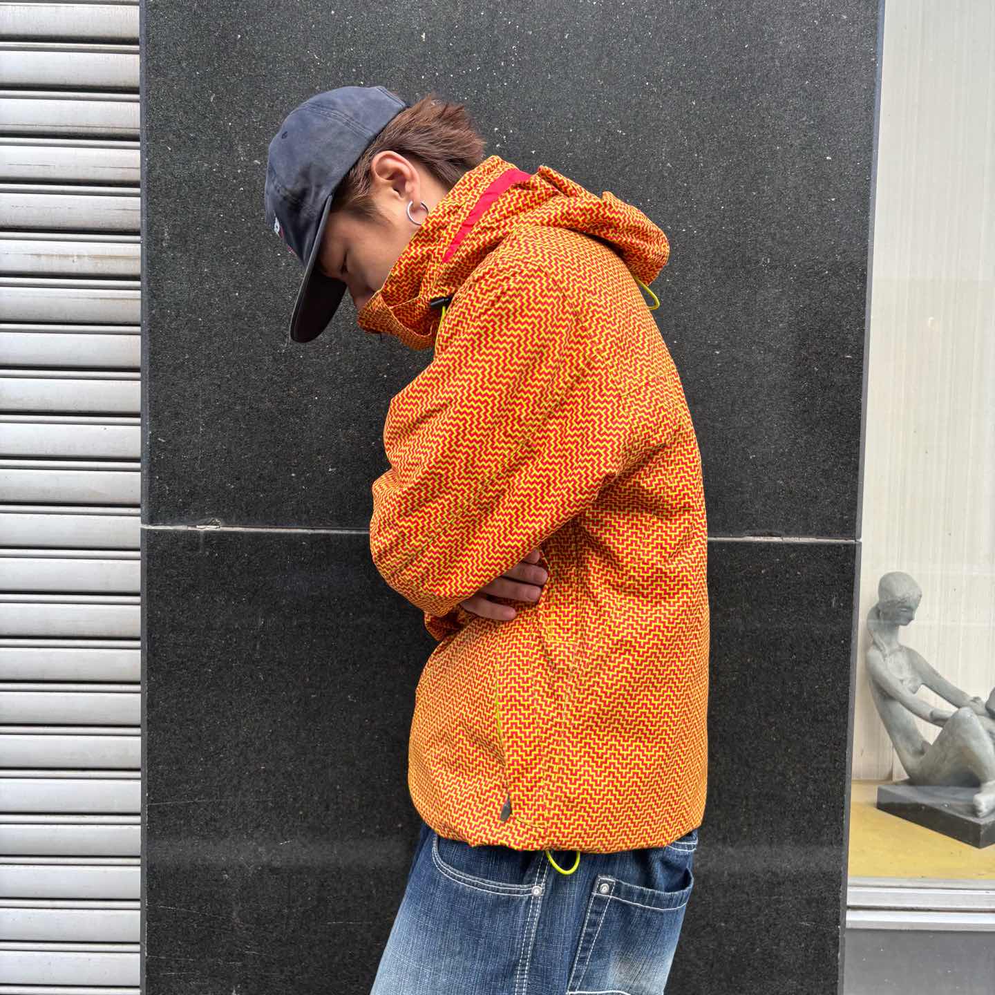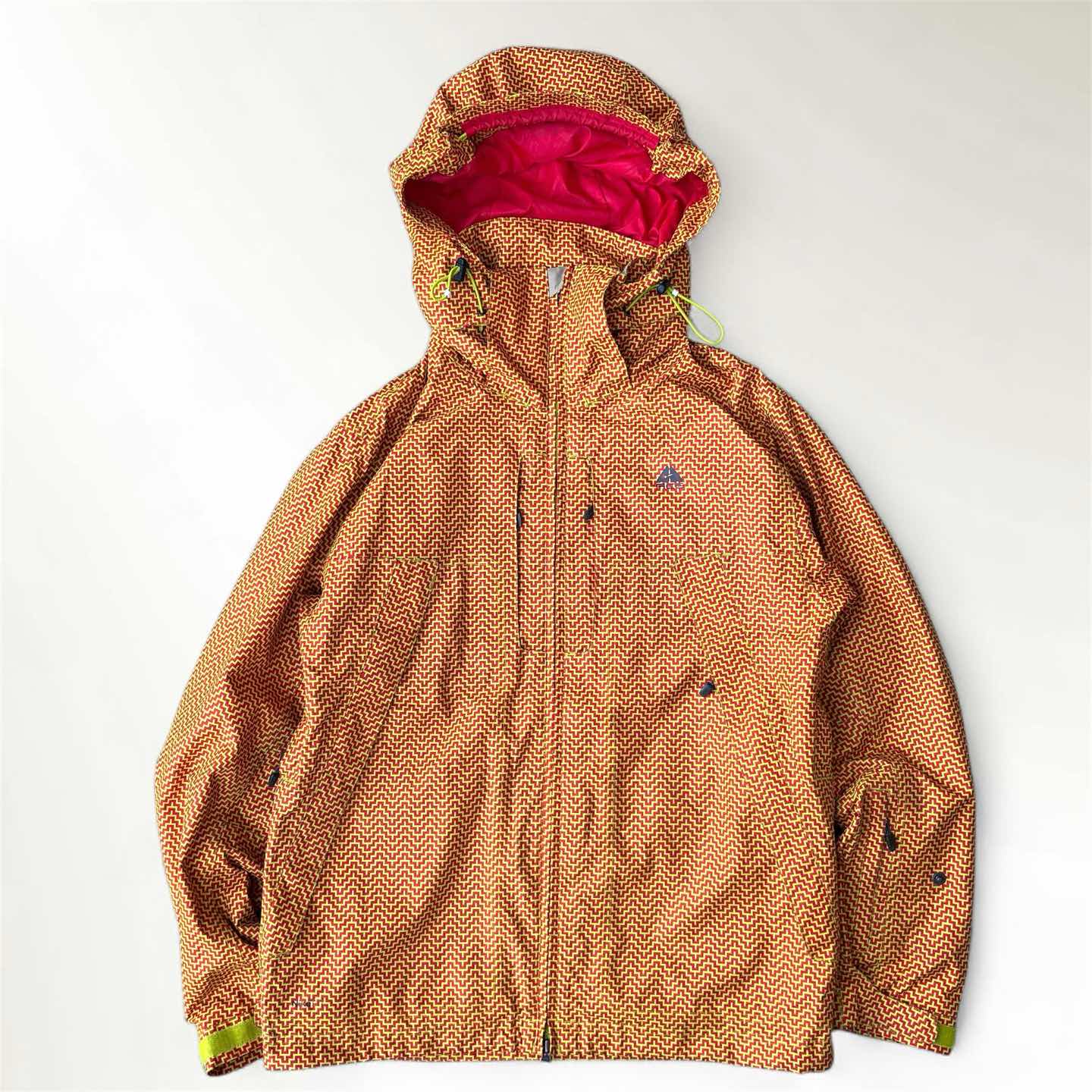 視覚にインパクトを与える一着。 スキージャケットらしい柄ではありますが、ACGでは滅多に見ない派手なデザイン。 色々なACG のスキージャケットに触れてきましたが、このような柄は初めてです。 配色はオレンジ、赤、黄色の3色。 サイズSですが、大きめのMくらいのサイズ感。 配色、サイズ感ともに今っぽいですが、他と被ることのない素晴らしいジャケットかと。 #vintage #古着 #90s #used #nikeacg