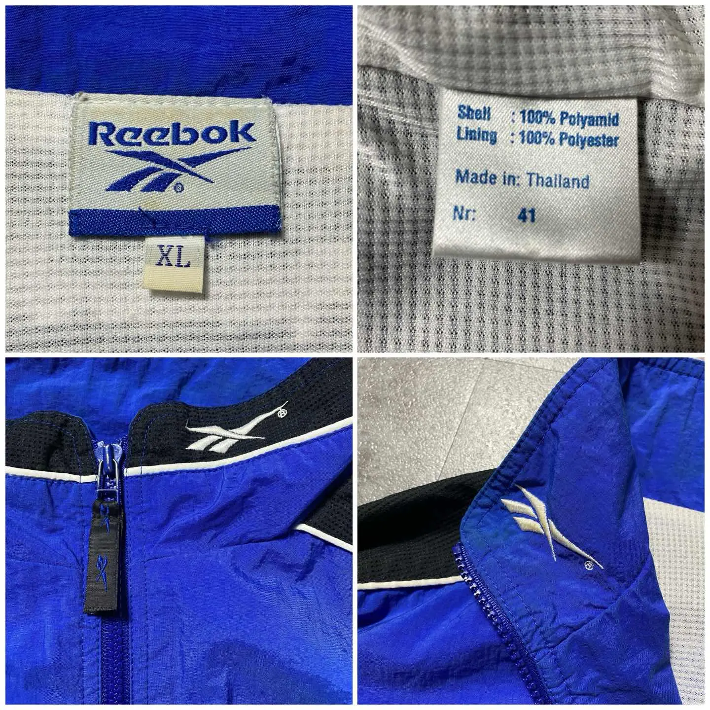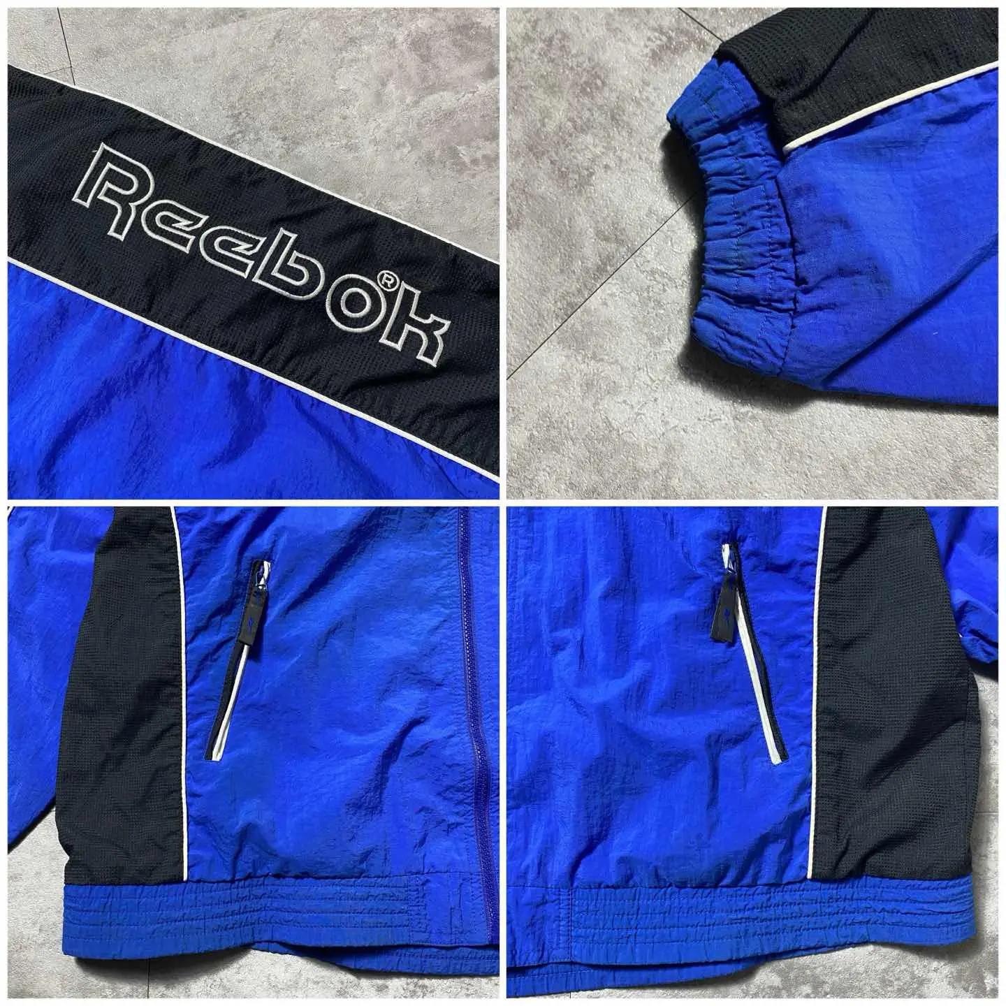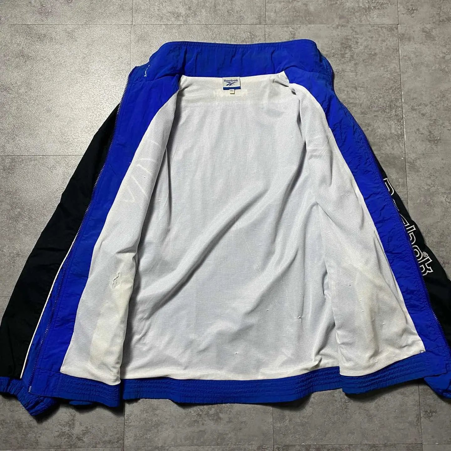 90s リーボック 刺繍両面ロゴ フード格納 ブラック ナイロンジャケット