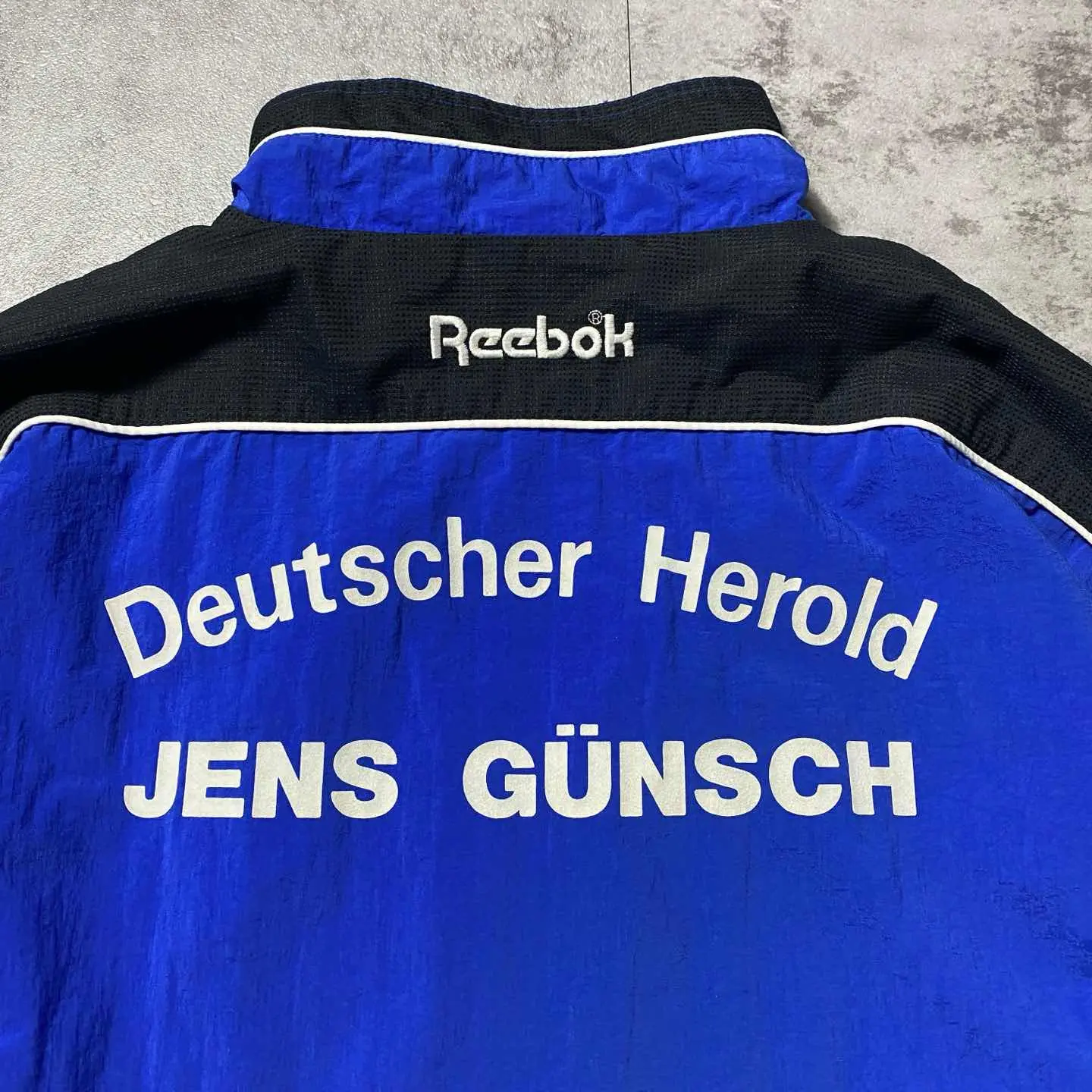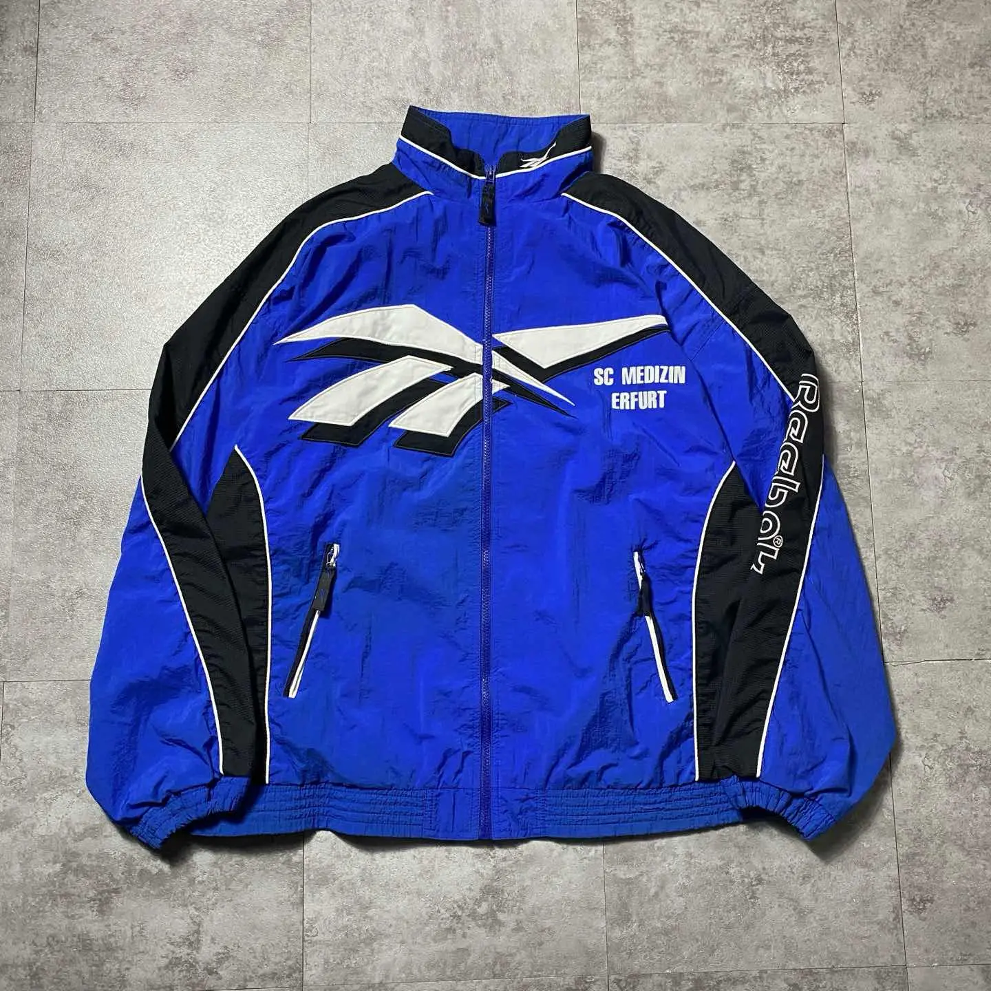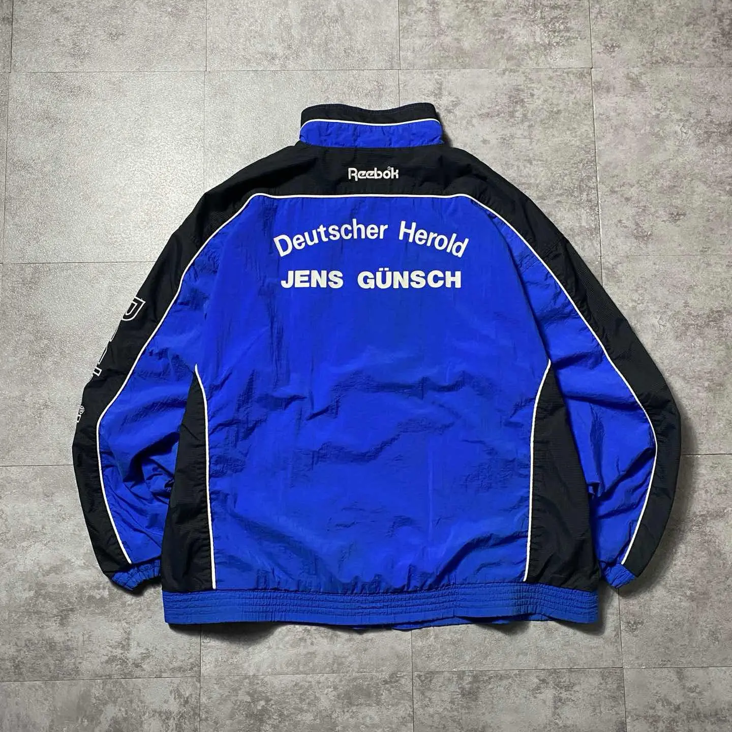 90s リーボック 刺繍両面ロゴ フード格納 ブラック ナイロンジャケット