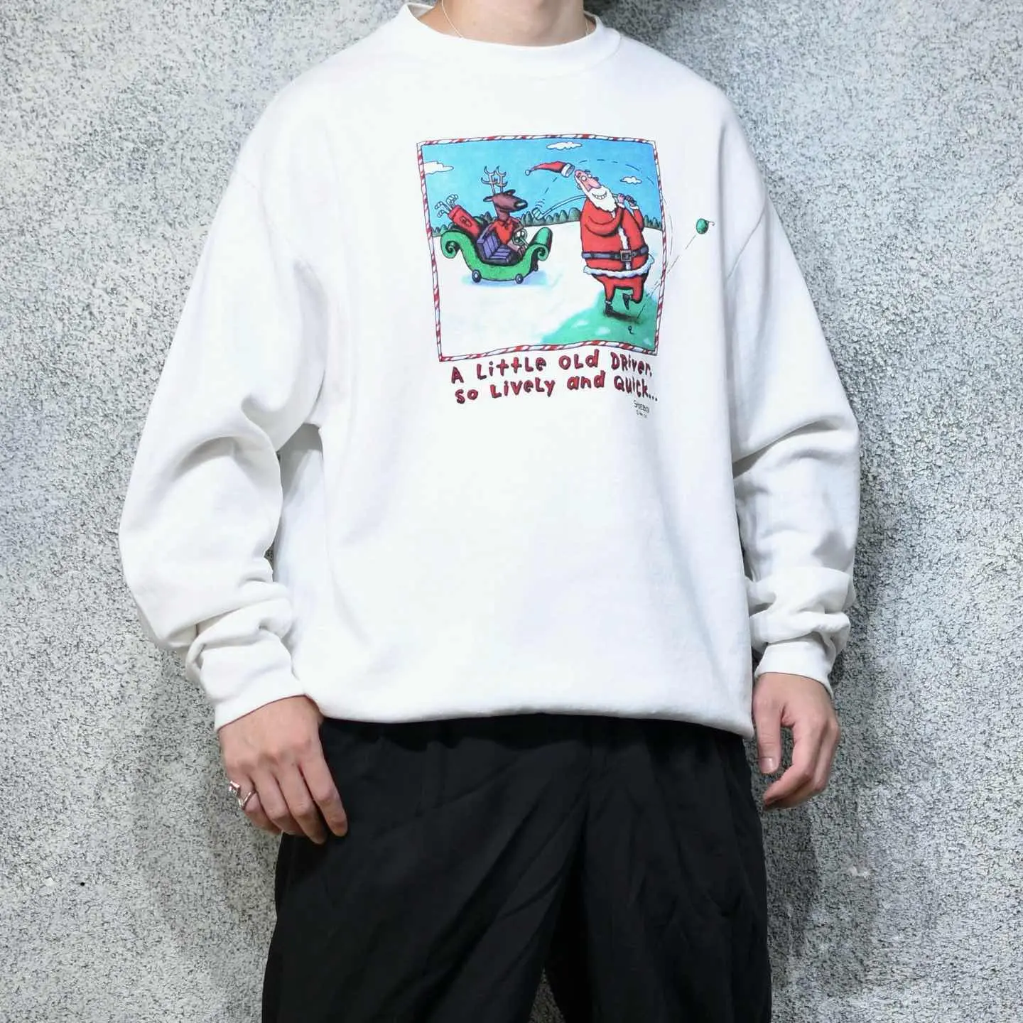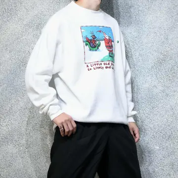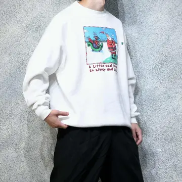 着丈74cm 肩幅63cm 身幅65cm 袖丈69cm fabric/cotton・poly made in USA 着用画像 177cm/64kg 有名なクリスマスの歌、"クリスマスの前の夜"の 1節をそのままユーモアを加えてプリントにした 1枚。 古着らしいこんな1枚に、惹かれない理由は ないですし、クリスマスが来る前でも過ぎた後でも 愛用したいなと。 デッドなだけあって、裏起毛はふっかふか。 首元のヨレなどもなく、幅広い層におすすめしたい スウェットです。 ※撮影状況により、実物と多少色が異なる場合が ございます。 ※古着を取り扱っているため、気づかない汚れや ほつれ等がある場合がございます。 予めご了承ください。 ※サイズは着用感で選んでおり、表記サイズではございません。 古着 オーバーサイズ old vintage ヴィンテージ used 80's 90's アメリカ古着 ユーロ古着 メンズ レディース POLO RALPH LAUREN Eddie Bauer OLD GAP Eddie Bauer LANDS' END ランズエンド LLBean エルエルビーン オールドギャップ エディーバウアー ラルフローレン ブルックスブラザーズ Brooks Brothers 白 ホワイト ユーモア ジョーク などがお好きな方 #vintage #オーバーサイズ #old #used #90s #80s #古着 #ヴィンテージ #アメリカ古着 #ユーロ古着 #古着男子 #古着女子 #LLBean #エルエルビーン #EddieBauer #エディーバウアー #oldgap #オールドギャップ #LANDSEND #ランズエンド #NAUTICA #ノーティカ #ラルフローレン #POLORALPHLAUREN #ブルックスブラザーズ #BrooksBrothers #プリントスウェット #スウェット #トレーナー #デッドストック