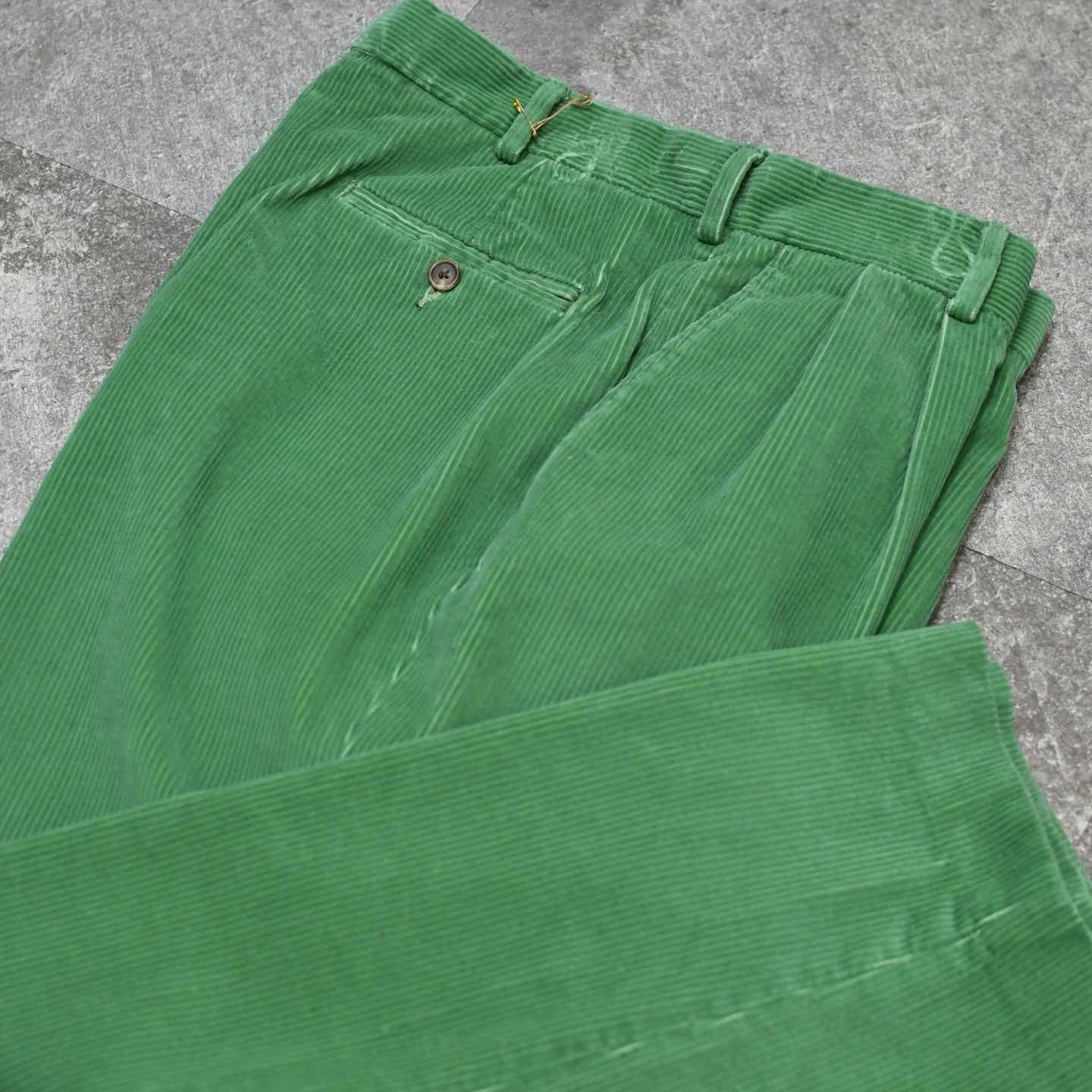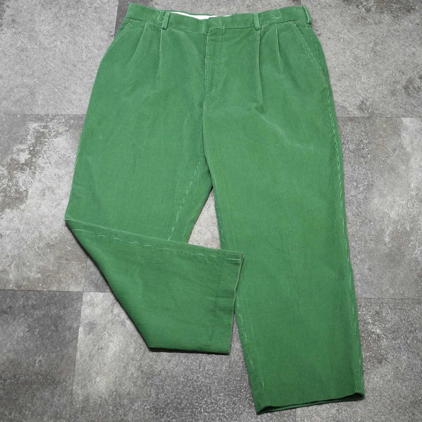 古着 コーデュロイパンツ タックパンツ ワイドパンツ スラックス グリーン