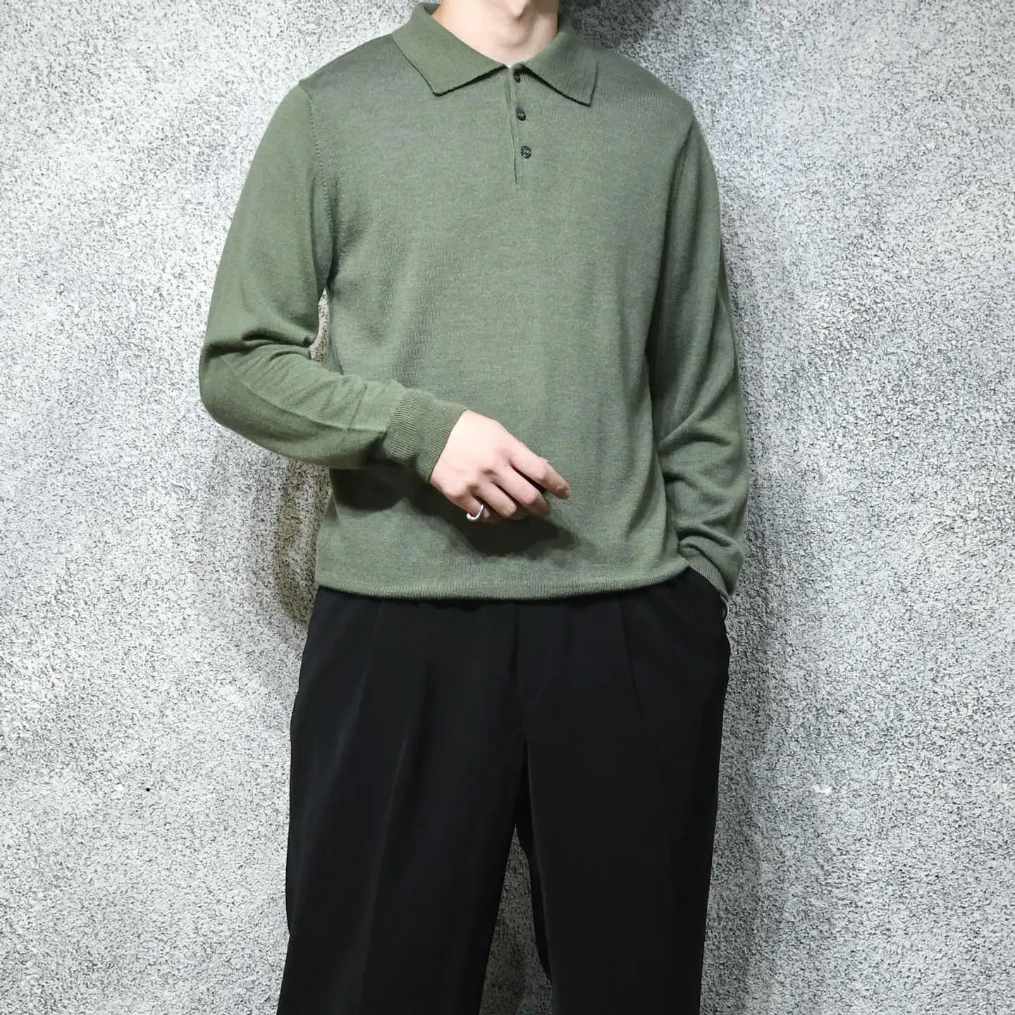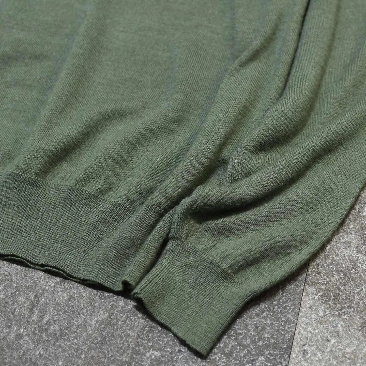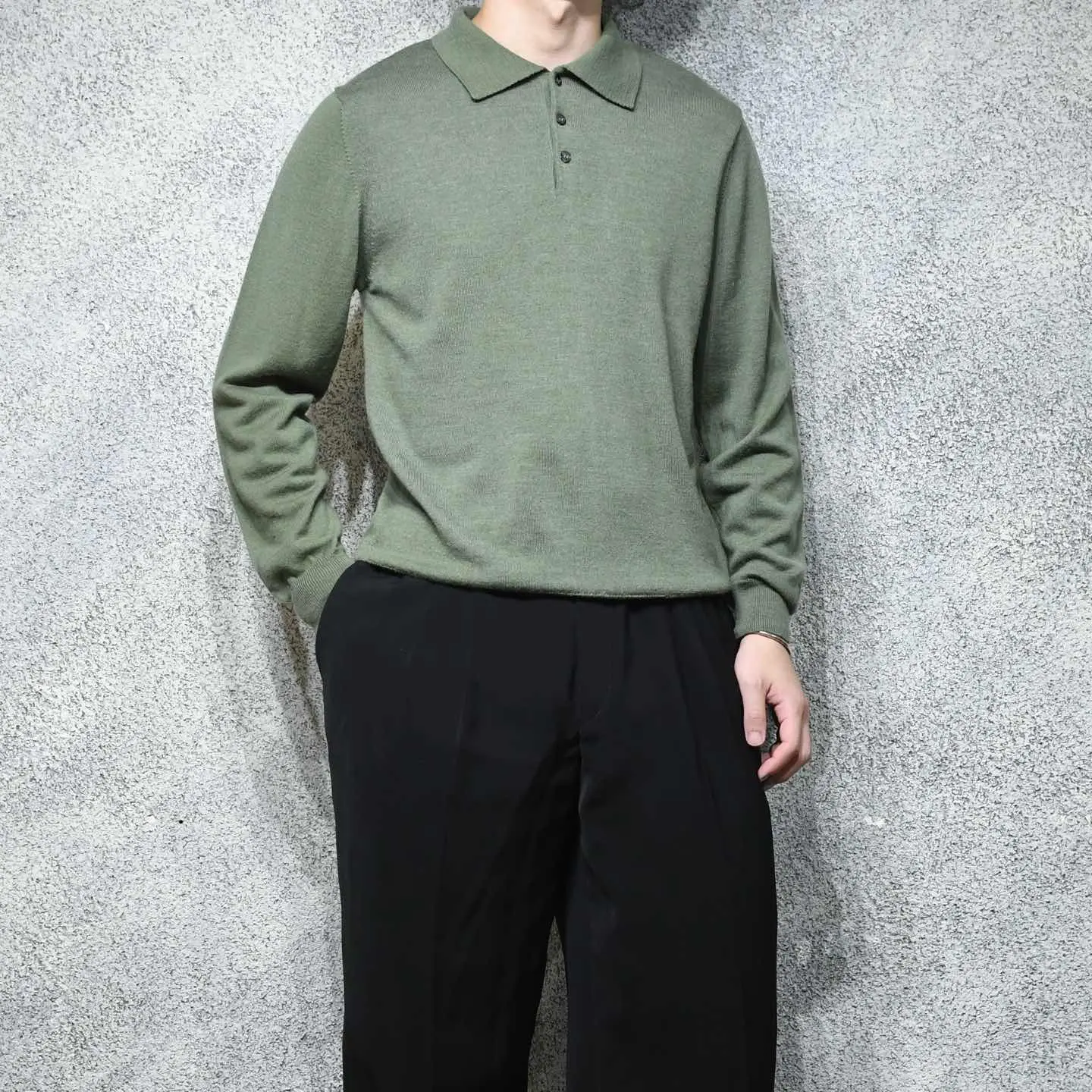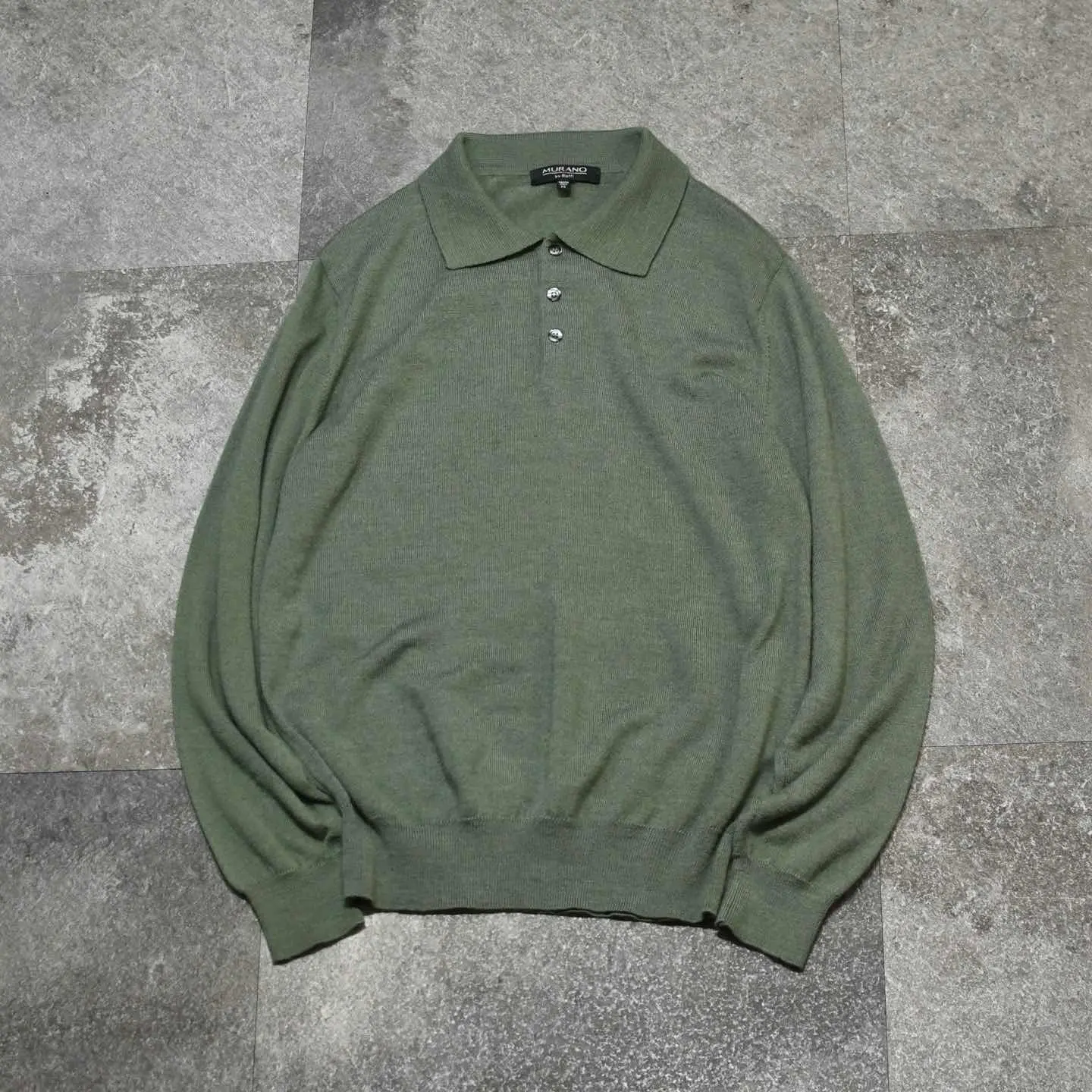 SIZE:M 着丈70cm 肩幅44cm 身幅52cm 袖丈65cm fabric/wool・acrylic made in Italy 着用画像 177cm/64kg 1980年代、NYで創業したニットウェアブランド "Raffi"の高品質ライン”MURANO"が手掛けた イタリア製ニットポロ。 ラグジュアリーラインとして 位置付けされているようで、このアイテムも シンプルながら品のある佇まいを感じさせる 逸品です。 一枚手元に置くと各色集めたくなるニットポロ、 シンプルに一枚で上品に、生地感を合わせて カーディガンやニットベストのインナーとして。 今までよりも大人びたスタイリングを組める 優秀なアイテムとしておすすめです。 ※撮影状況により、実物と多少色が異なる場合が ございます。 ※古着を取り扱っているため、気づかない汚れや ほつれ等がある場合がございます。 予めご了承ください。 ※サイズは着用感で選んでおり、 表記サイズではございません。 表記サイズは説明欄の最初に記載しております。 古着 オーバーサイズ old vintage ヴィンテージ used 80's 90's アメリカ古着 ユーロ古着 POLO RALPH LAUREN Eddie Bauer OLD GAP LANDS' END ランズエンド LLBean エルエルビーン オールドギャップ エディーバウアー ラルフローレン ブルックスブラザーズ Brooks Brothers 緑 カーキ グリーン アクリルニット ウールニット などがお好きな方 #vintage #オーバーサイズ #old #used #90s #80s #古着 #ヴィンテージ #アメリカ古着 #ユーロ古着 #LLBean #エルエルビーン #EddieBauer #エディーバウアー #oldgap #オールドギャップ #LANDSEND #ランズエンド #NAUTICA #ノーティカ #ラルフローレン #POLORALPHLAUREN #ブルックスブラザーズ #BrooksBrothers #ニットポロ #ハイゲージニット #ニット #セーター #アクリルニット #ウールニット