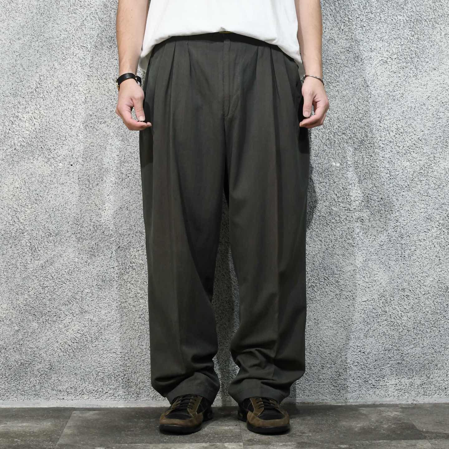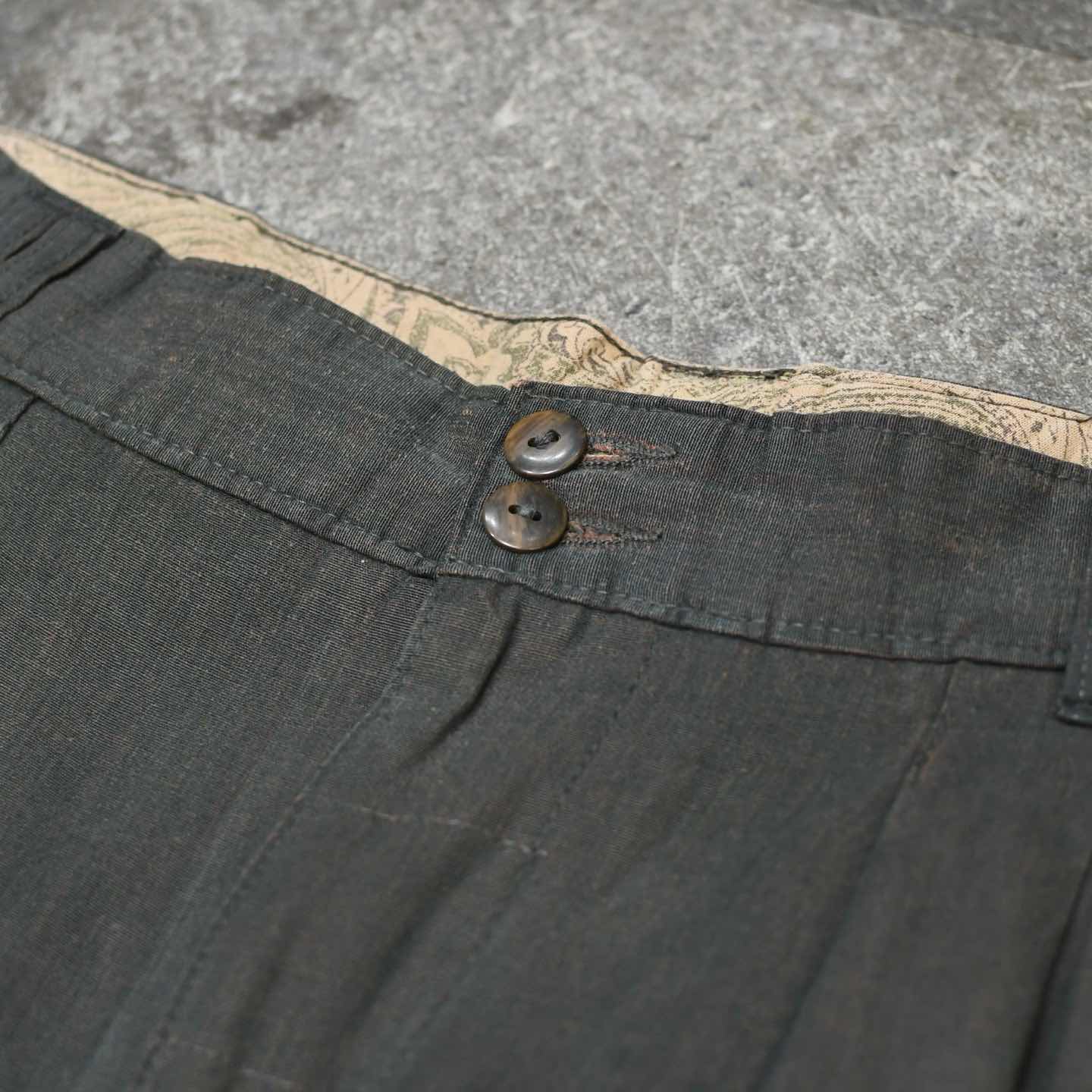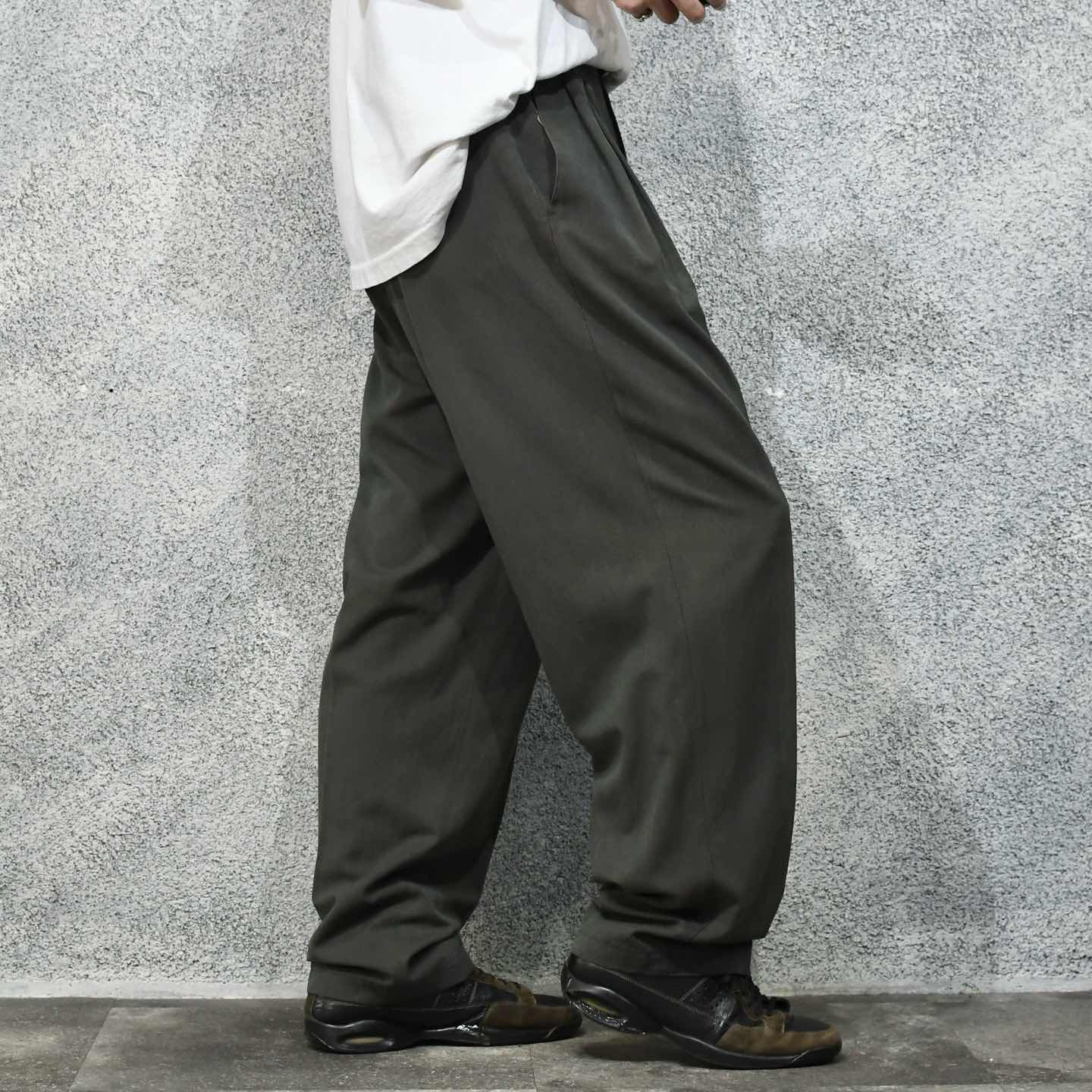 古着 玉虫色 カーキ レーヨン スラックス ドレープシルエット ワイドパンツ タックパンツ