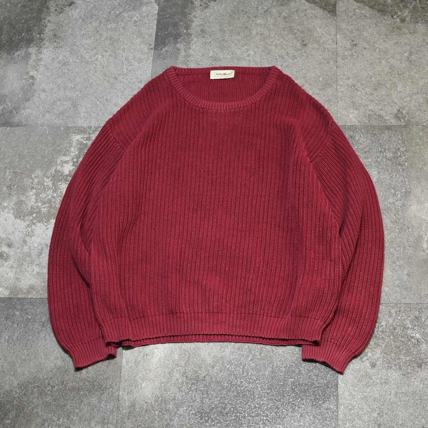 古着 Eddie Bauer ローゲージ 畦編み コットンニット ニット セーター 落ち感◎