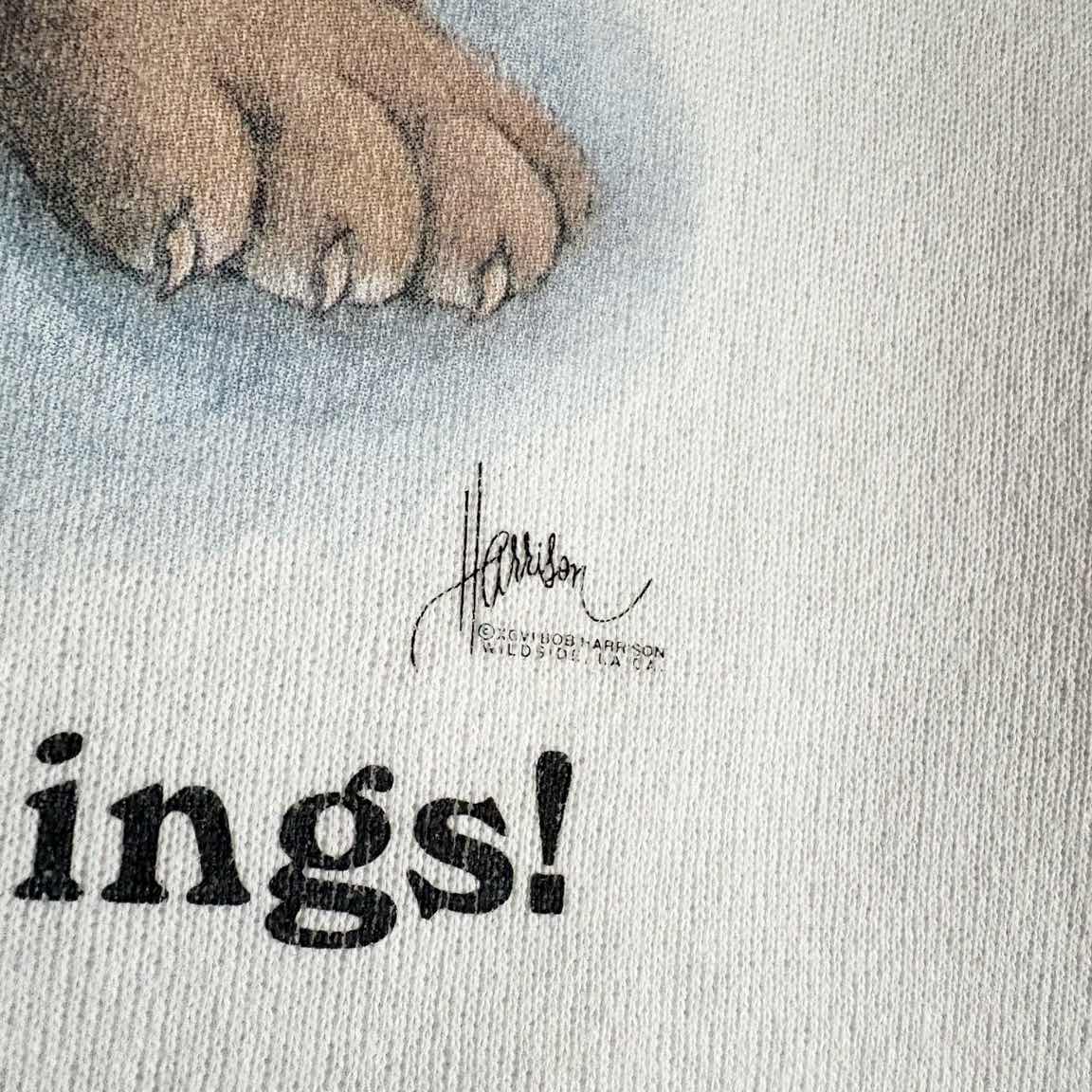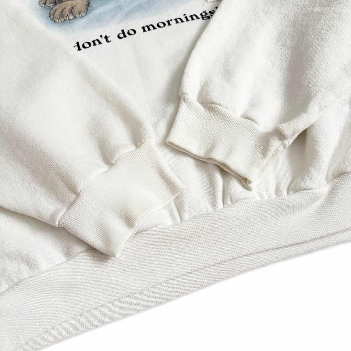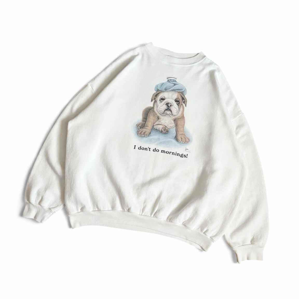 ○商品説明 90s BOB HARRISON 可愛すぎる一枚。 ブルドッグの頭の上に氷のうが乗っています笑 朝に叩き起こされて目を覚ますために 氷のうを乗せているのでしょうかね I don't do mornings! 私は朝が苦手! 気になった方は是非。 ※袖部分が少し破れがあります 無料でリペアさせていただきますので ご希望の方はご連絡下さい。 ○サイズ 表記XL相当 平置き ・肩幅71cm ・身幅71cm ・袖丈55cm ・着丈68cm ○商品の状態 B A:使用感がほとんどなく、汚れやシミもなし B:多少使用感はあるが、汚れやシミも少ない C:使用感があり、汚れやシミがある D:使用感があり、大きな汚れや破れあり ○色 ホワイト #90s#BOBHARRISON#ボブハリソン#アニマル#スウェット