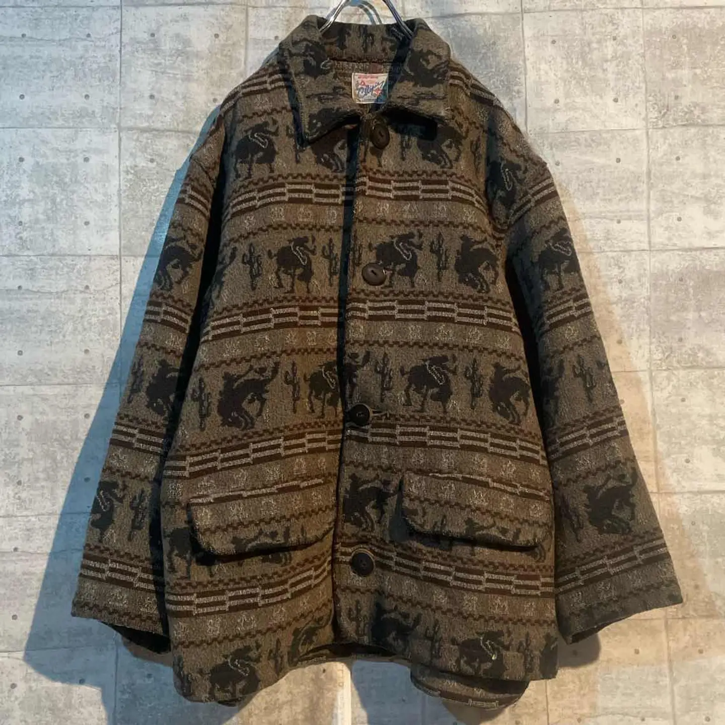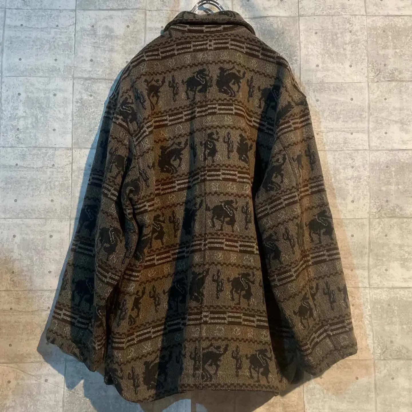 ネイティブアメリカン柄が織り込まれたウールジャケット。 落ち着いたブラウンベースにウエスタンモチーフが映え、 クラシックかつ温もりのある雰囲気を醸し出します。 シャツやデニムとの相性も良く、冬の主役アウターとしておすすめ。 #vintage #wooljacket #westernstyle #nativepattern #古着コーデ #90sfashion #アメカジ #ウールジャケット #古着男子 #古着女子
