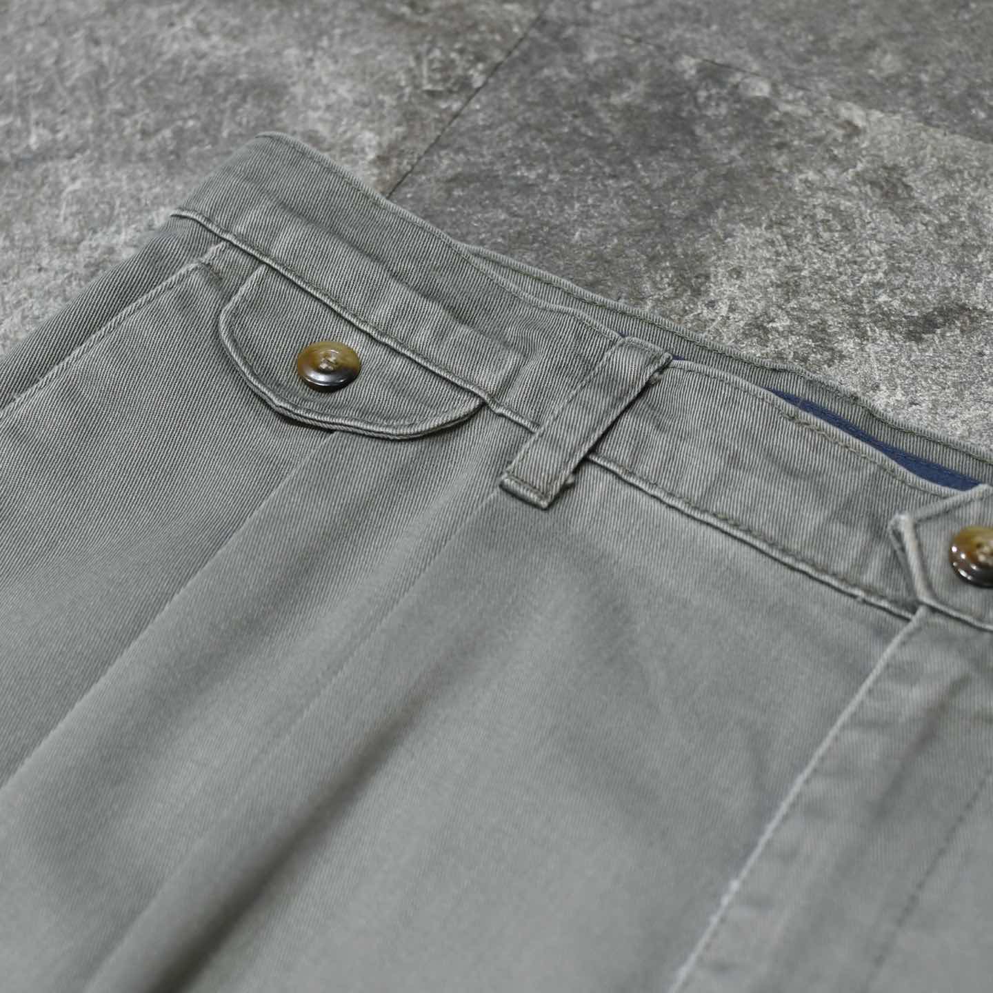 SIZE:36×30 ウエスト90cm 総丈103cm 股下74.5cm わたり40.5cm 裾幅22.5cm fabric/cotton 着用画像 177cm/64kg 1986年、LEVI'Sが立ち上げたチノパンの レーベル”DOCKERS” ビジネスカジュアルをコンセプトにしたブランドで、 数ある当ブランドのチノパンの中でも 一際惹かれた一本。 カーキとグレーを混ぜたような熟れた色合いに 2タック、裾まで程良く太さを残した 使い勝手の良い個体です。 また柔らかくなった生地で、裾はダブル仕立て、 野暮ったくなり過ぎずにコーデへ 落とし込めるのではないでしょうか。 デェテールにもさりげなくコンセプトが反映された チノパン、ベージュの次に手元に置く個体として、 ベージュよりも履きやすさを感じるチノパンとして、 1本目としても2本目としてもおすすめです。 ※裾上げ等のレングス直しにつきましては、 裾上げ方法によっては、別途料金が 発生する場合がございます。 購入前に、必ずご連絡お願い致します。 また、購入後の直しには対応出来かねます。 ※撮影状況により、実物と多少色が異なる 場合がございます。 ※古着を取り扱っているため、気づかない汚れや ほつれがある場合がございます。 予めご了承ください。 ※サイズは着用感で選んでおり、 表記サイズではございません。 表記サイズは説明欄の最初に記載しております。 古着 オーバーサイズ old vintage ヴィンテージ used 80's 90's アメリカ古着 ユーロ古着 POLO RALPH LAUREN Eddie Bauer OLD GAP LANDS' END ランズエンド LLBean エルエルビーン オールドギャップ エディーバウアー ラルフローレン ブルックスブラザーズ Brooks Brothers 緑 グレー 灰色 ワークパンツ などがお好きな方 #vintage #オーバーサイズ #old #used #90s #80s #古着 #ヴィンテージ #アメリカ古着 #ユーロ古着 #LLBean #エルエルビーン #EddieBauer #エディーバウアー #oldgap #オールドギャップ #LANDSEND #ランズエンド #NAUTICA #ノーティカ #ラルフローレン #POLORALPHLAUREN #ブルックスブラザーズ #BrooksBrothers #チノパン #ワイドパンツ #Dockers #タックパンツ #ワークパンツ