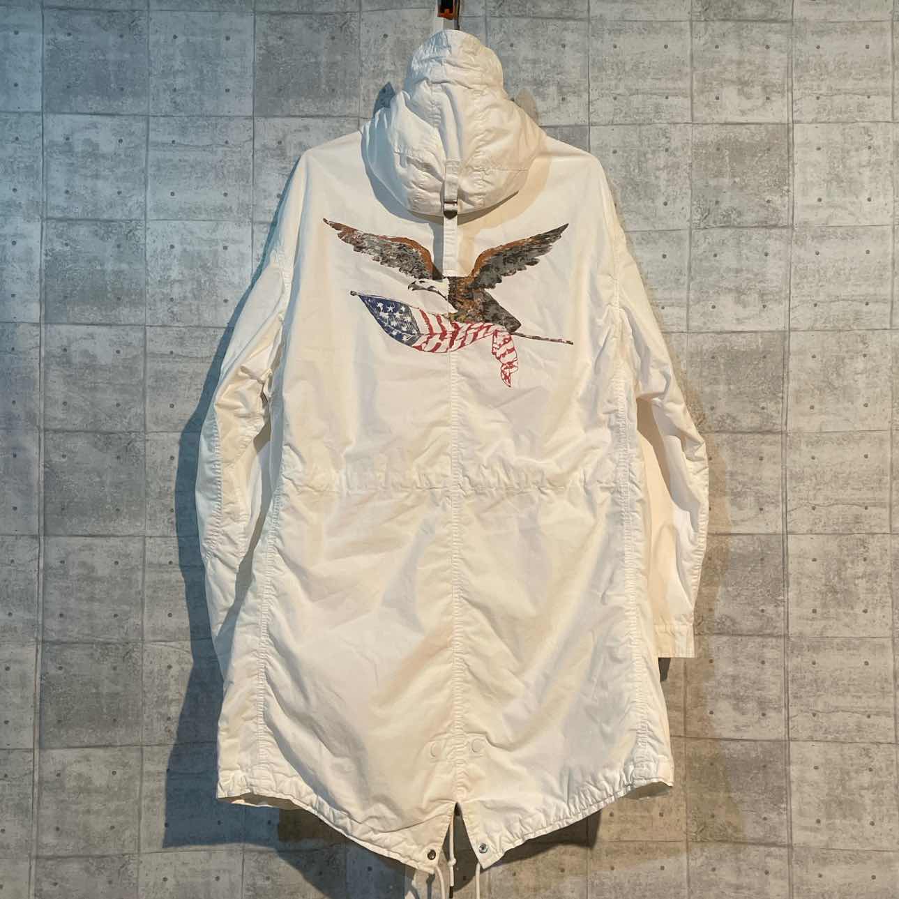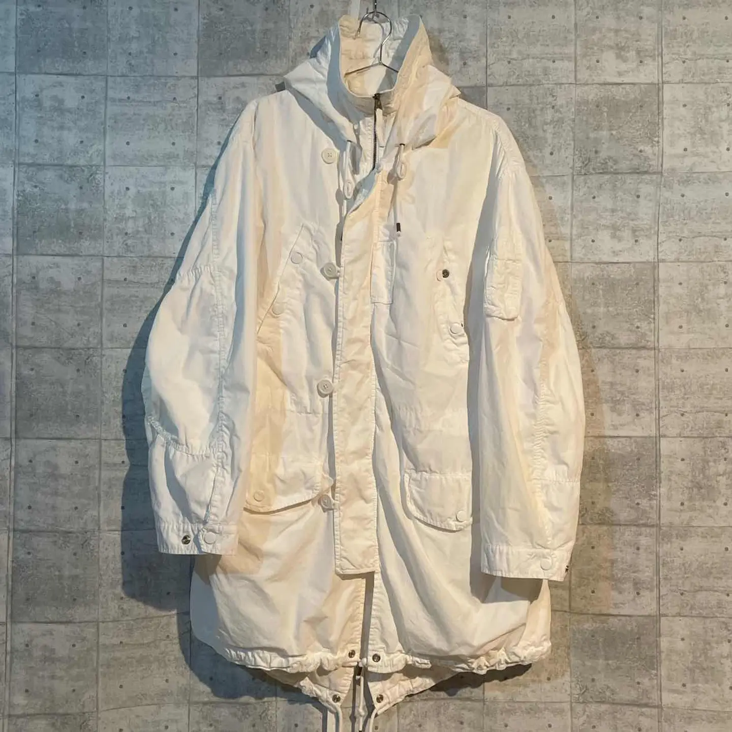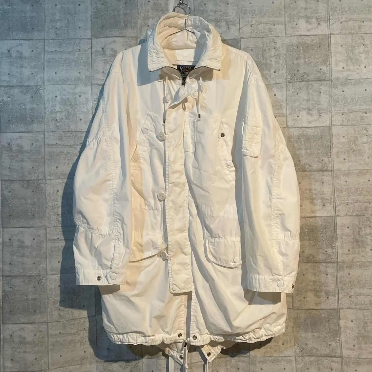 AMERICAN LIVING(アメリカンリビング)のホワイトフィールドジャケット。 軽量ながらハリのあるナイロン素材で、ミリタリーディテールが印象的な一枚。 胸や袖のポケットが機能的で、ドローコード付きの裾でシルエット調整も可能。 春や秋のライトアウターとして活躍するアイテムです。 ハッシュタグ #americanliving #militaryjacket #vintage #fieldjacket #ホワイトジャケット #古着男子 #古着女子 #春アウター #アメカジ