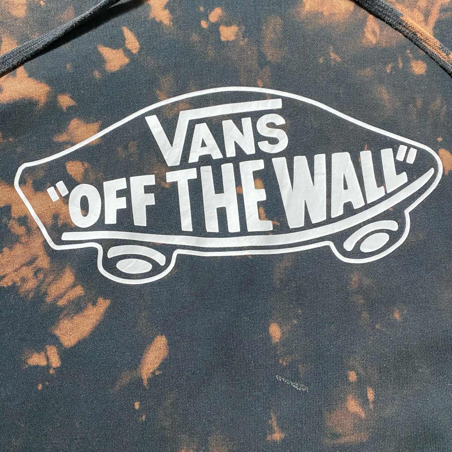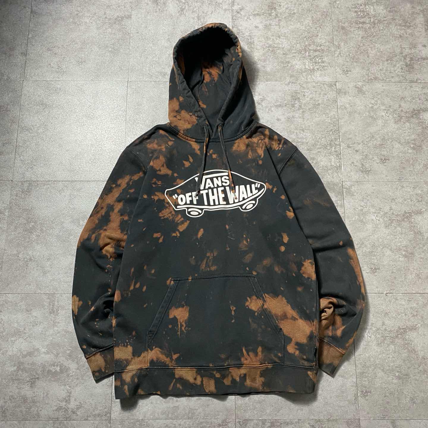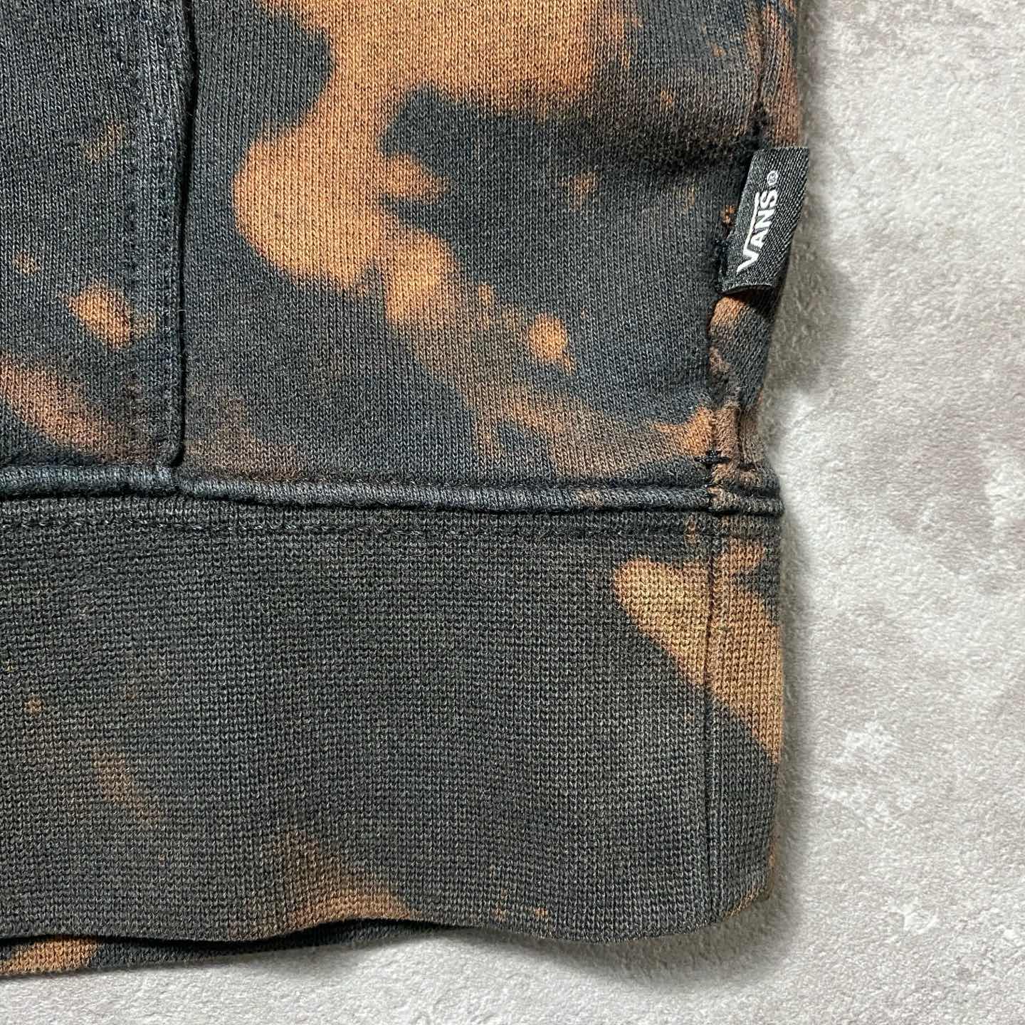 VANS バンズ カーロゴ プリント ブリーチ加工 ブラック スウェット パーカー