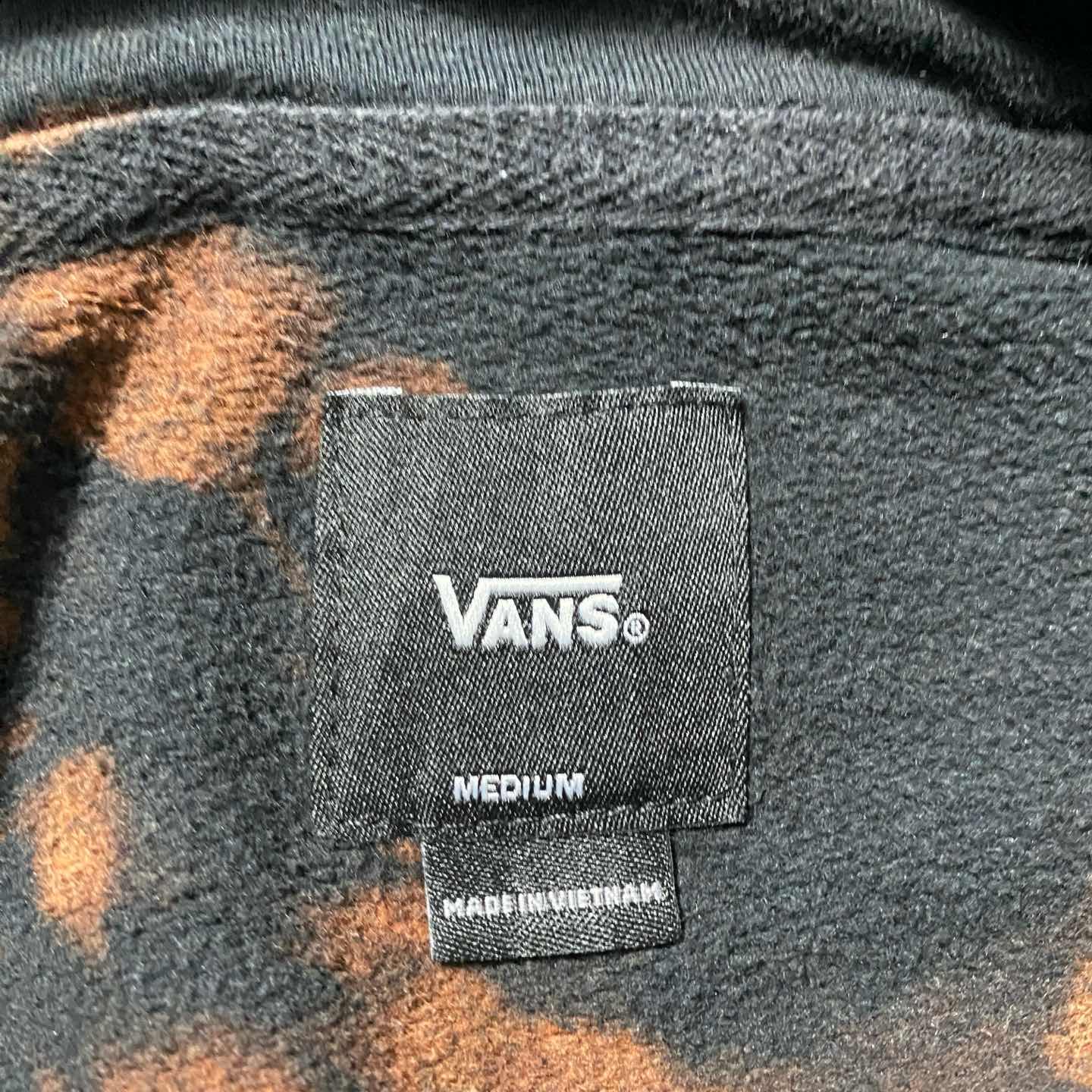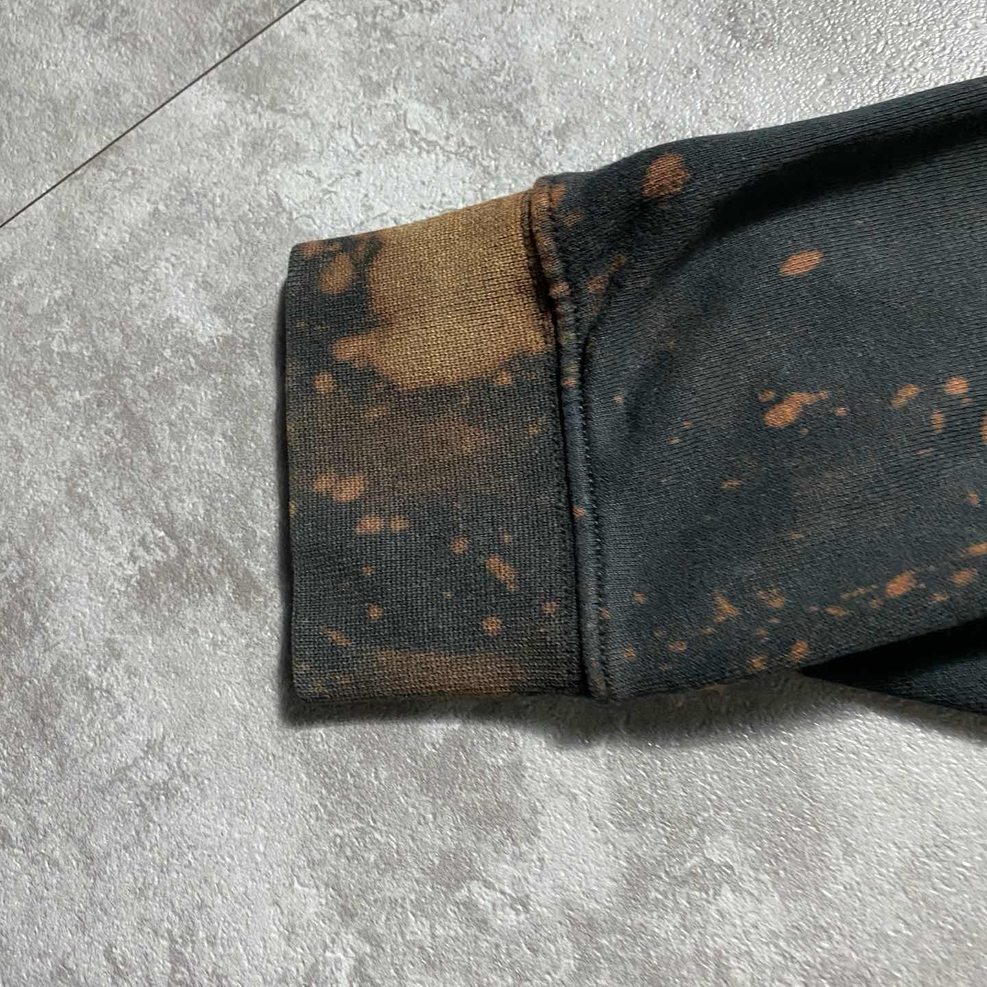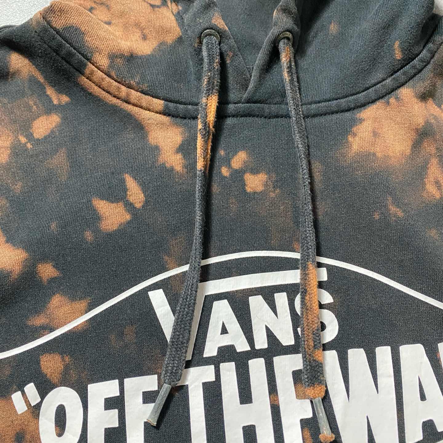 VANS バンズ カーロゴ プリント ブリーチ加工 ブラック スウェット パーカー