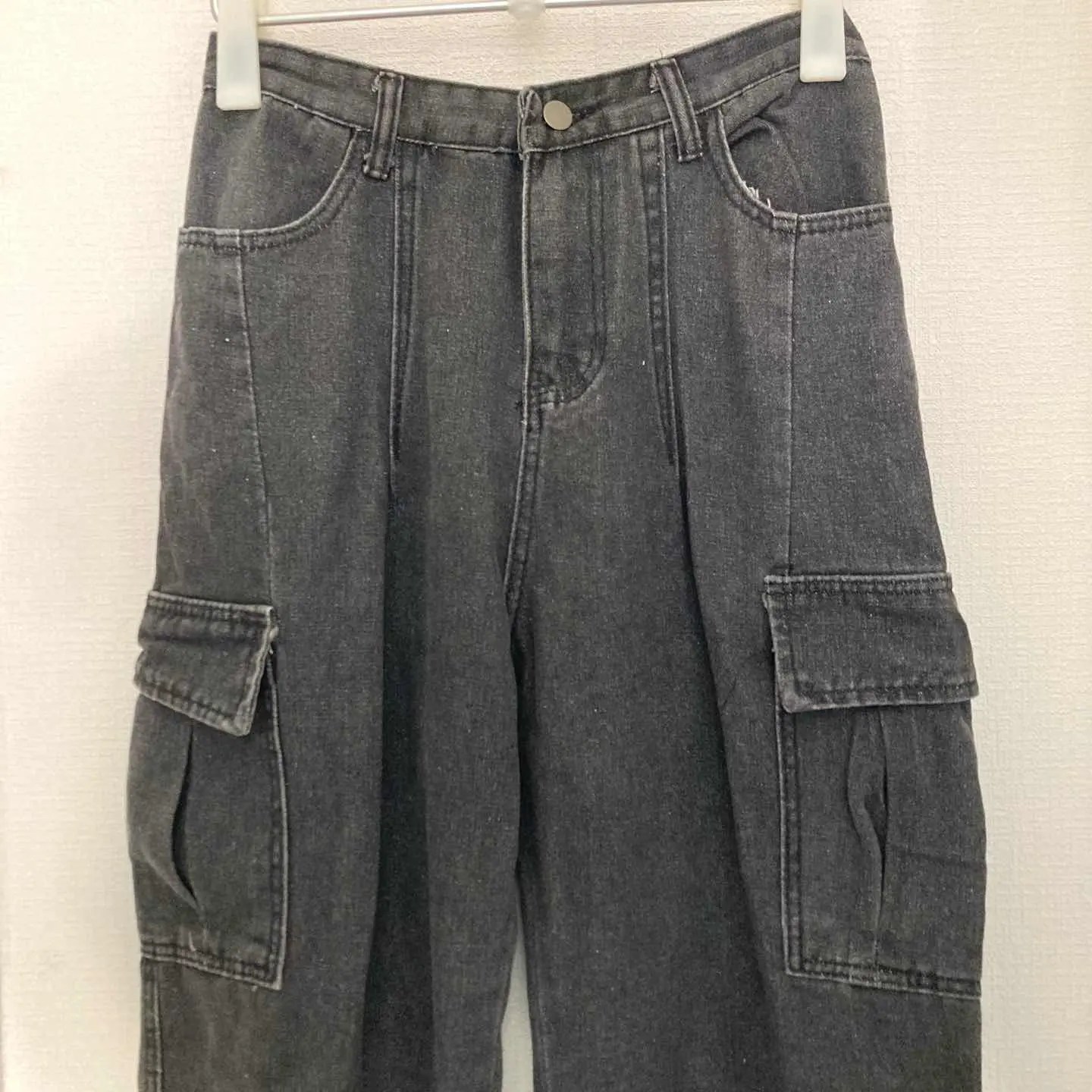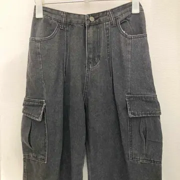 アルール ゆるダボ カーゴ ブラックデニムパンツ フェード感 綿 ズボン 黒 L